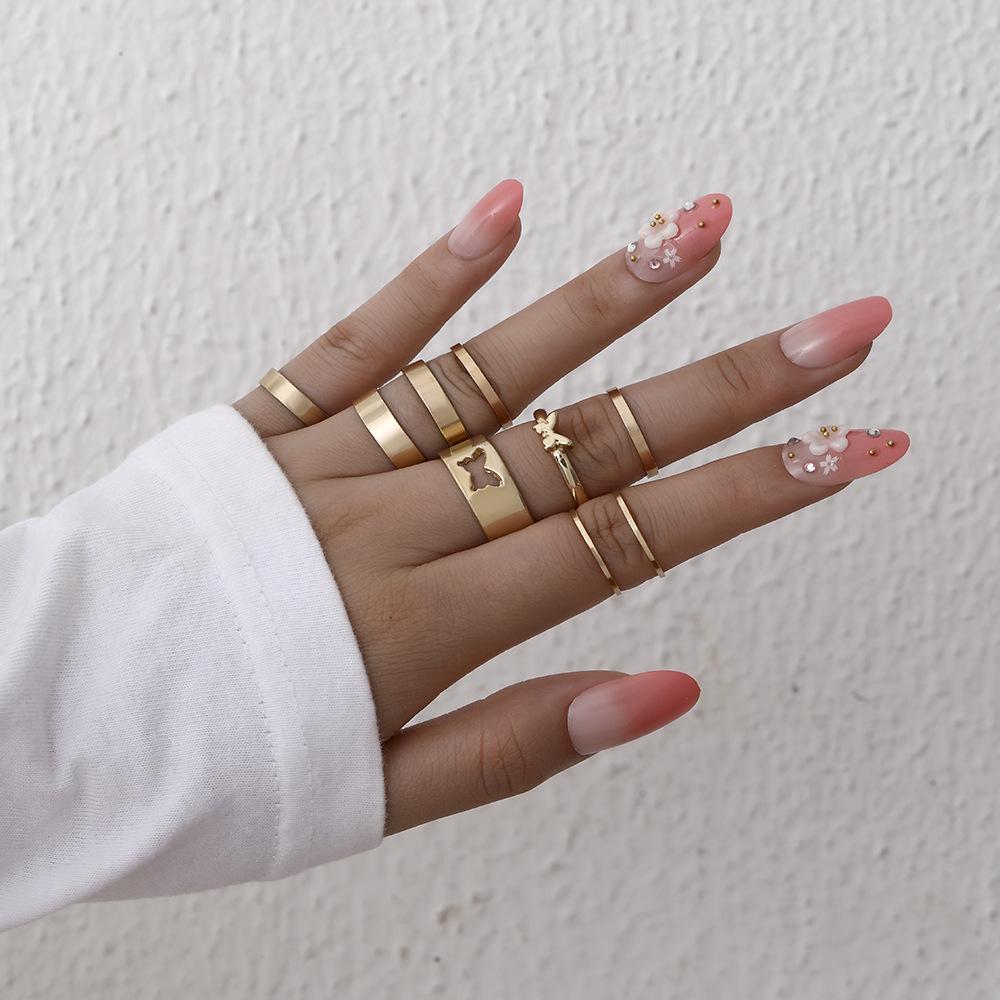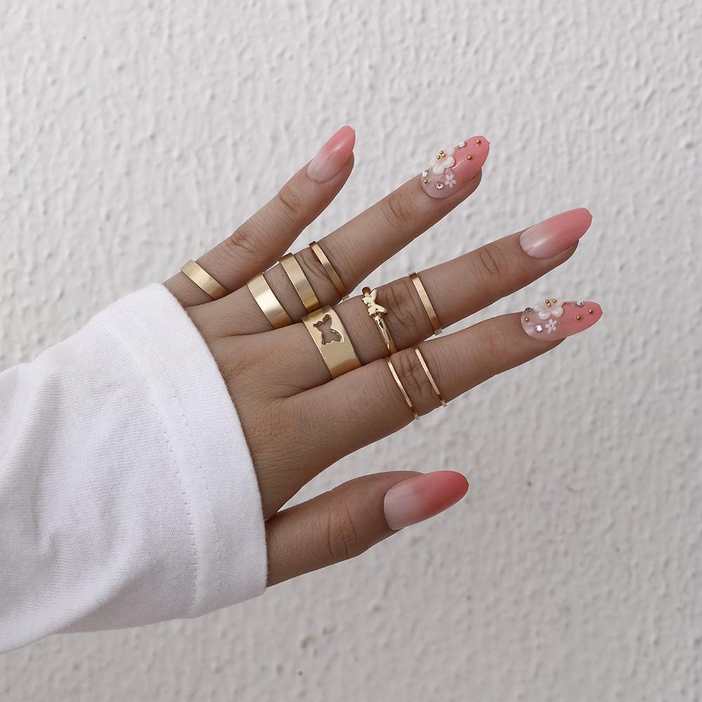 Europa y Estados Unidos transfronterizo nuevo creativo retro simple juego de anillos de mariposa moda temperamento articulación anillo de mujer juego de varias piezas