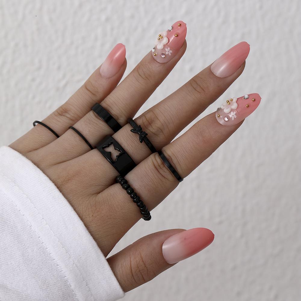 Anillo de conjunto de mariposas simple retro creativo nuevo transfronterizo europeo y americano, temperamento de moda, anillo de articulación para mujer, conjunto de varias piezas