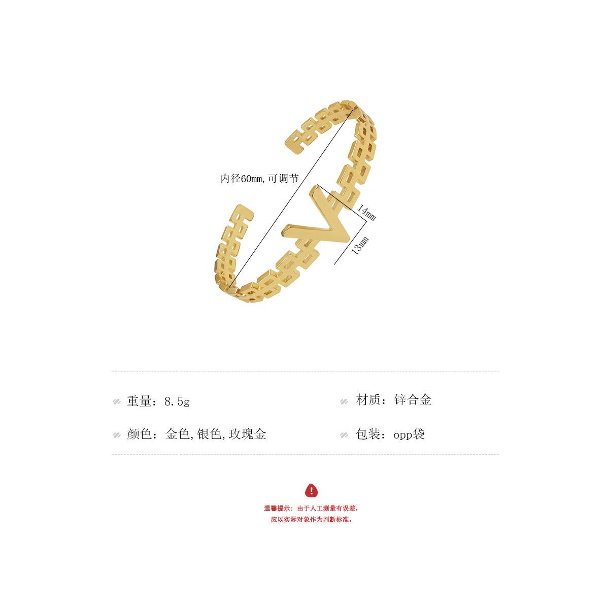 Pulsera sencilla hueca de moda nueva en forma de V metal liso joyería de mano apertura pulsera ajustable