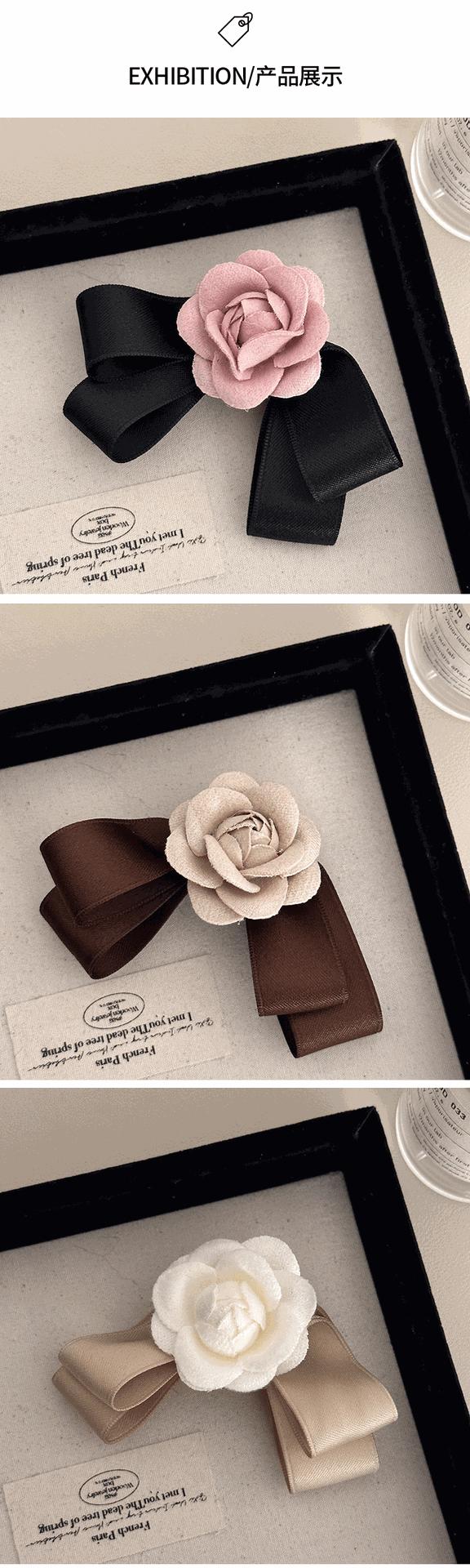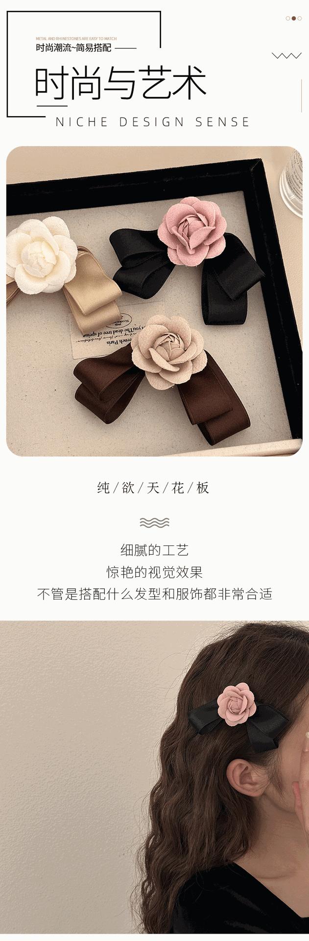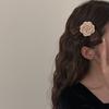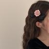 Horquilla con lazo de rosa camelia dulce y suave para otoño e invierno de 2023, accesorios para el cabello con temperamento rosa y negro, accesorios para la cabeza con horquilla