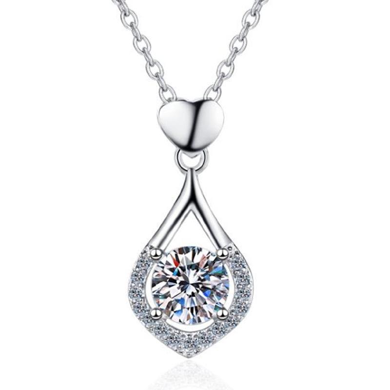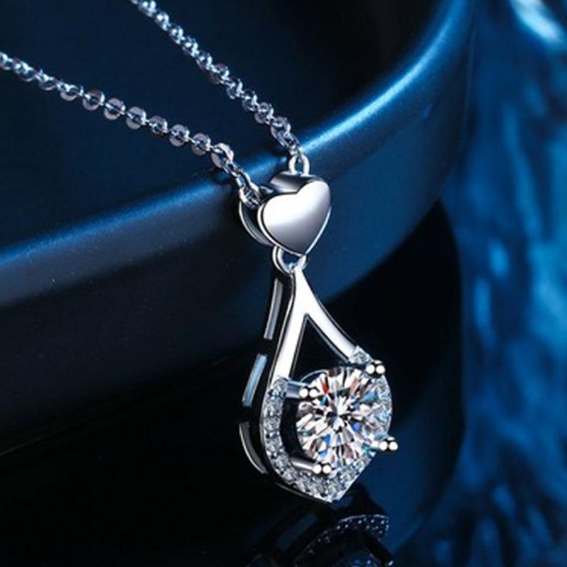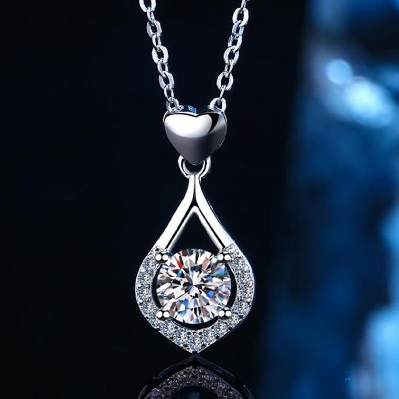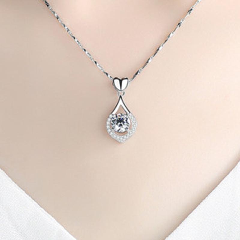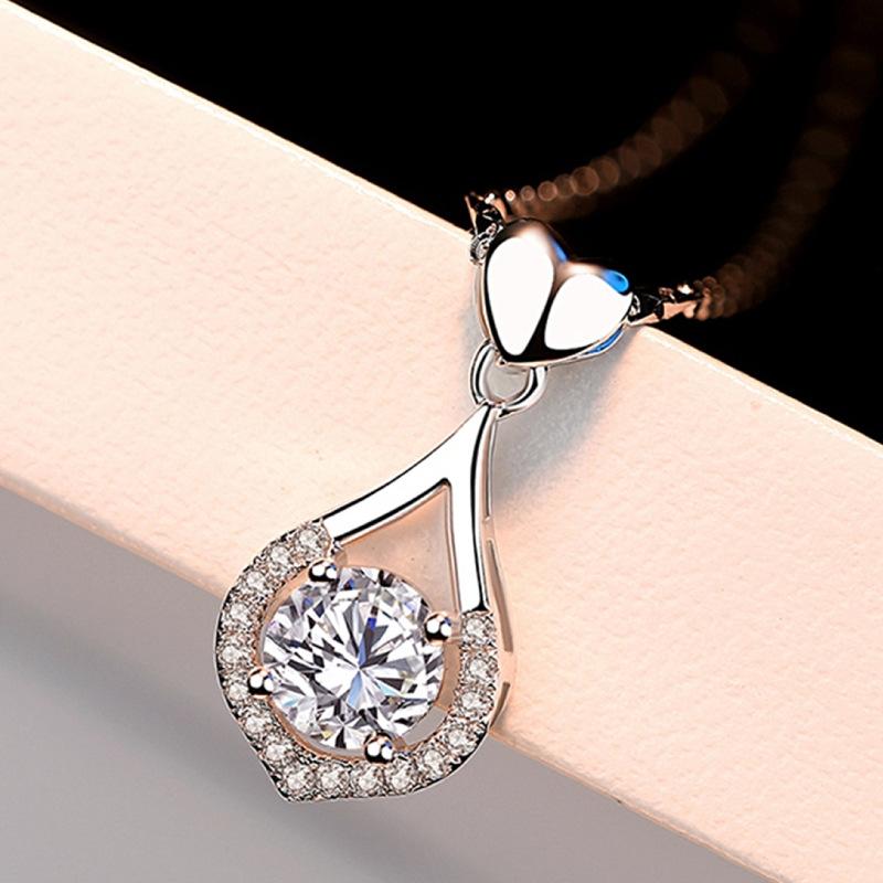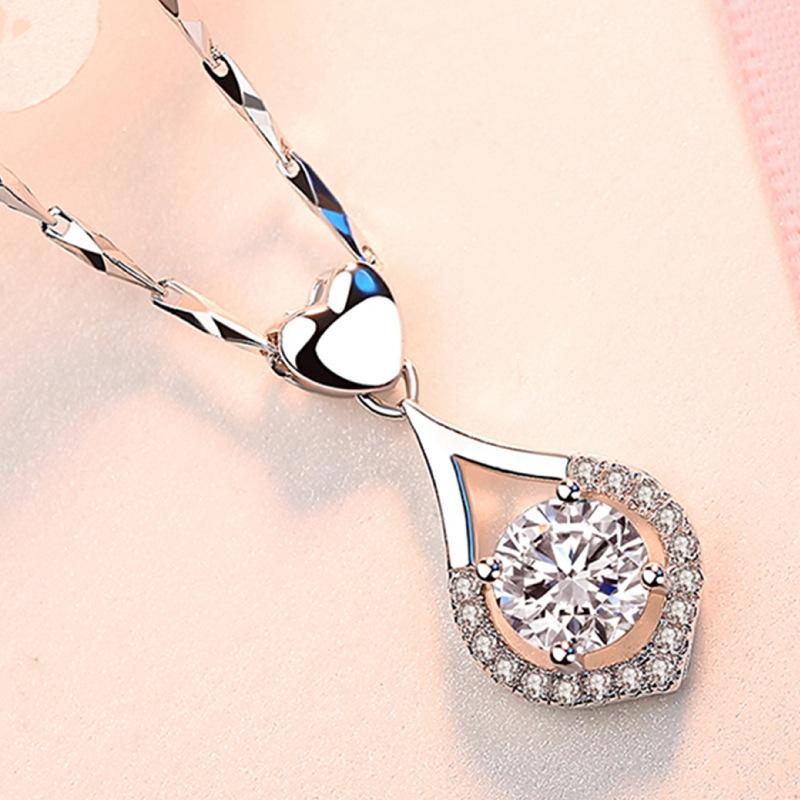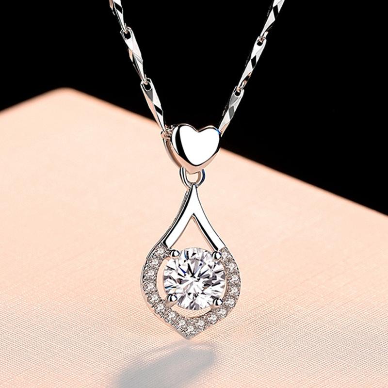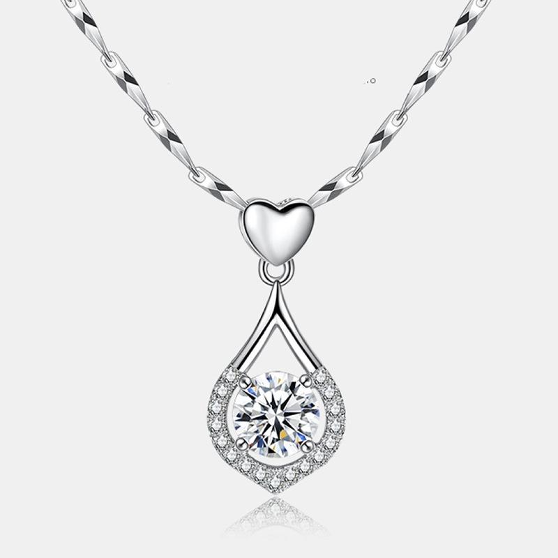 Collar con colgante de gota de amor de plata de moda con circonita suave similar al agua, colgante de corazón de amor navideño de lujo de alta calidad
