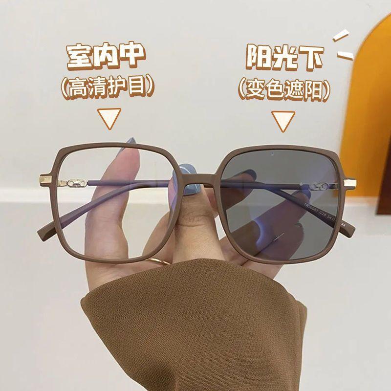 Lentes que cambian de color para mujer ins miopía de alto aspecto con grados luz azul retro montura grande adelgazante celebridad de Internet lentes lisos para mujer-