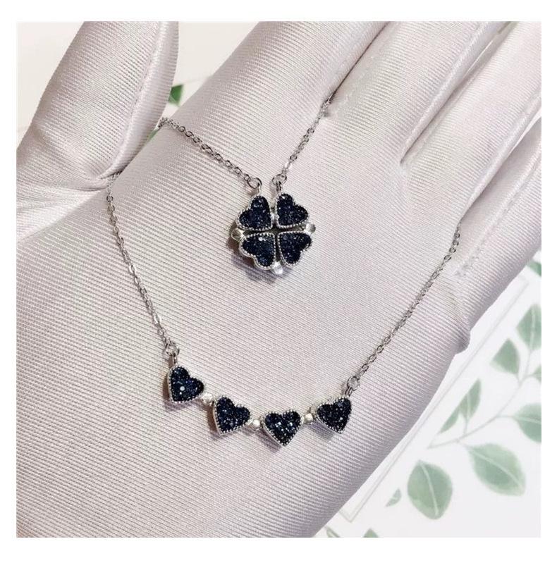 | |  | Collar de trébol de cuatro hojas de la suerte en plata esterlina s925 para mujer, versátil, nicho, popular, multiusos, cadena de clavícula con corazón pequeño. | | |