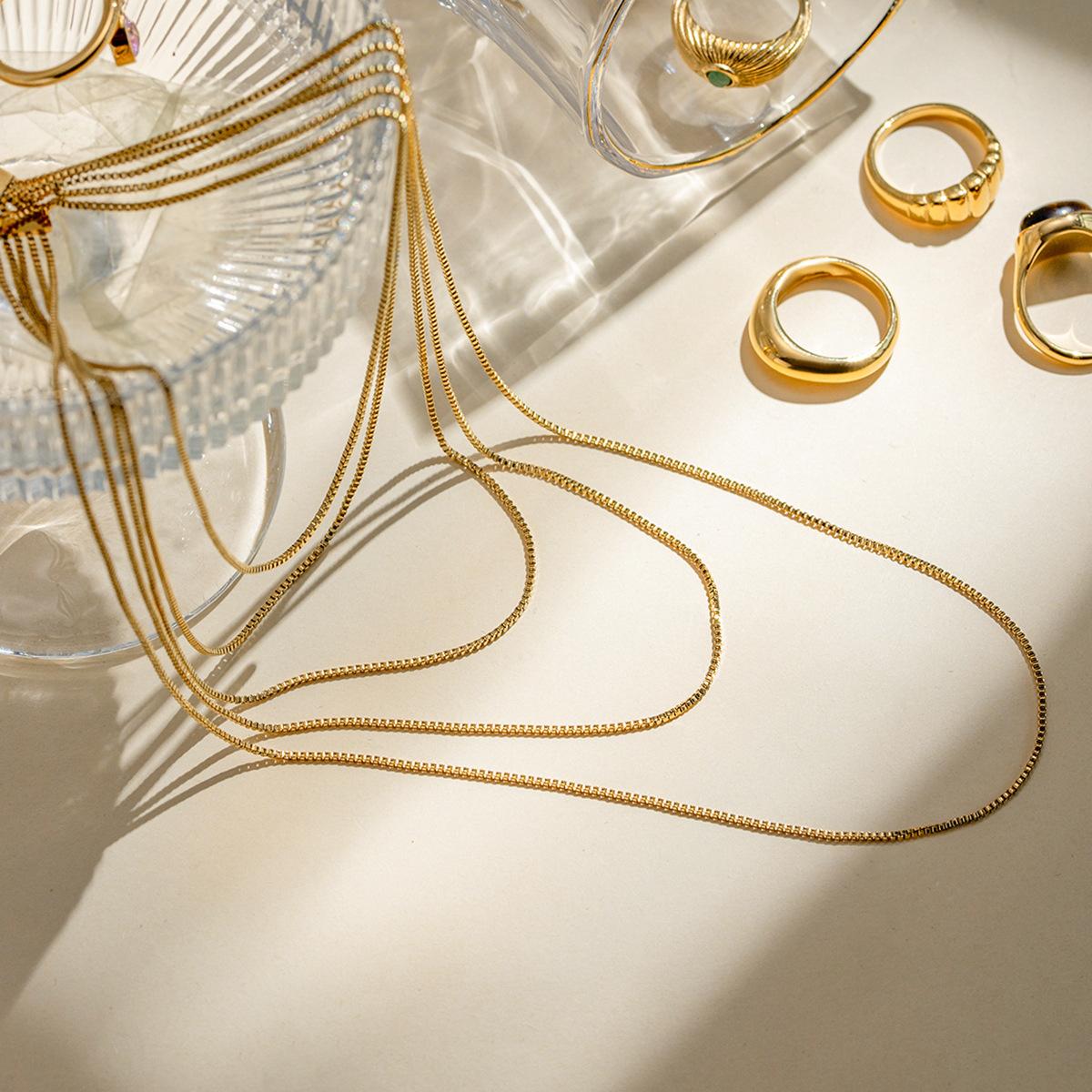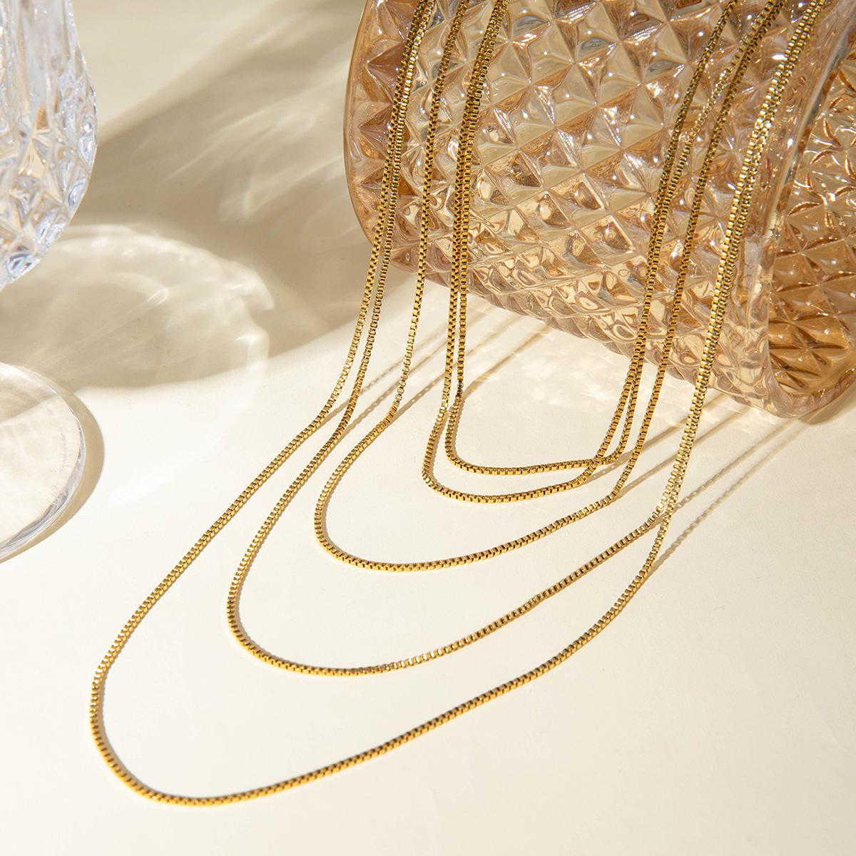 Collar de cadena de caja multicapa de acero inoxidable chapado en oro de 18k para mujer, sencillo y generoso, estilo retro ins europeo y americano, joyería al por mayor
