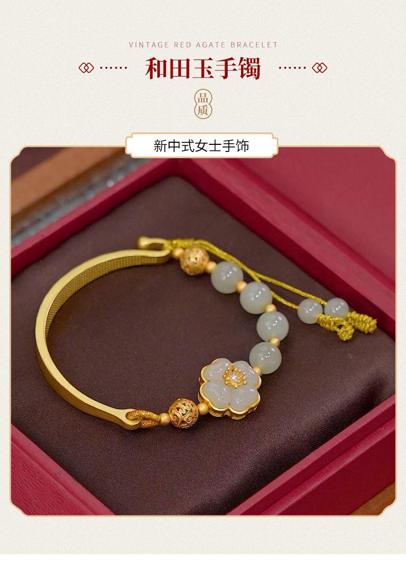 El diseñador recomienda [Blossoms Ten Li] Pulsera de cuentas de transferencia de jade hetiano Pulsera retro Pulsera de media pulsera antigua dulce