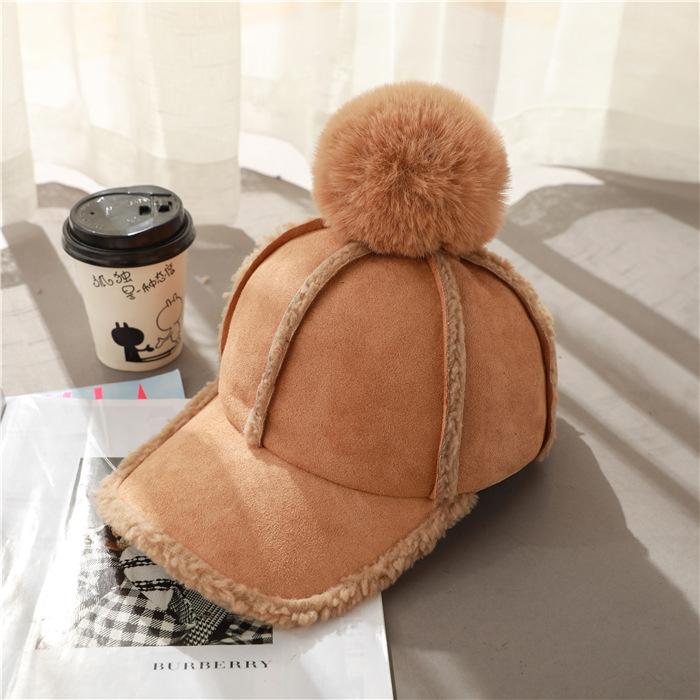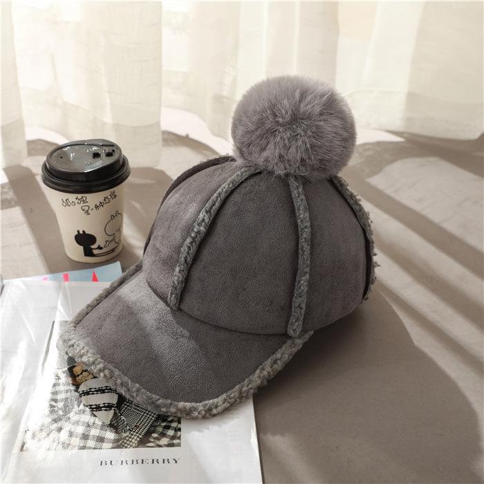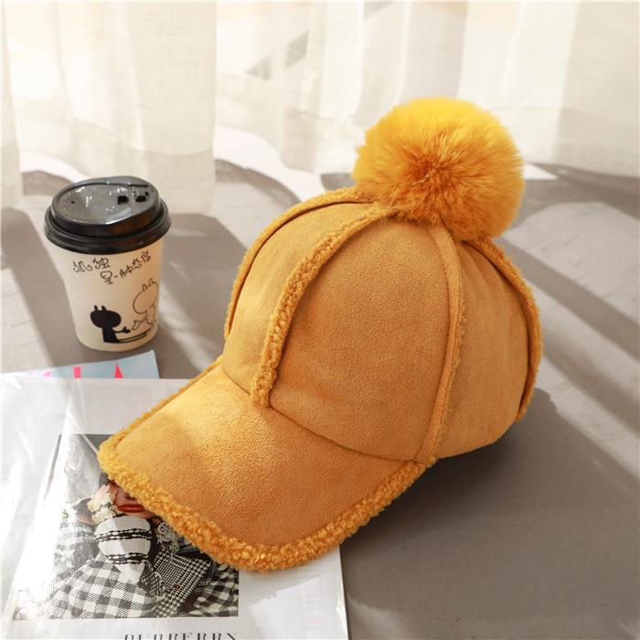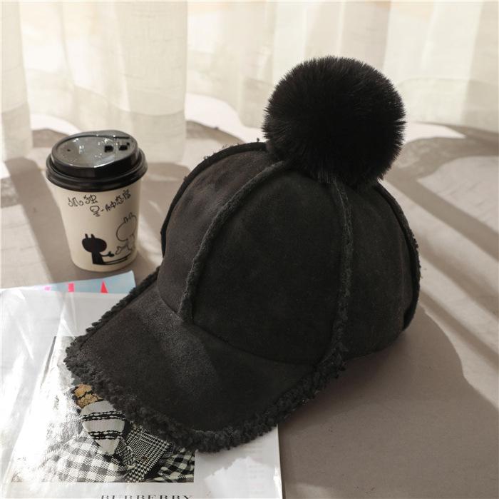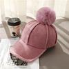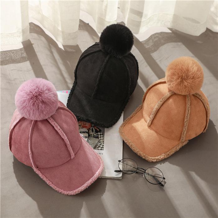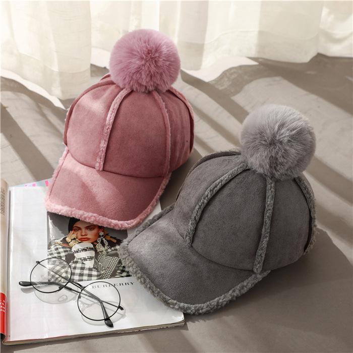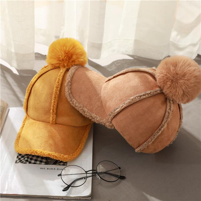 Gorra de béisbol de gamuza de moda de Corea del Sur para mujer, otoño e invierno, con bola de pelo de terciopelo grueso, gorra con visera suave para niña, gorro cálido que combina con todo