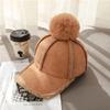 Gorra de béisbol cálida de gamuza para otoño e invierno para mujer, estilo coreano casual versátil con pompón de piel, moda para chica suave, gorra de visera de pato, sombrero de estudiante