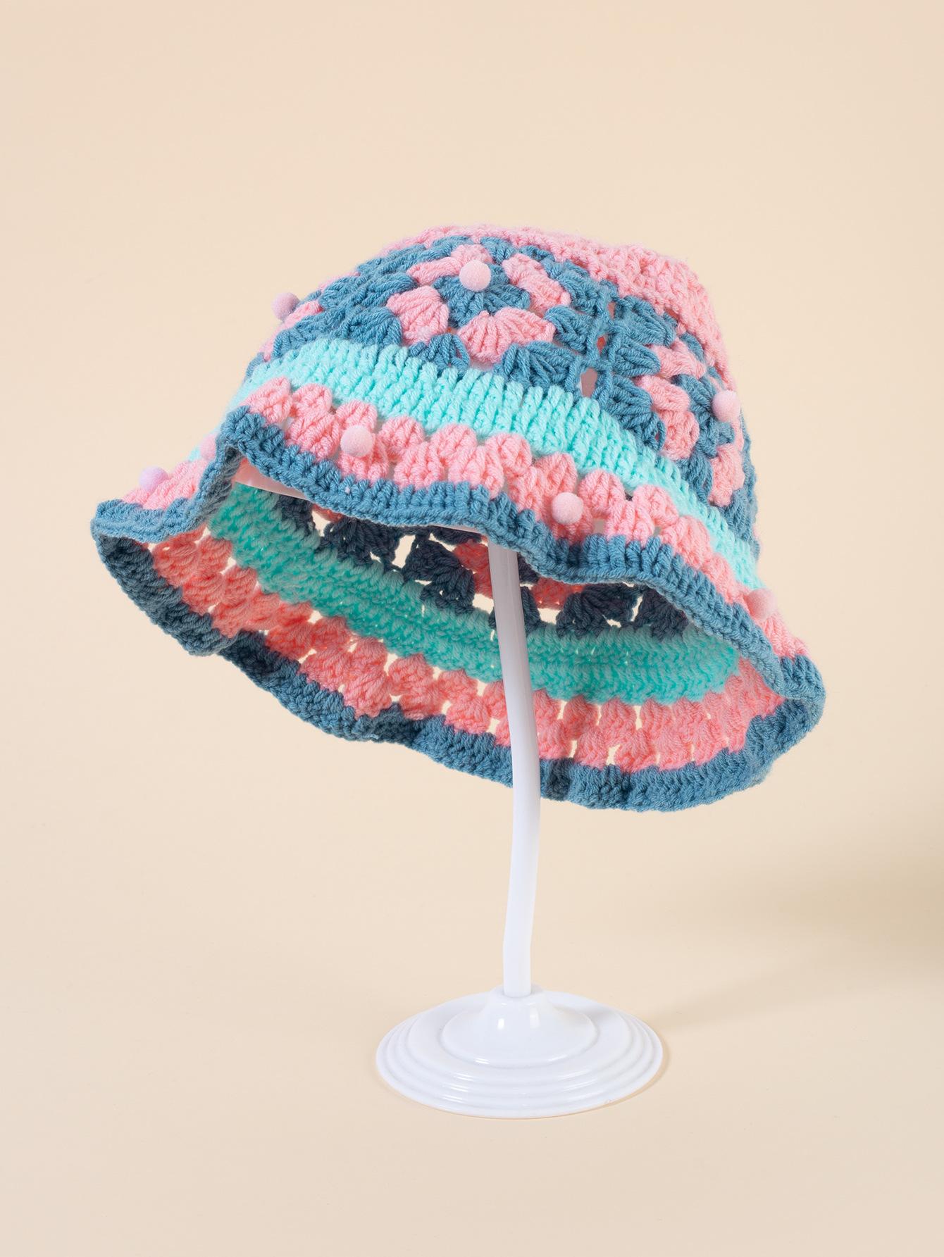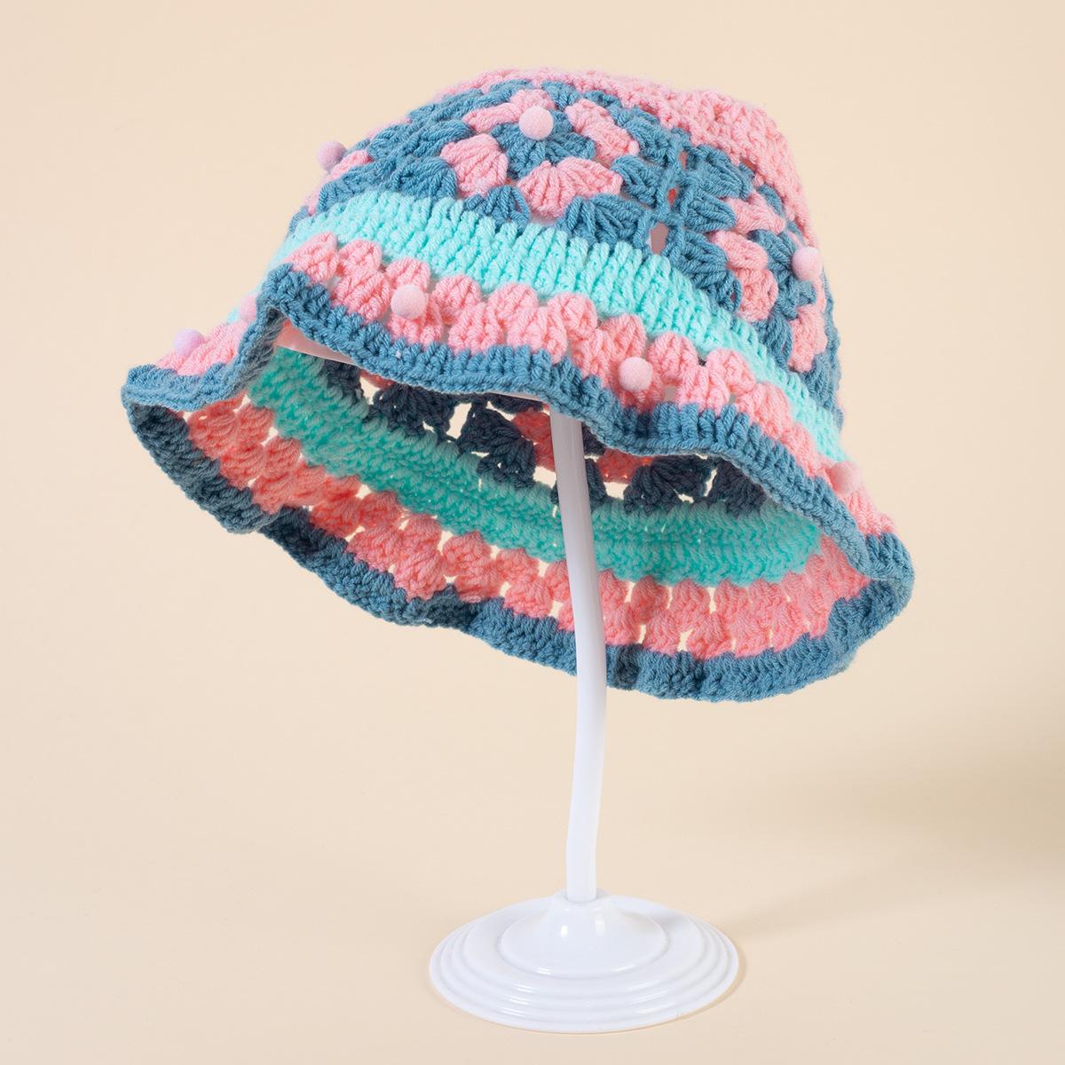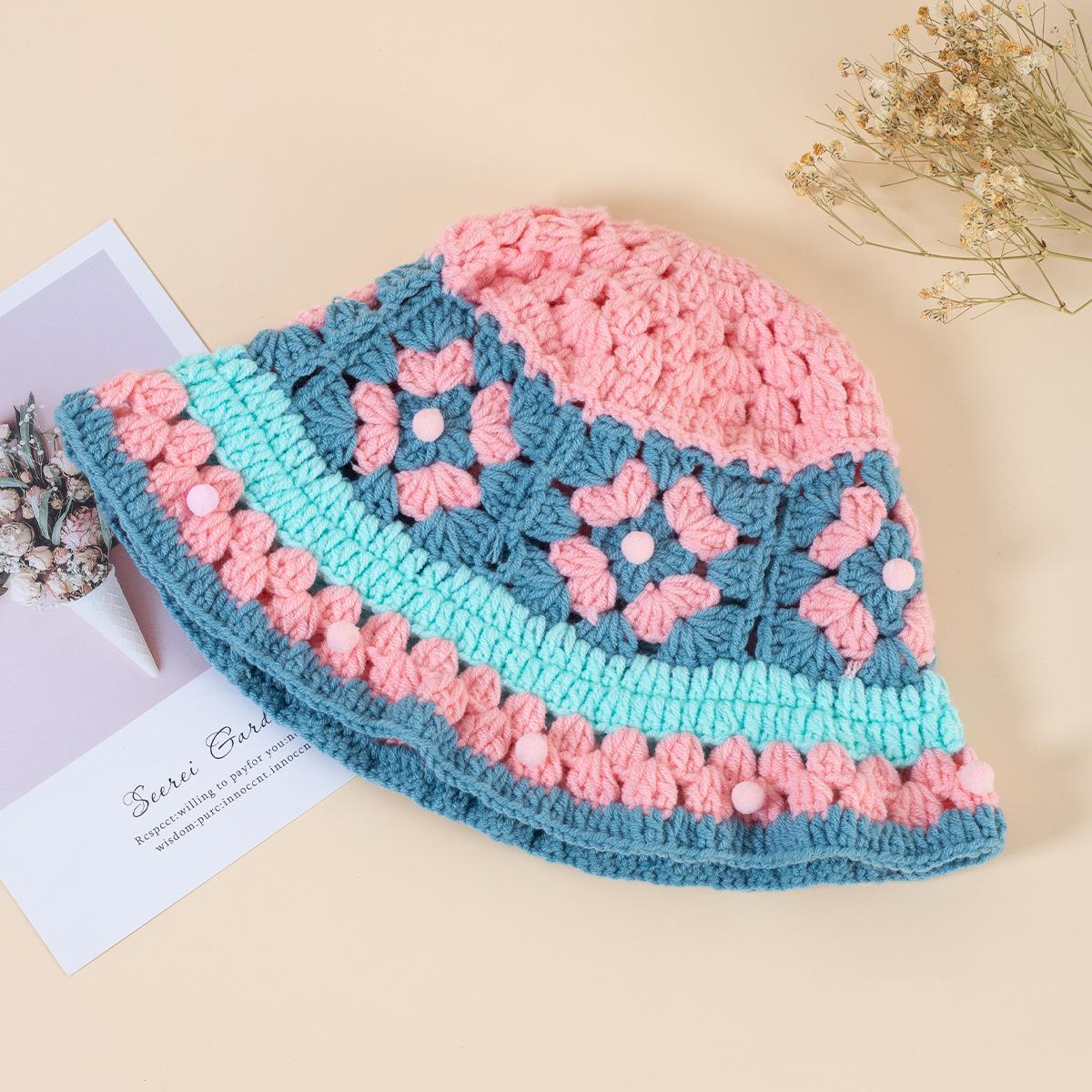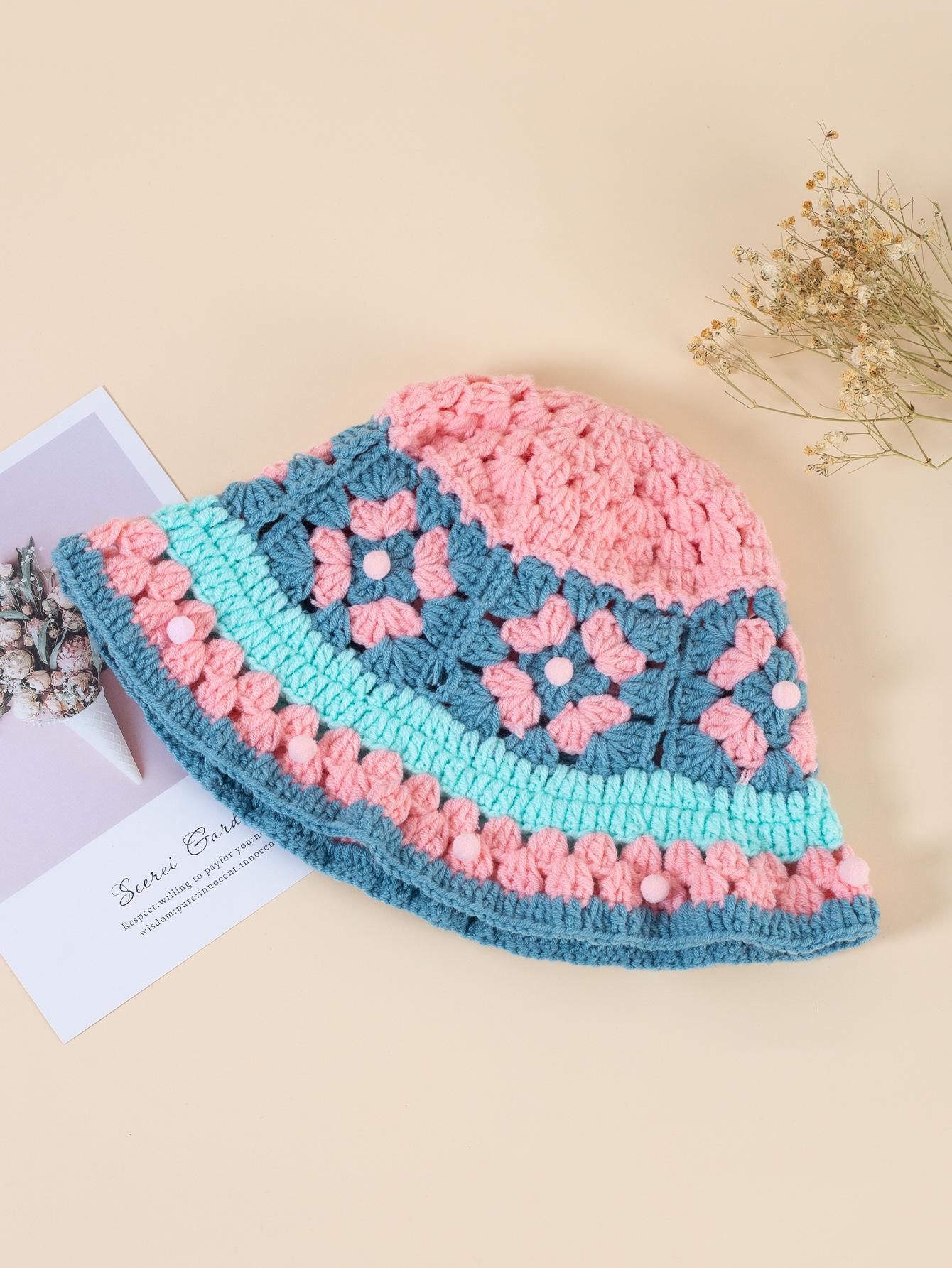 Gorro de punto de color crochet hecho a mano para mujer, gorro de invierno cálido con protección para las orejas para otoño e invierno, gorro de lana pequeño que combina con todo para mujer.