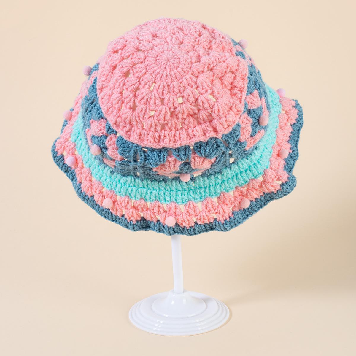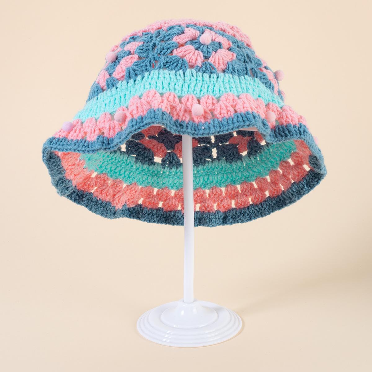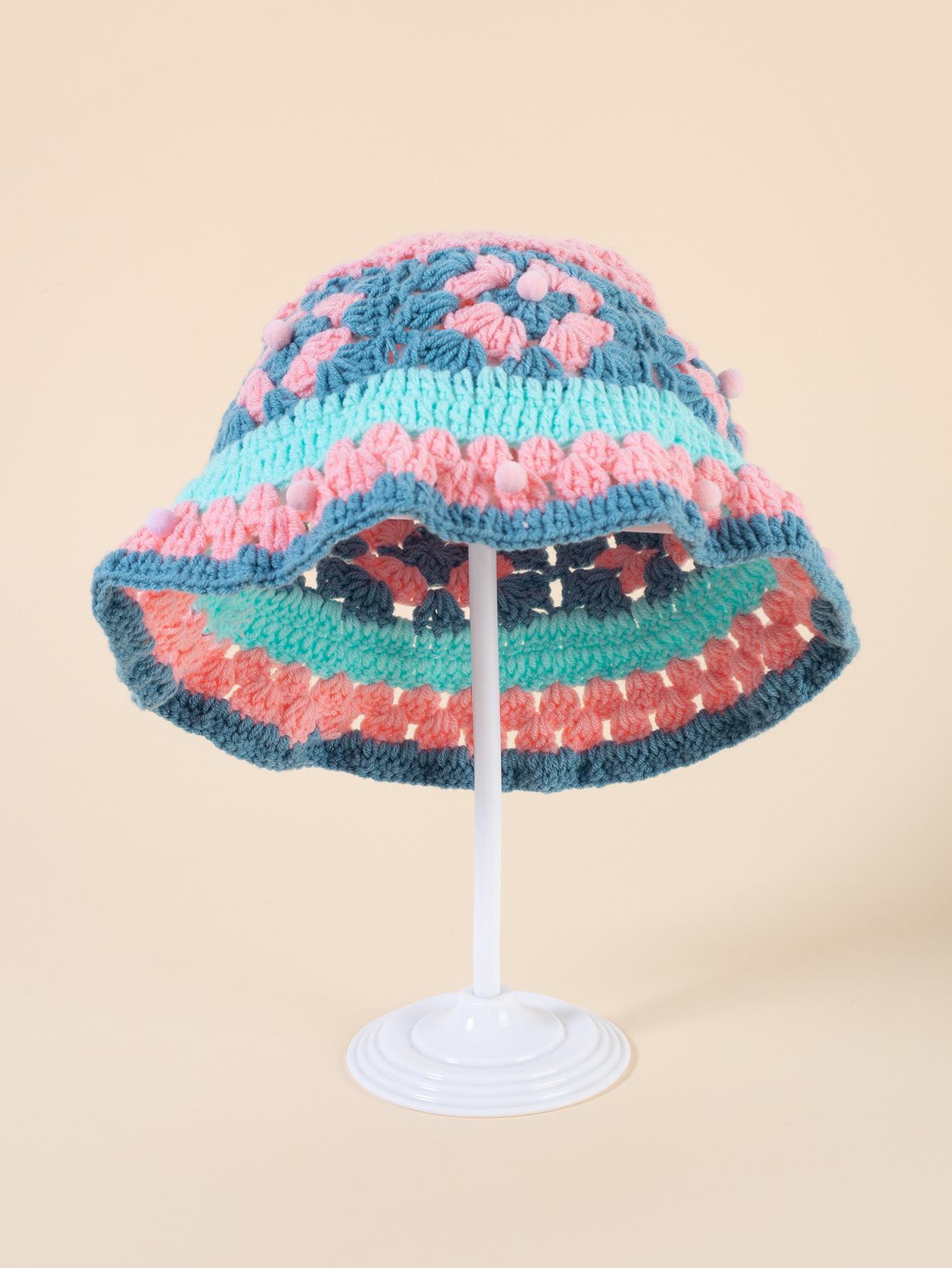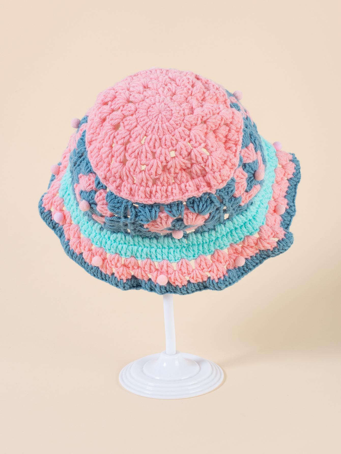 Gorro de punto de color crochet hecho a mano para mujer, gorro de invierno cálido con protección para las orejas para otoño e invierno, gorro de lana pequeño que combina con todo para mujer.