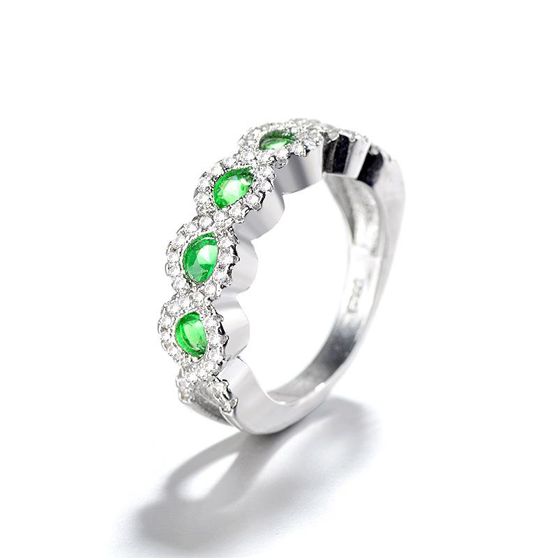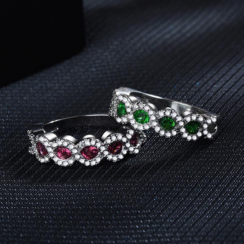 Anillo de compromiso transfronterizo de deseo, moda europea y americana, micro incrustado de rubí, anillo europeo y americano de circón verde para nueva abuela