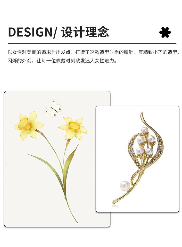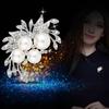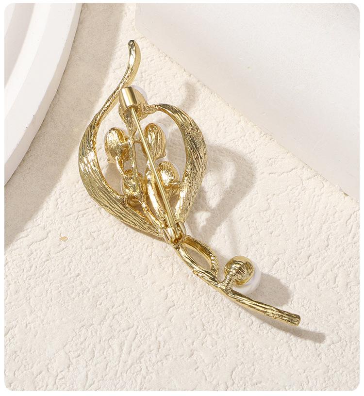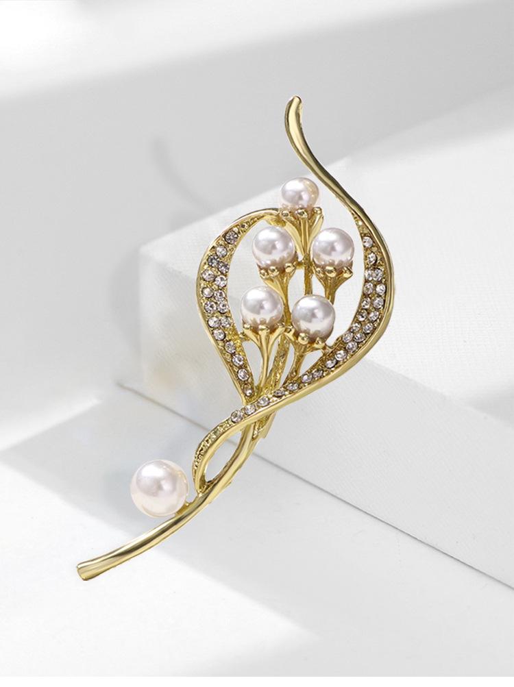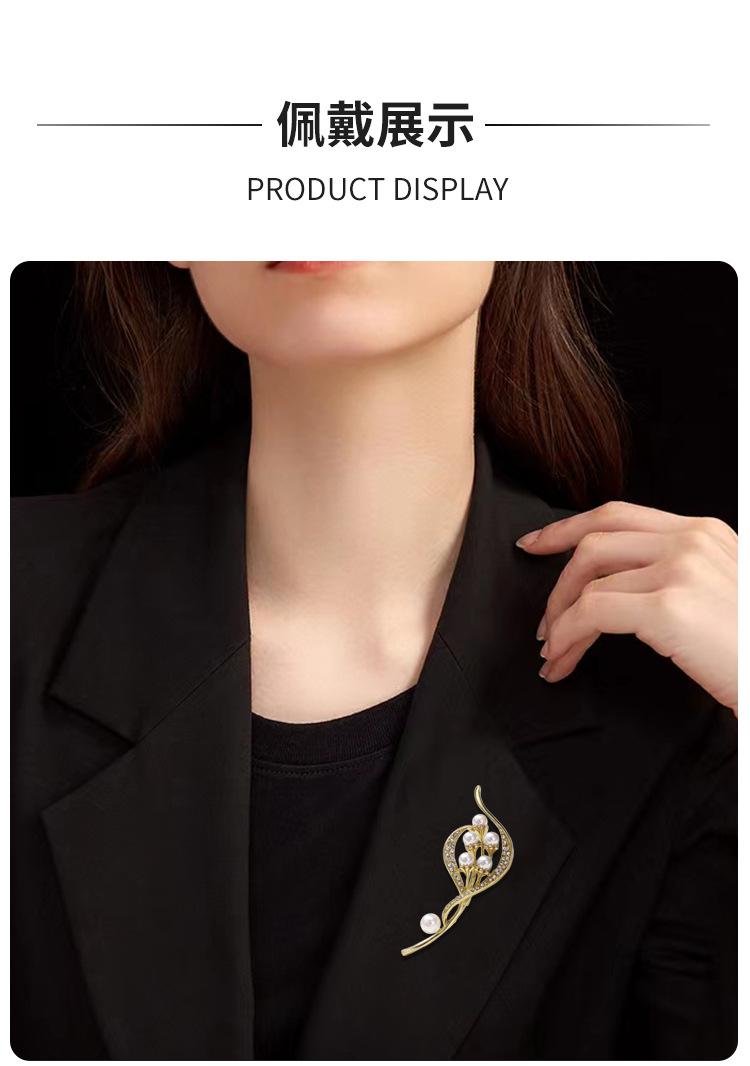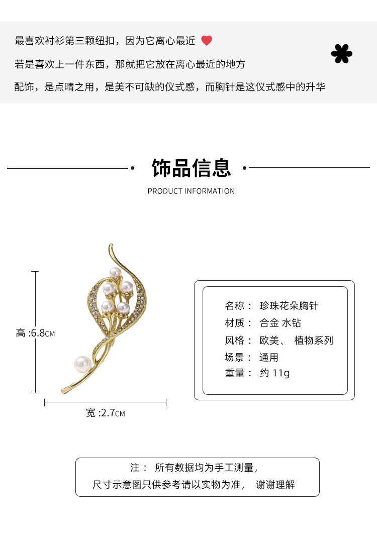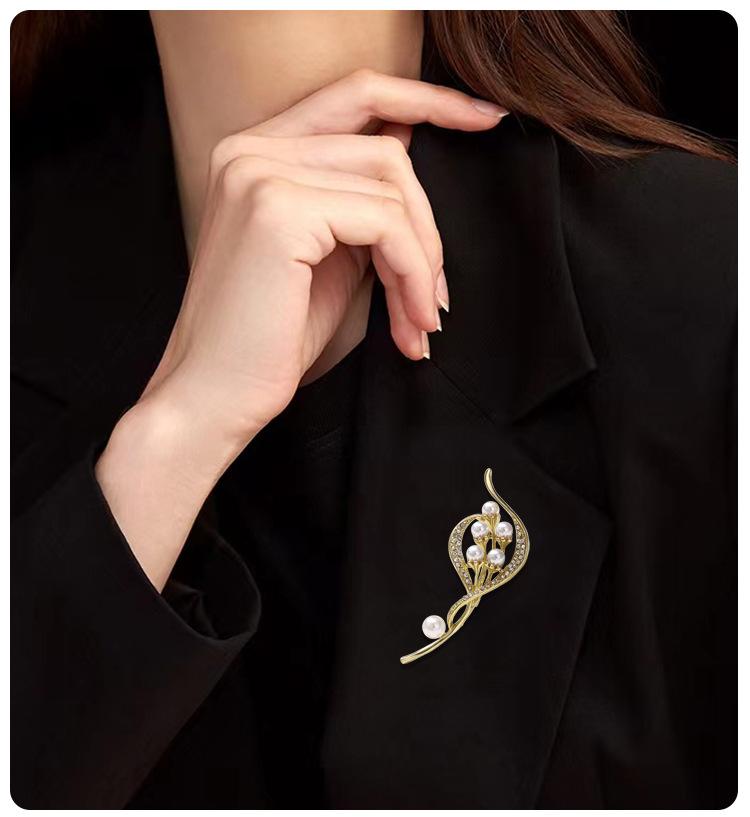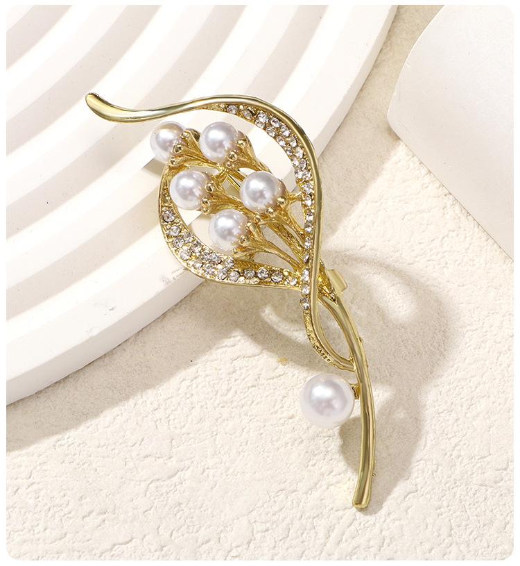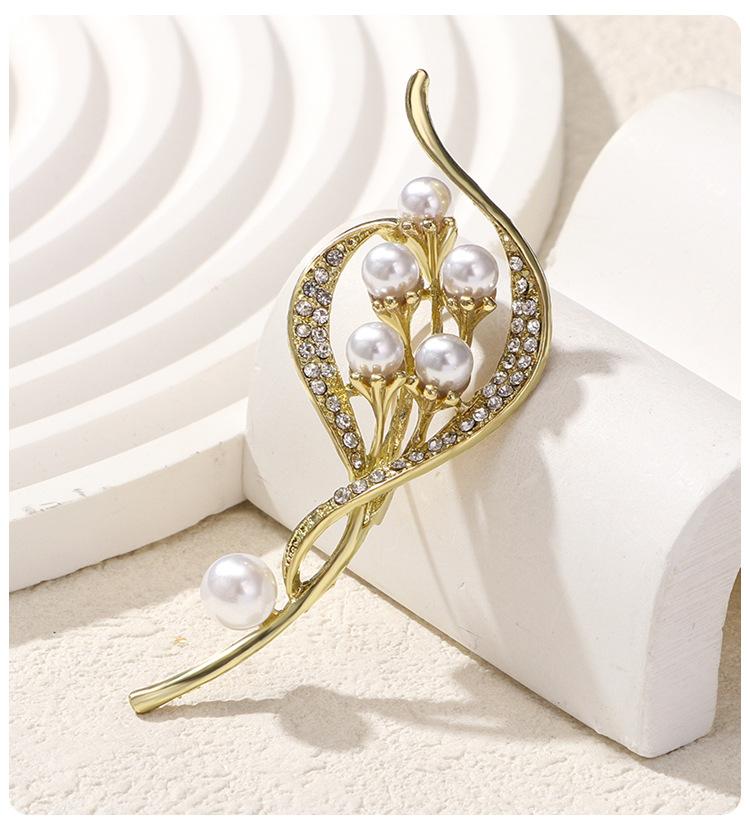 Broche de ramo de perlas con incrustaciones de diamantes de estilo coreano, temperamento, accesorios de ropa de alta gama, alfiler de flor de planta de aleación, ramillete