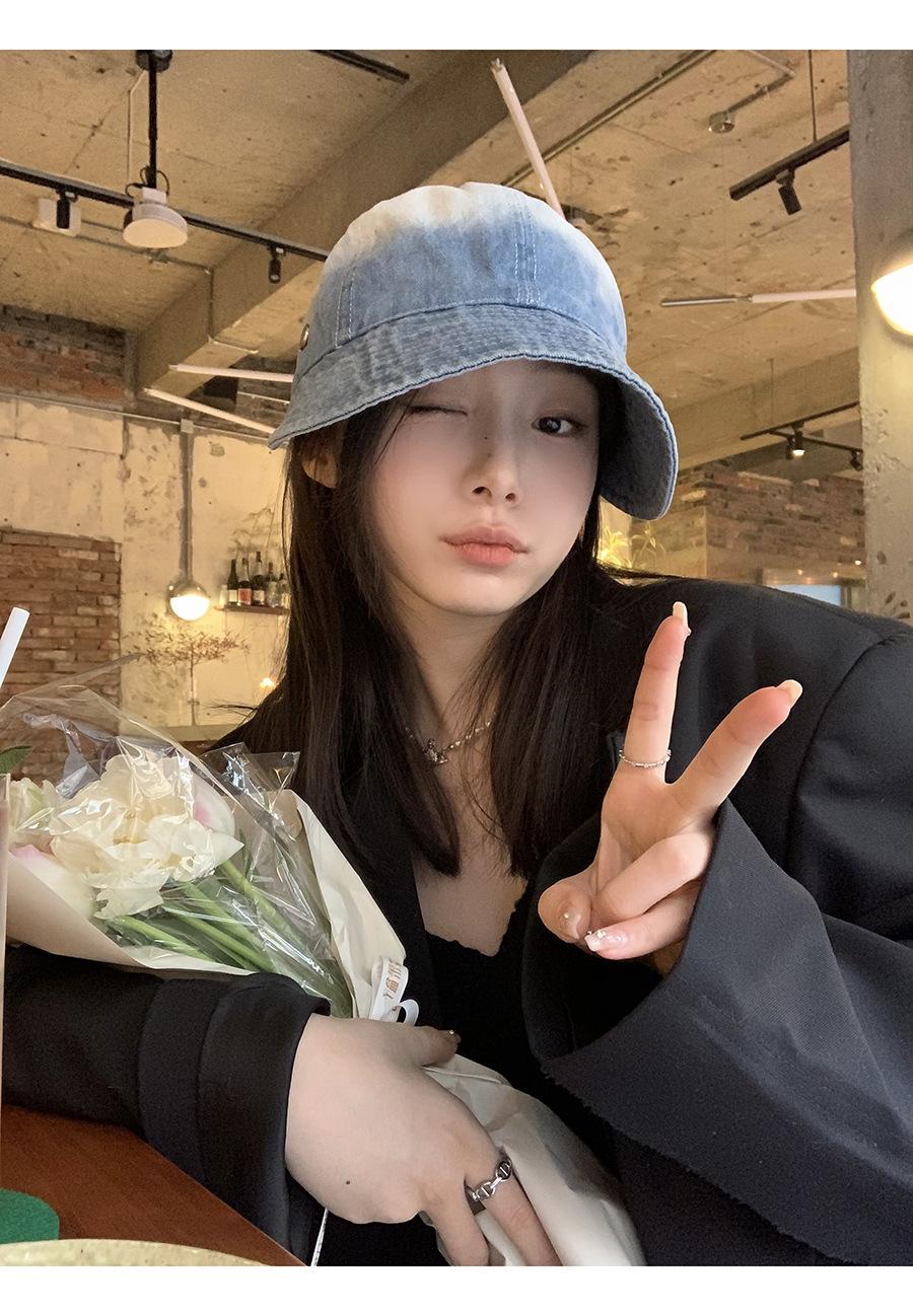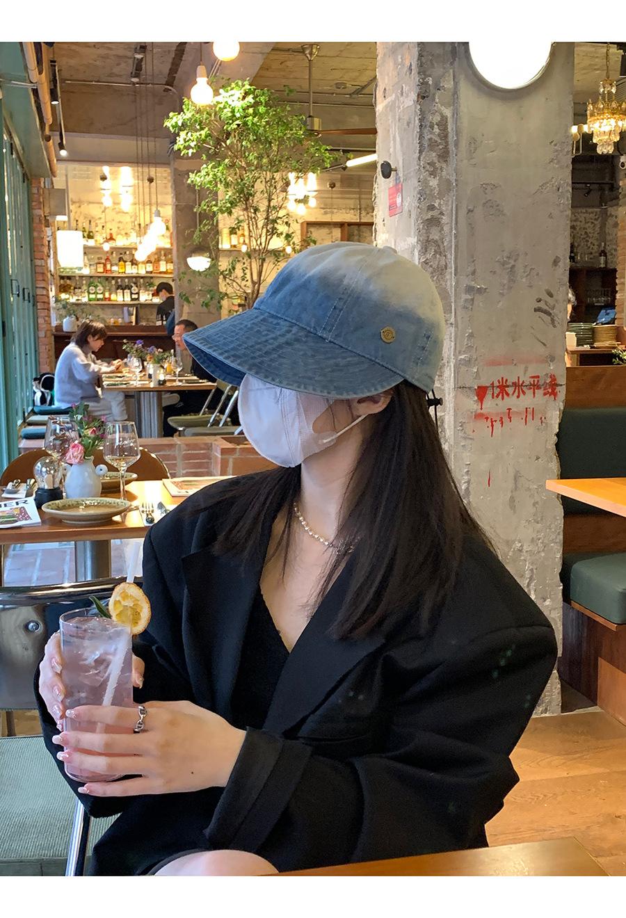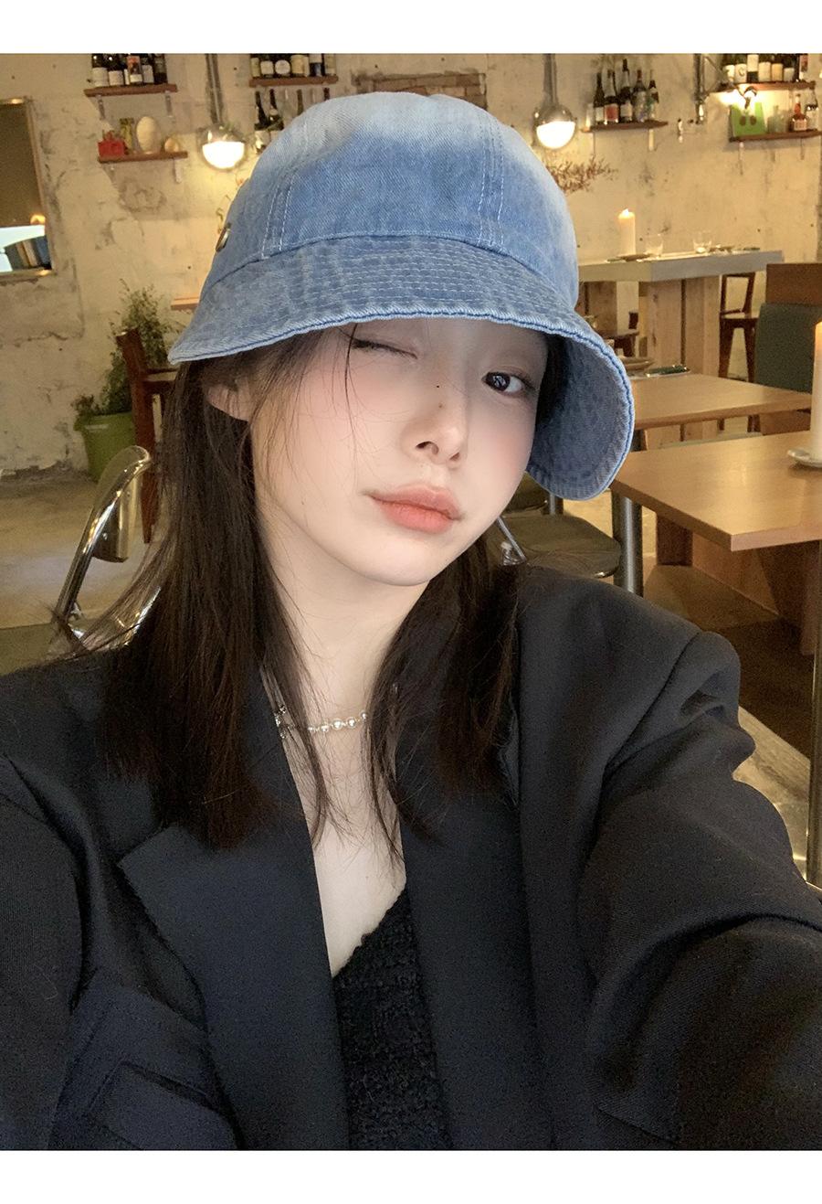 Sombrero de estilo coreano para mujer, primavera y otoño 2023, nuevo sombrero de pescador vaquero, informal, combinable, con cara visible, pequeño parasol.