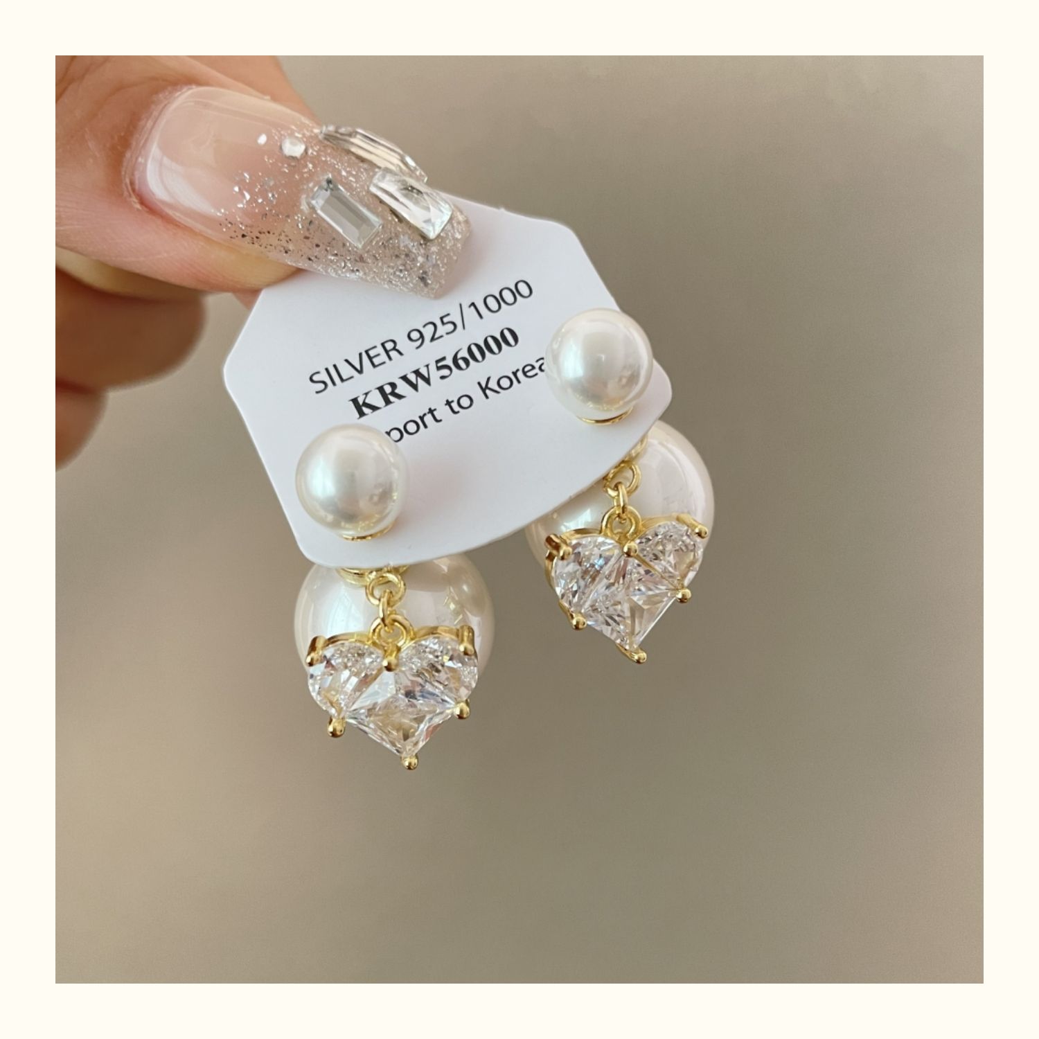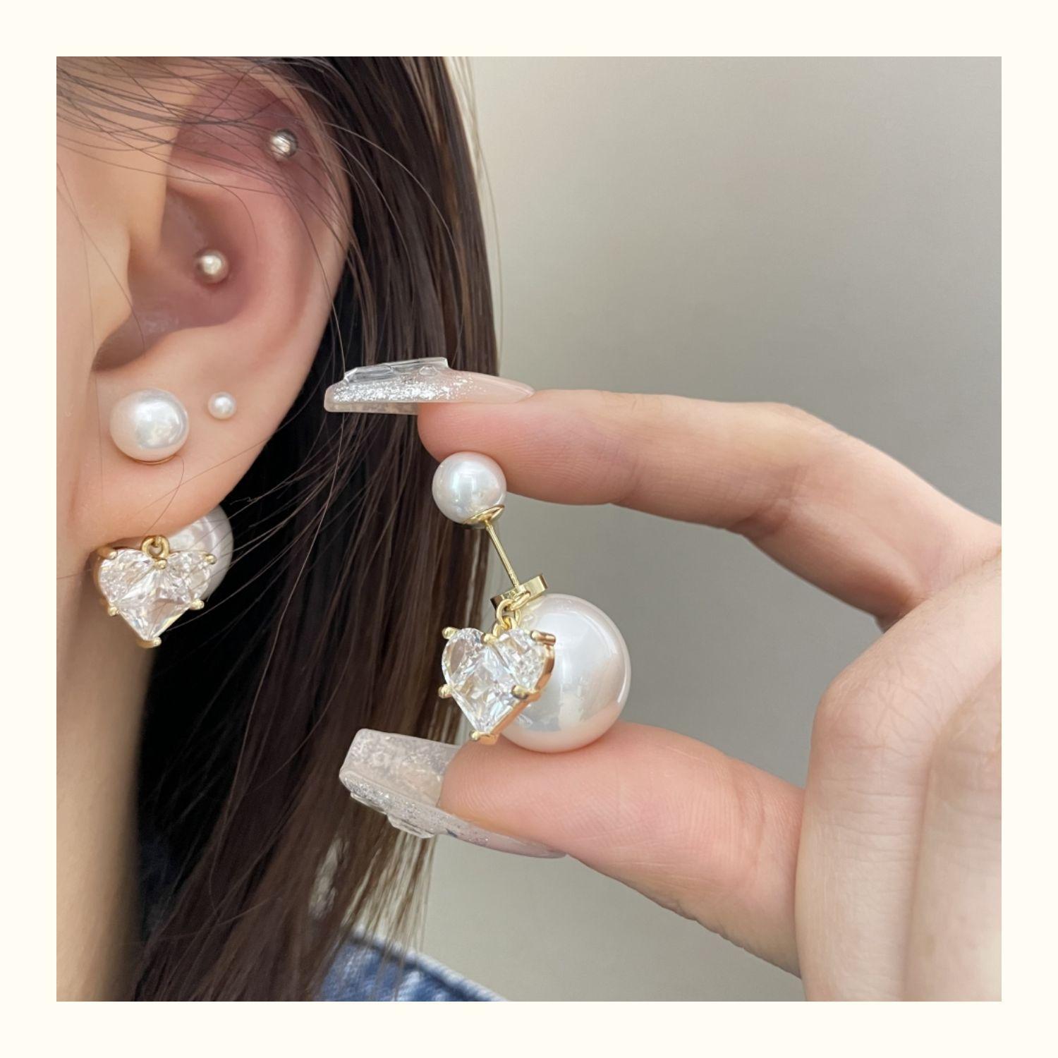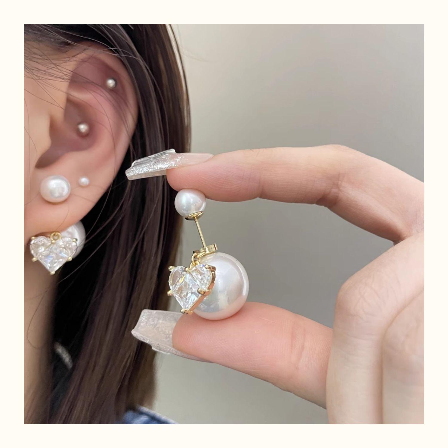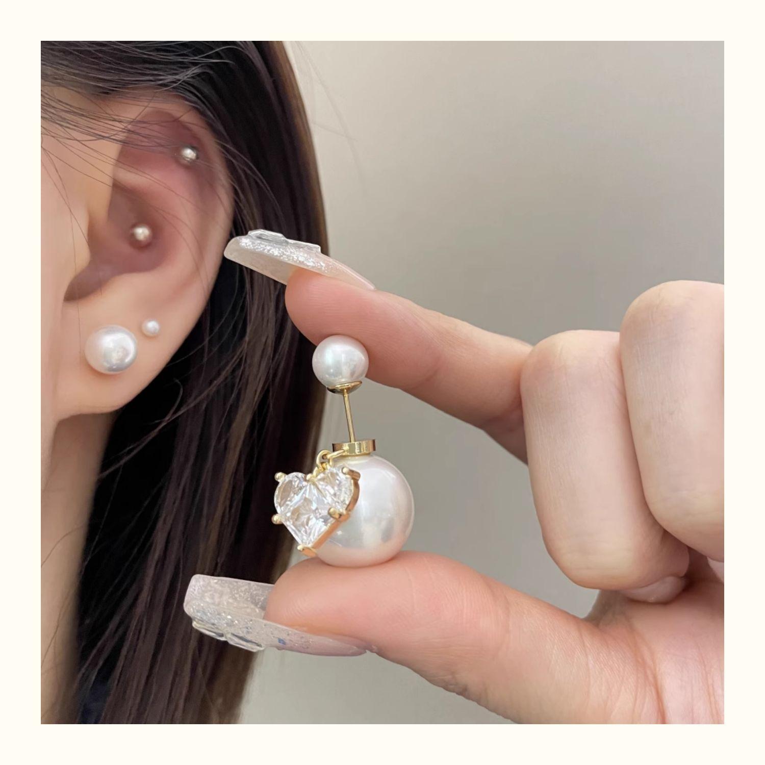 Pendientes de circonita con forma de perla de alta calidad para mujer, con aguja de plata S925, exquisitos pendientes de diamantes, pendientes de dos piezas