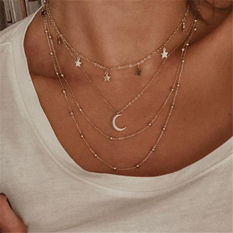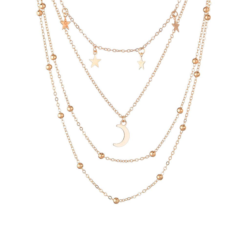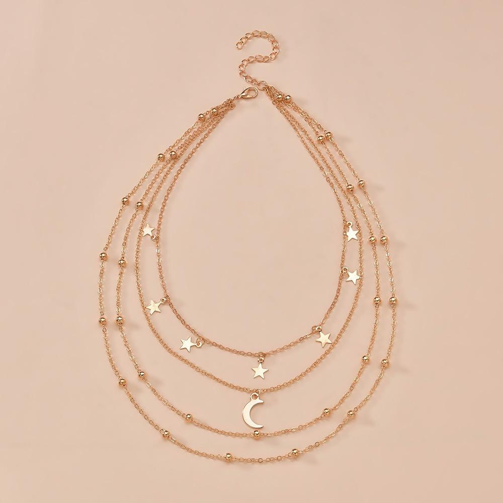 Collar de metal con cadena multicapa y borla de estrella y luna, joyería de lujo, de moda transfronteriza, al por mayor