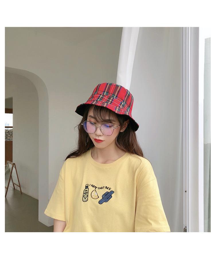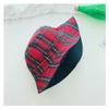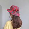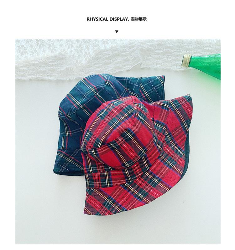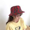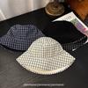 Sombrero de pescador a cuadros retro británico versátil, sombrero de cubo de ocio literario para mujer japonesa, sombrero coreano chic de doble cara para chica suave