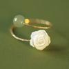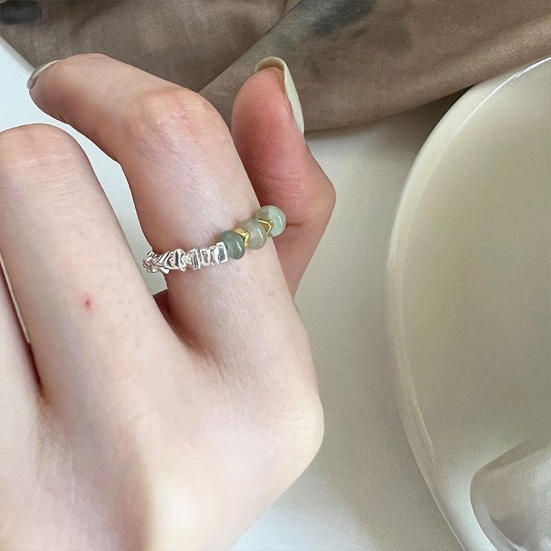 Versión Coreana Nicho Lujo Ligero Exquisito Cristal Color Jade Bloque de Color Bala de Plata Anillo de Cuerda Elástica Moda para Mujer Anillo Versátil Tendencia