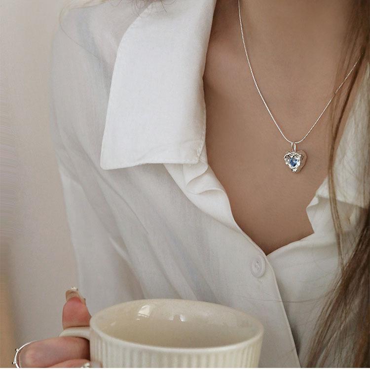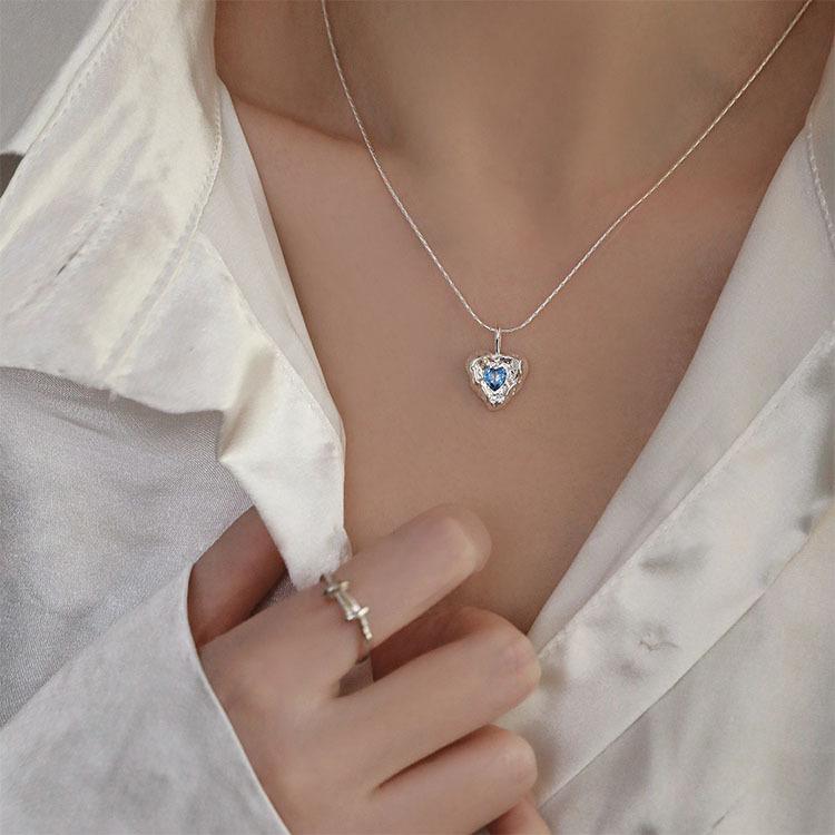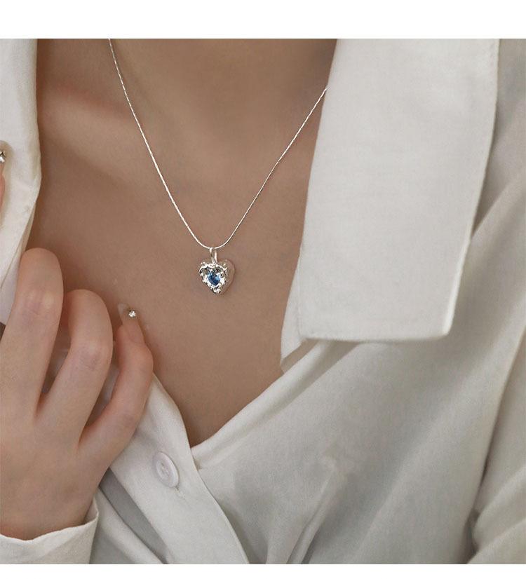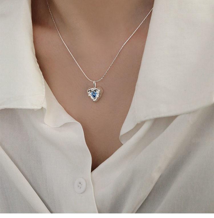 Collar de amor azul para mujer, de alta calidad, para niña, dulce, moderno, diseño de nicho, cadena de clavícula, joyería personalizada de estilo frío
