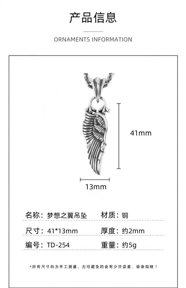 TD-254 Wings of Dreams pendant: (without chain), TD-254 Wings of Dreams pendant + dragon bone chain, TD-254 Wi...