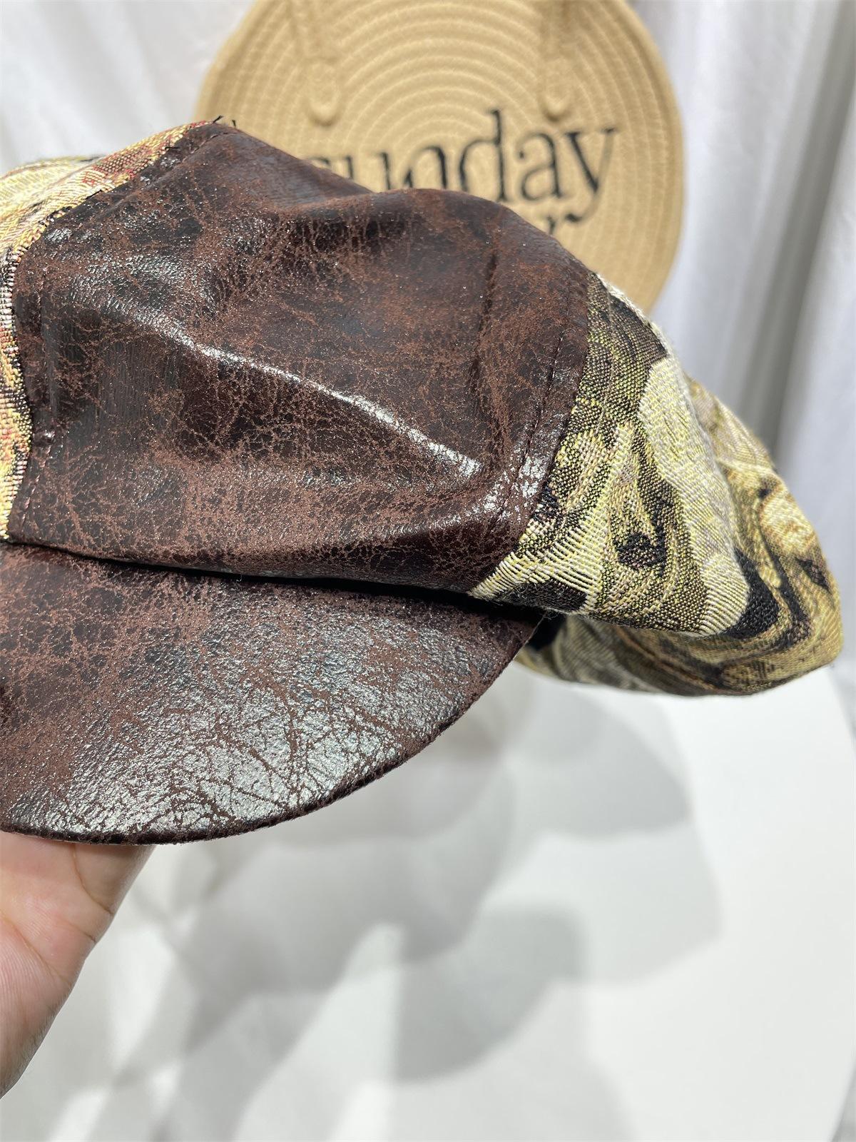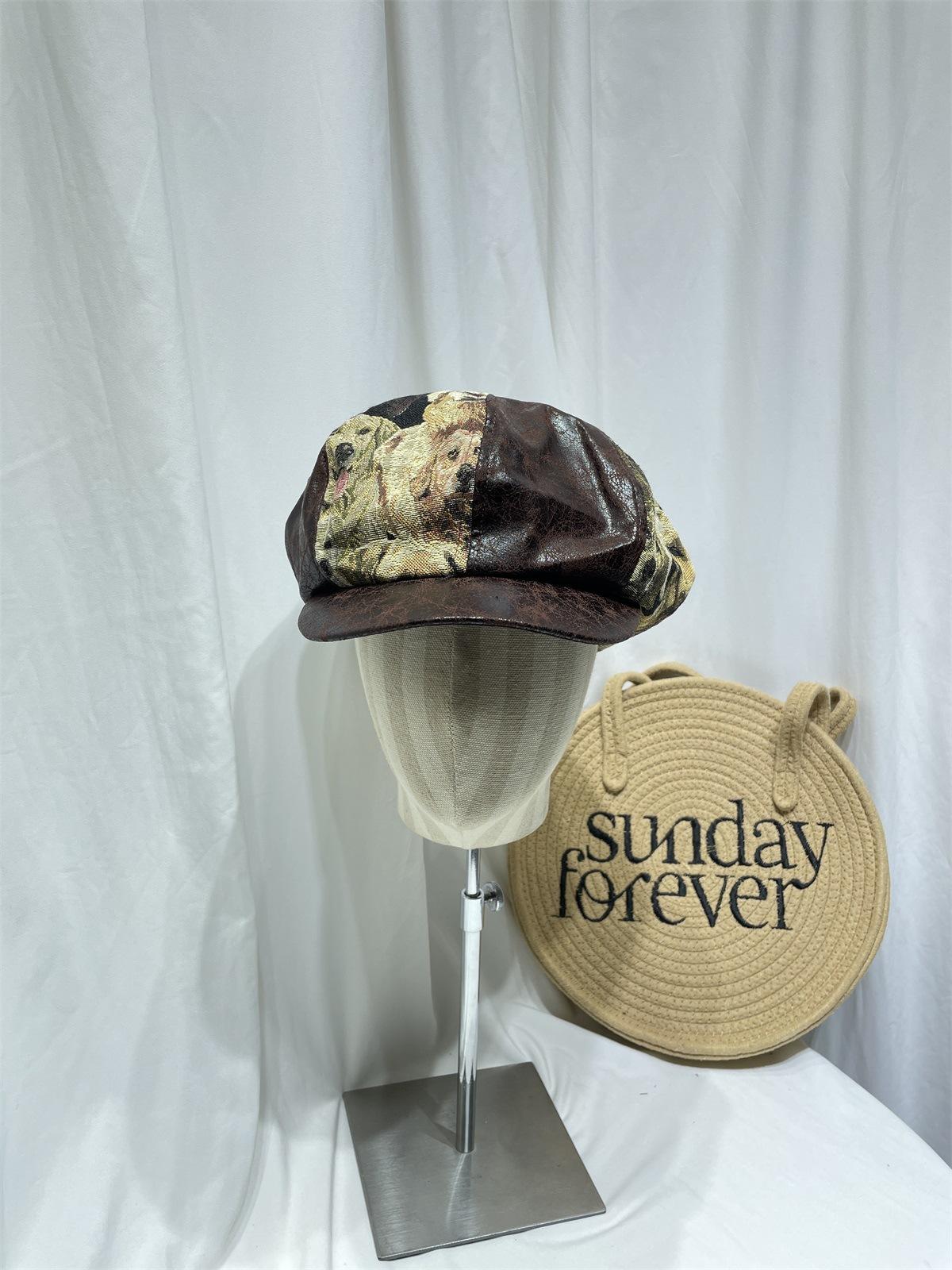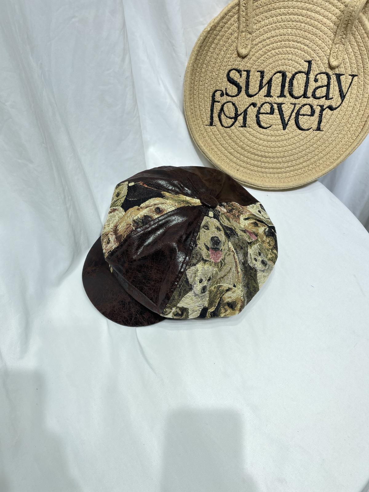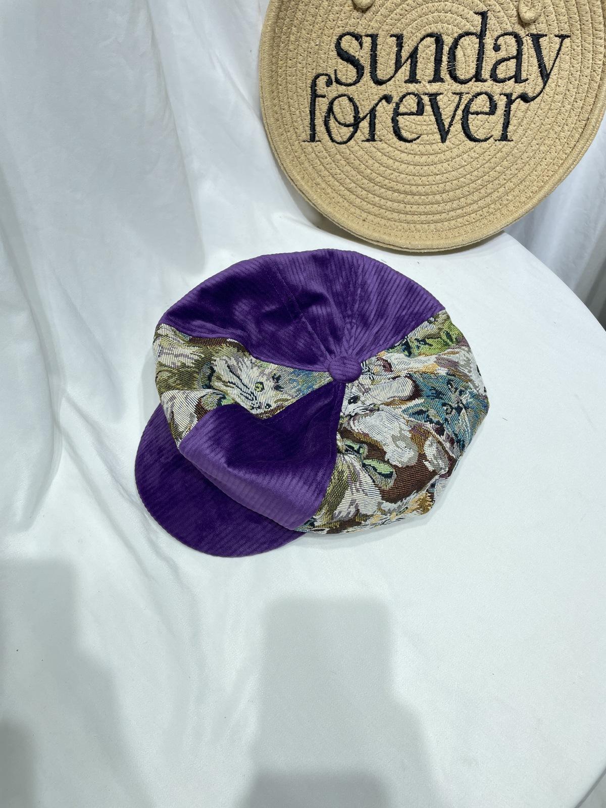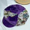 Boina de pana con costuras jacquard de cachorro retro artística para mujer, sombrero octogonal pequeño de vendedor de periódicos con aspecto de calle para otoño e invierno.
