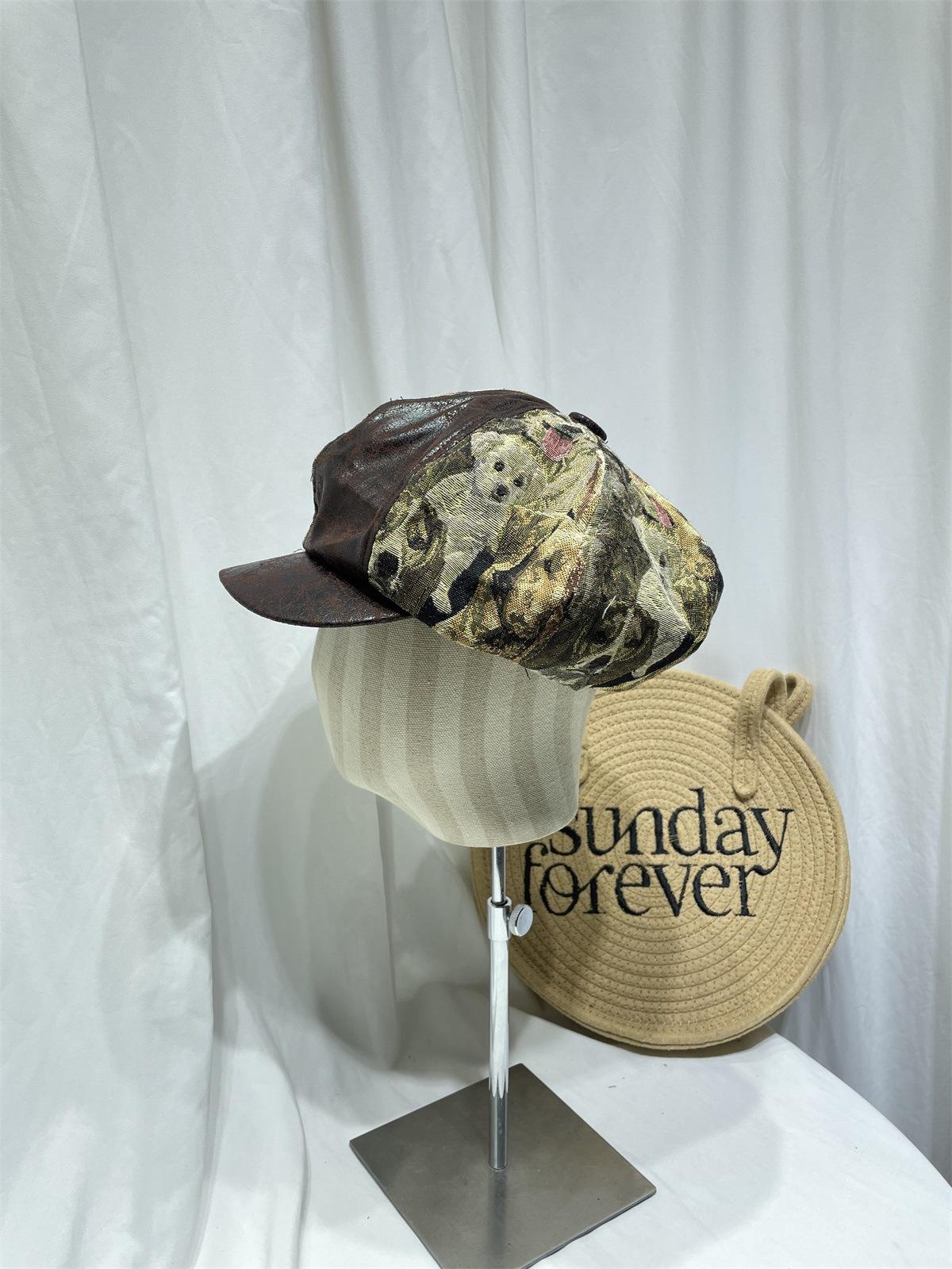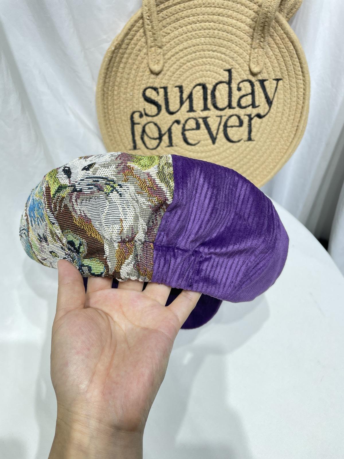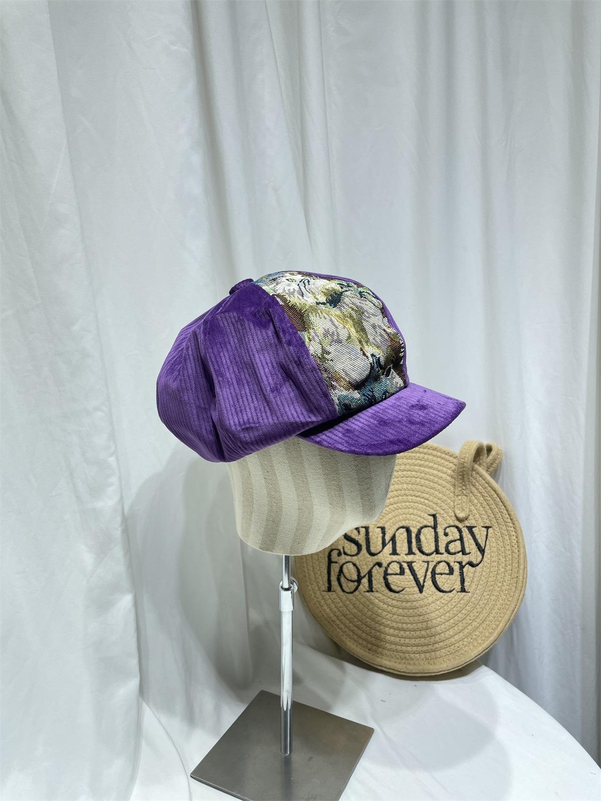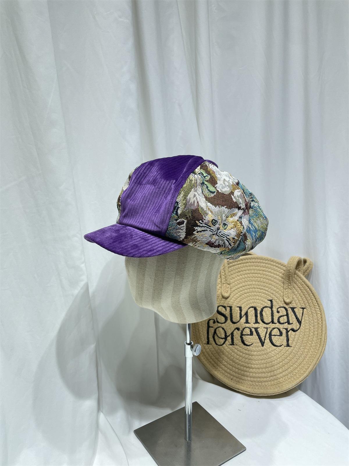 Boina de pana con costuras jacquard de cachorro retro artística para mujer, sombrero octogonal pequeño de vendedor de periódicos con aspecto de calle para otoño e invierno.