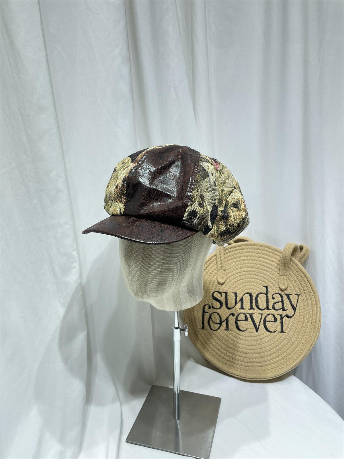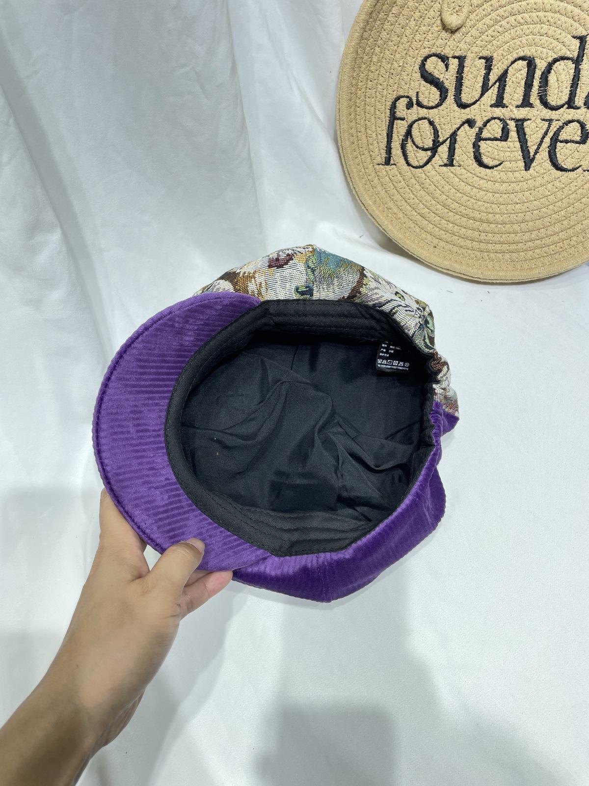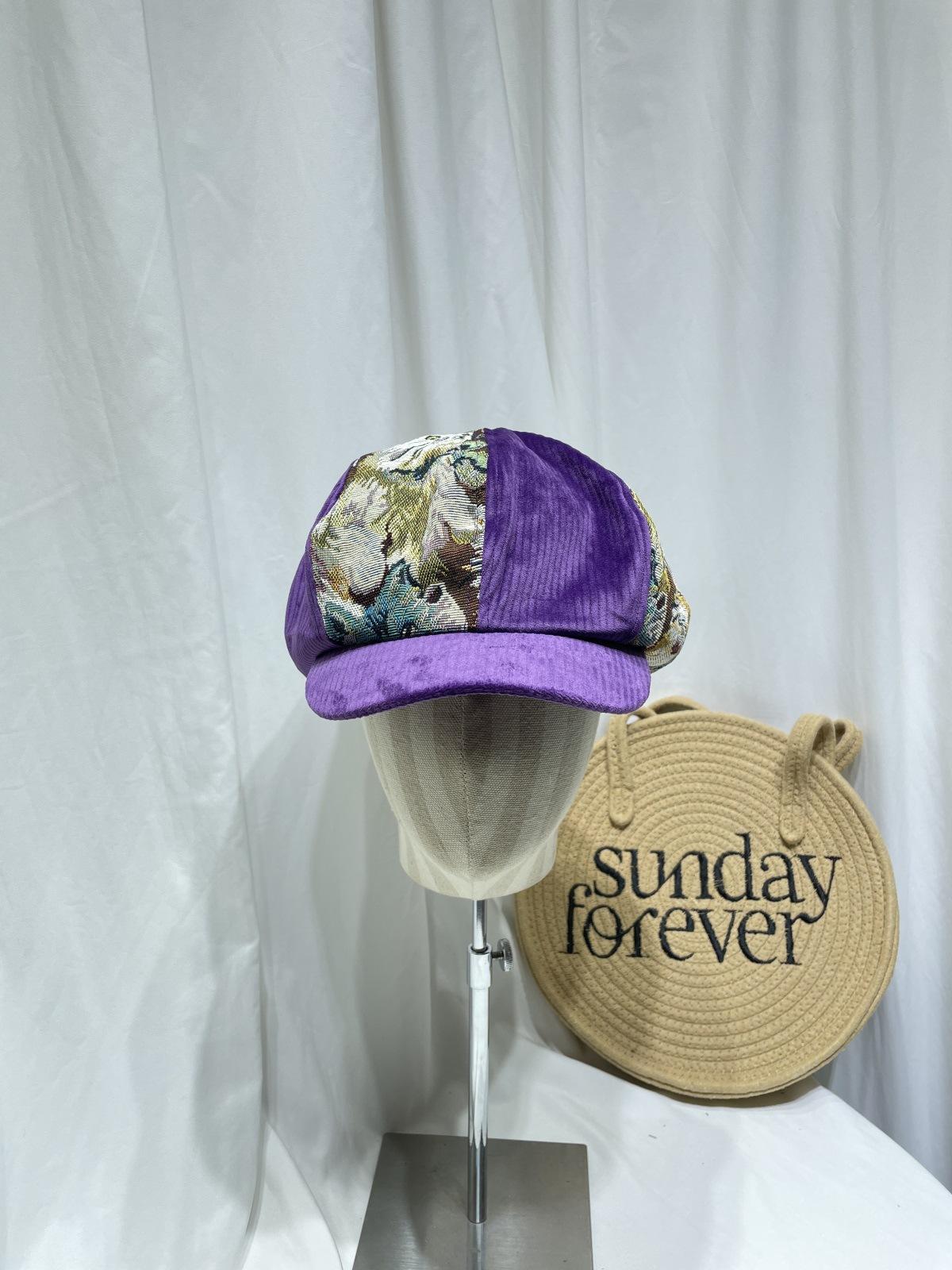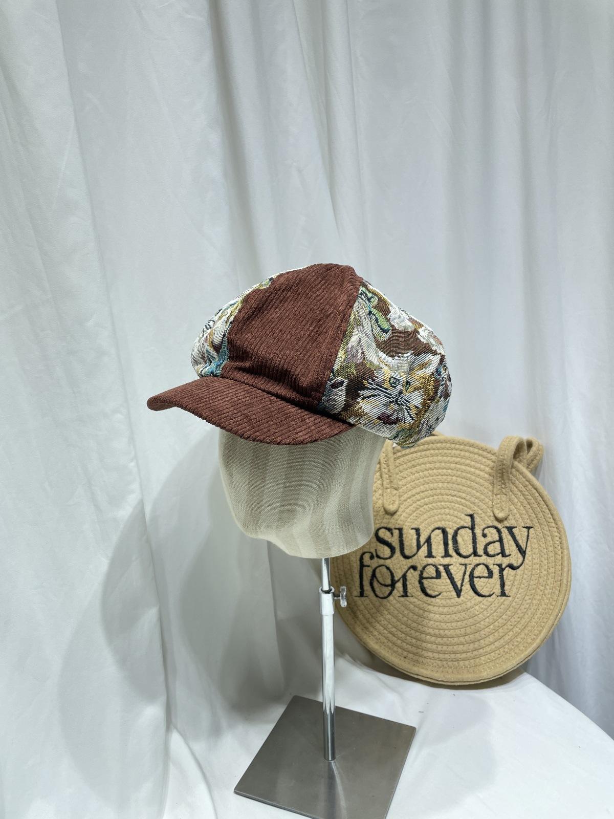 Boina de pana con costuras jacquard de cachorro retro artística para mujer, sombrero octogonal pequeño de vendedor de periódicos con aspecto de calle para otoño e invierno.
