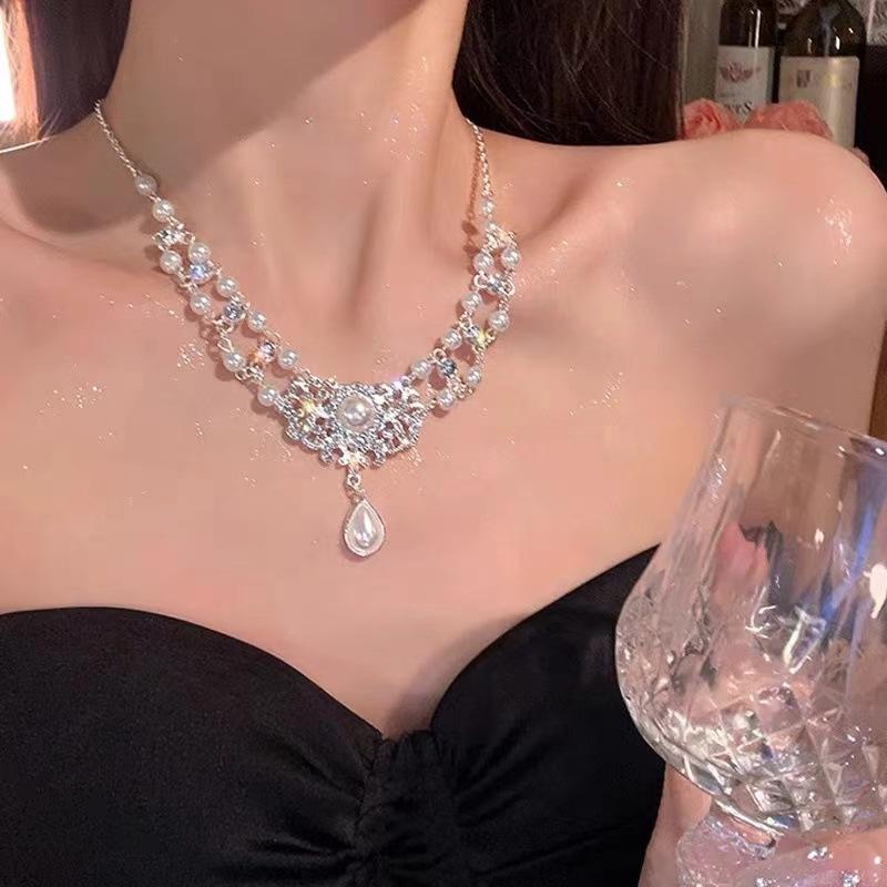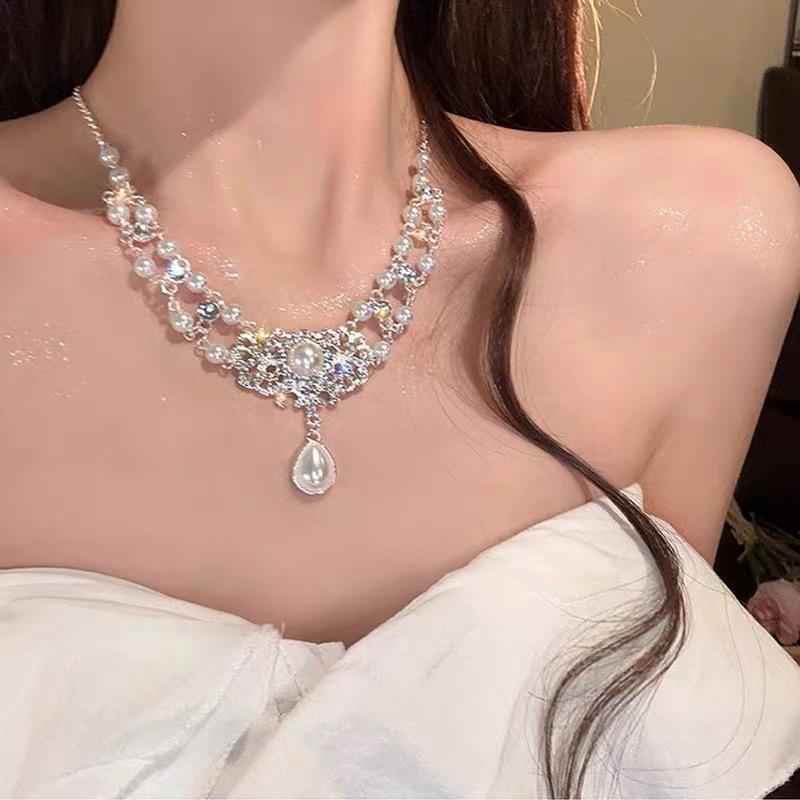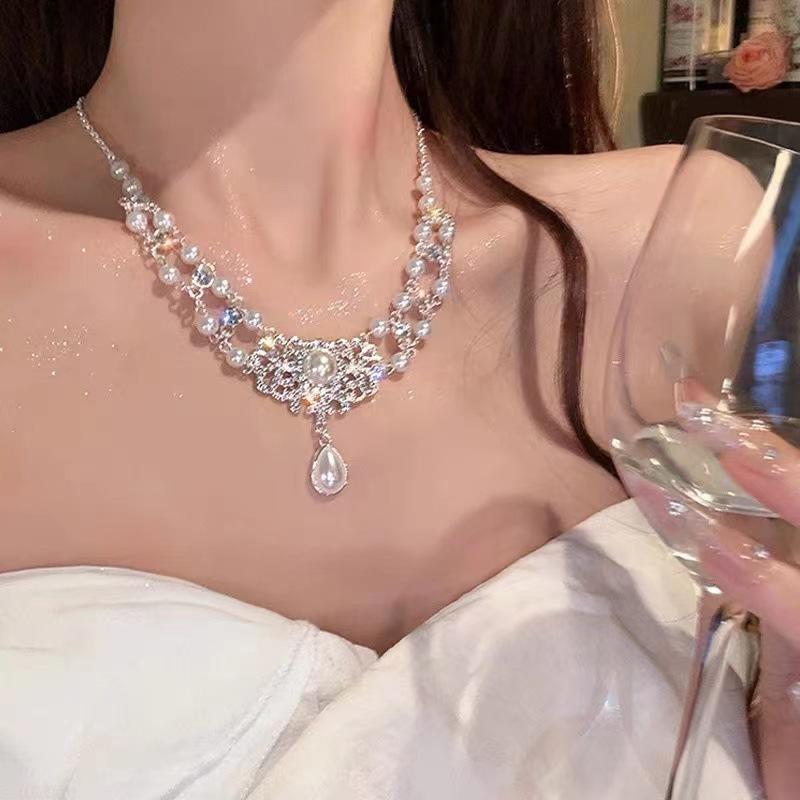 Collar de perlas de doble capa para mujer, diseño de nicho, collar con borlas, cadena de clavícula de diamantes de imitación de lujo ligero de alta gama, accesorios de vestir de moda