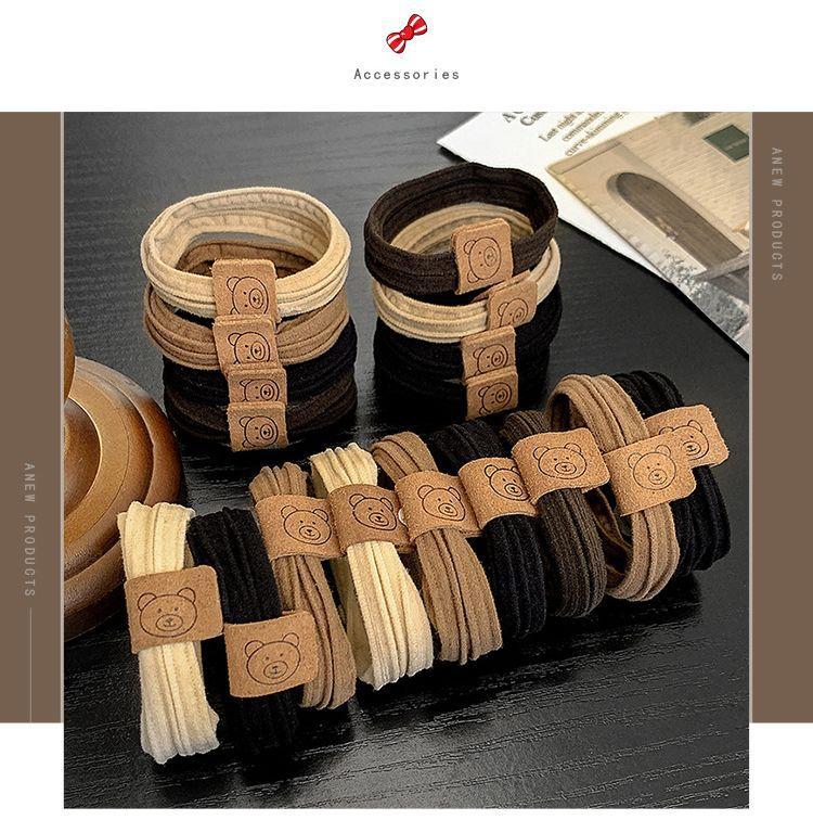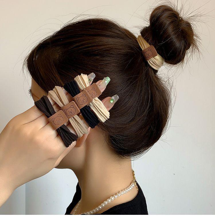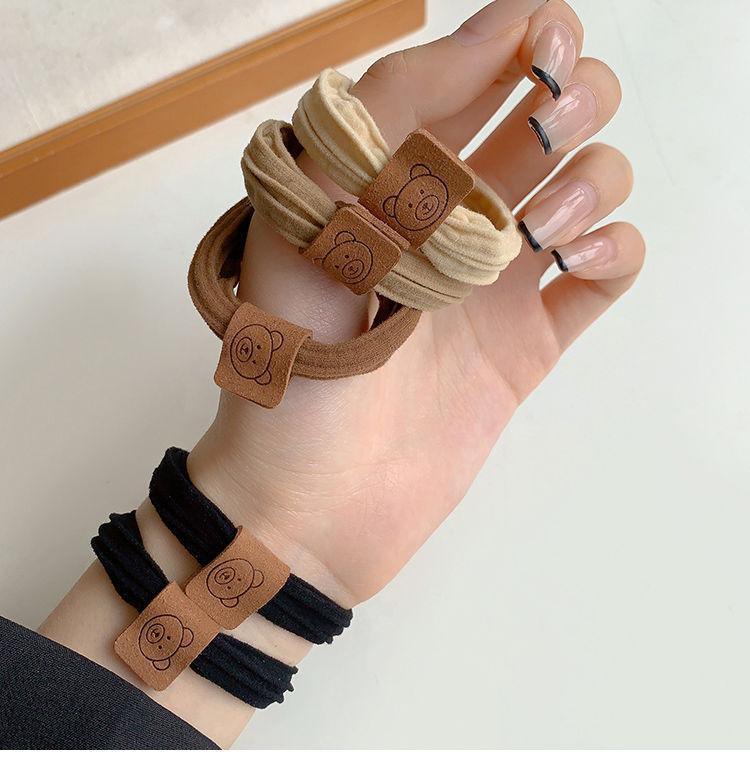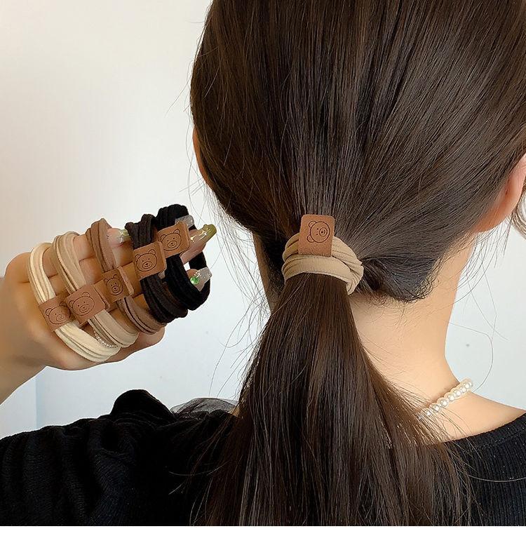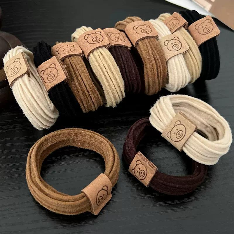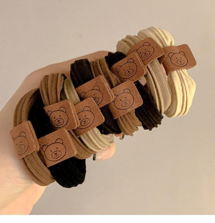 Banda de goma elástica simple de alta calidad sin costuras con forma de oso para mujer, aro para el cabello grueso, cuerda para el cabello con cola de caballo alta y duradera, cubierta de cuero al por mayor