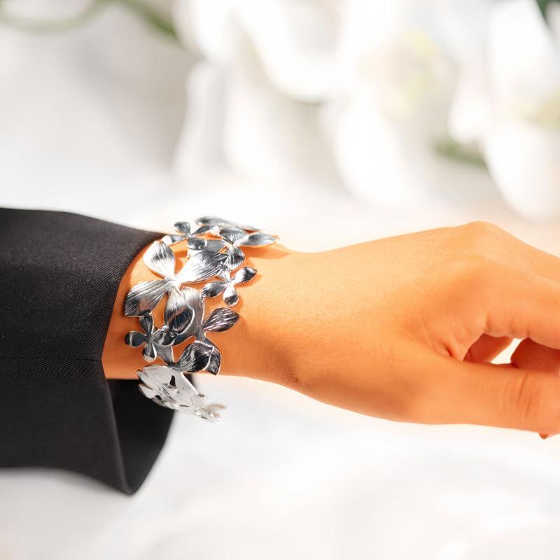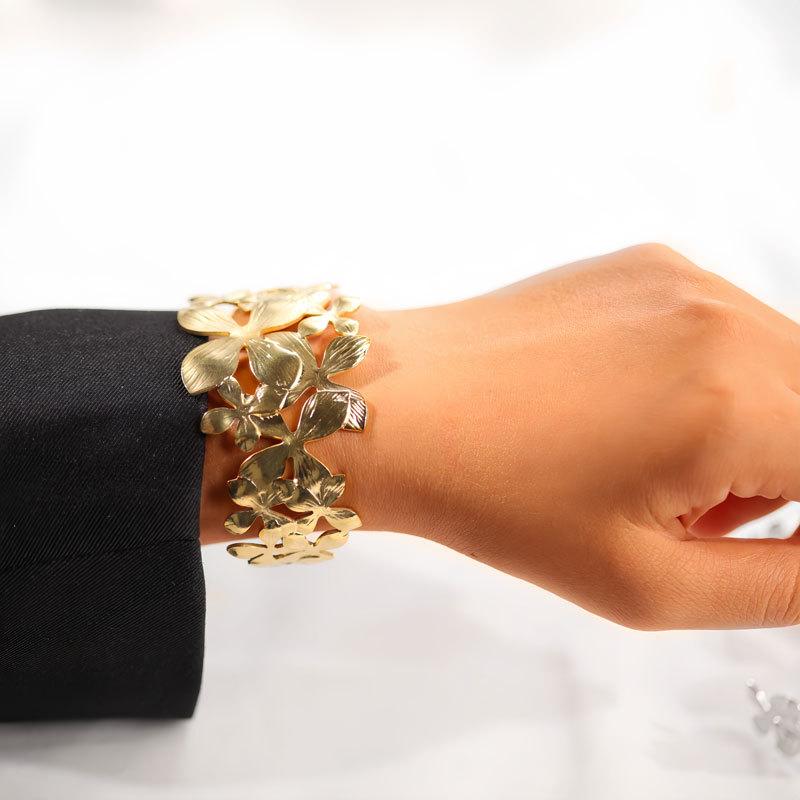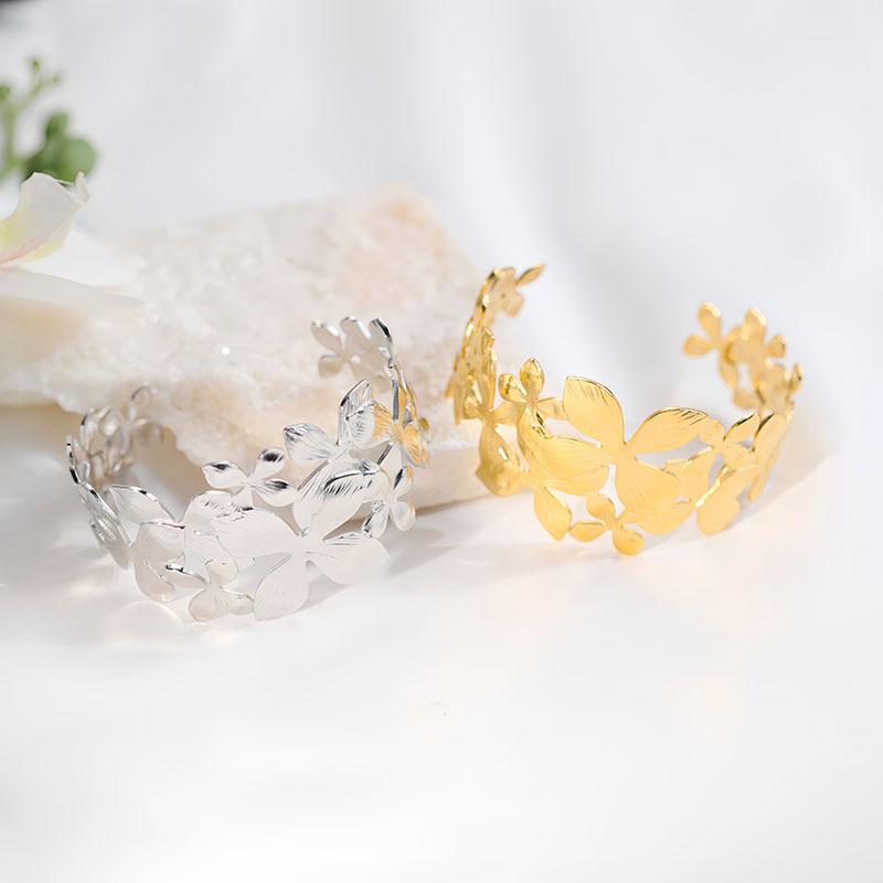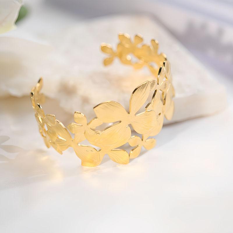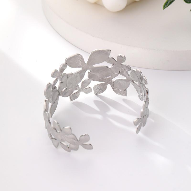 Compra Diseño de personalidad europea y americana pulsera de flores huecas abiertas temperamento de moda joyería de acero de titanio mujeres no se desvanecen venta al por mayor comodín al por mayor en Joom.pro