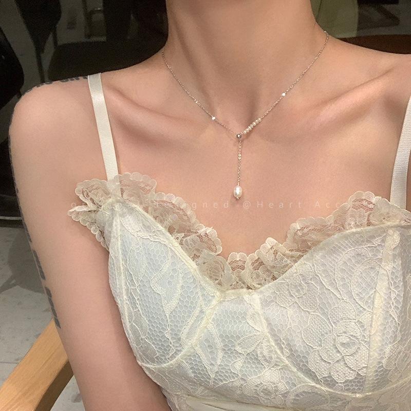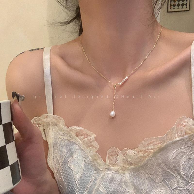 Collar con colgante de perlas de agua dulce para mujer, diseño de nicho de lujo ligero, cadena de clavícula de alta gama, cadena de cuello de lujo simple y retro.
