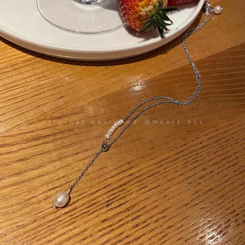Collar con colgante de perlas de agua dulce para mujer, diseño de nicho de lujo ligero, cadena de clavícula de alta calidad, cadena de cuello de lujo simple y retro.