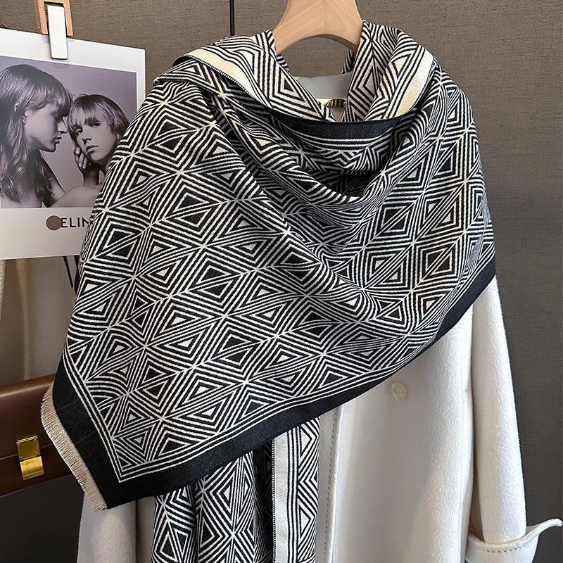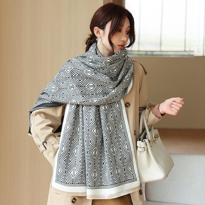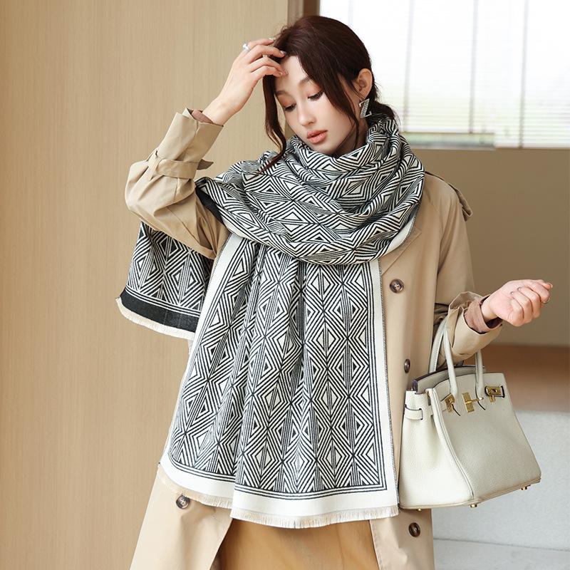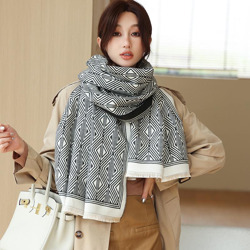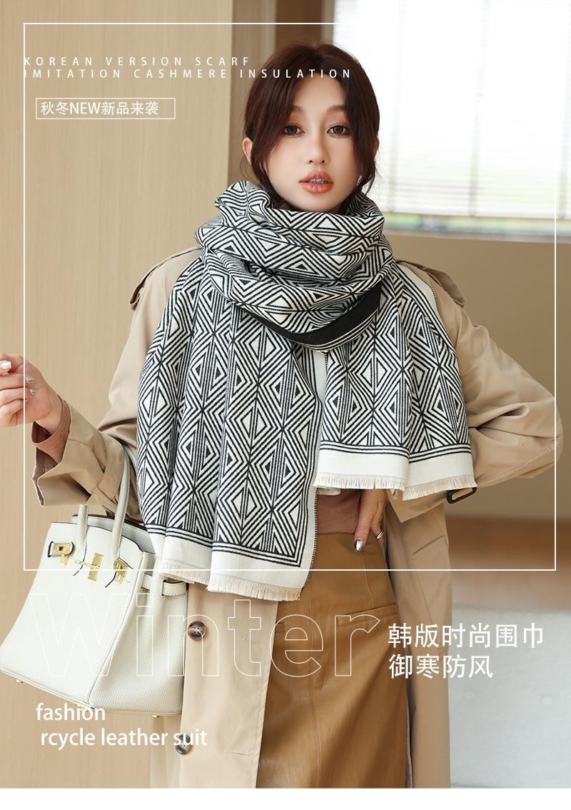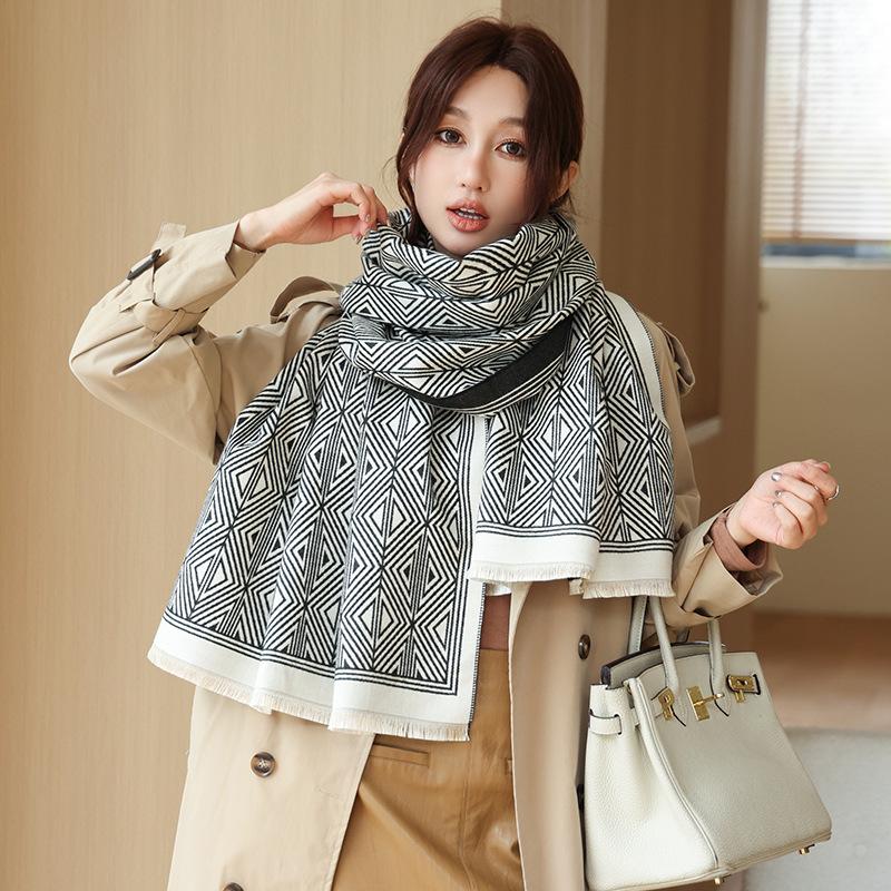 Bufanda de cachemira a cuadros estilo coreano para mujer, chal cálido de cuello para estudiantes, para invierno, 2023