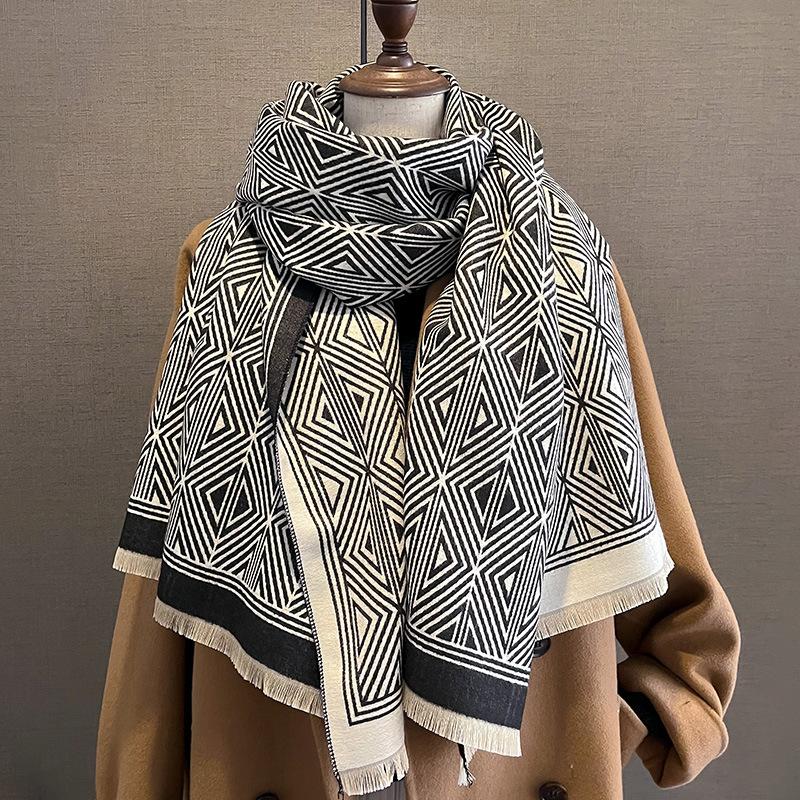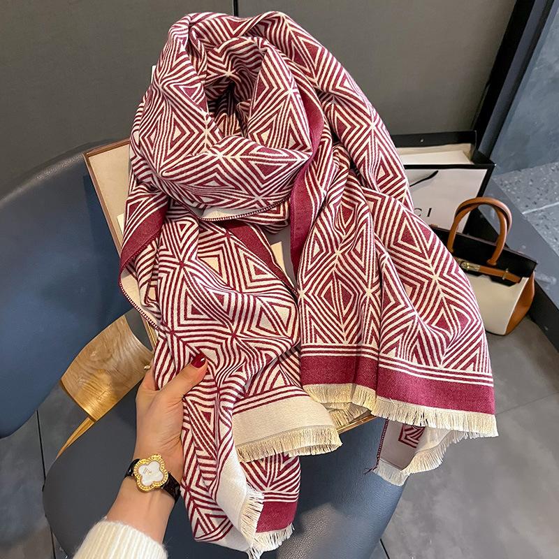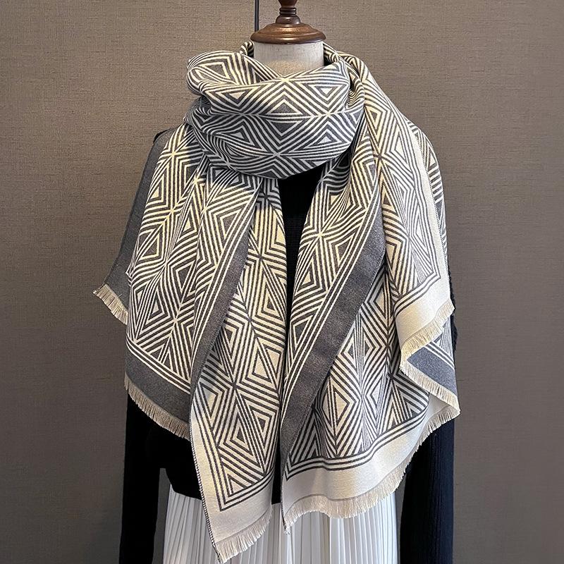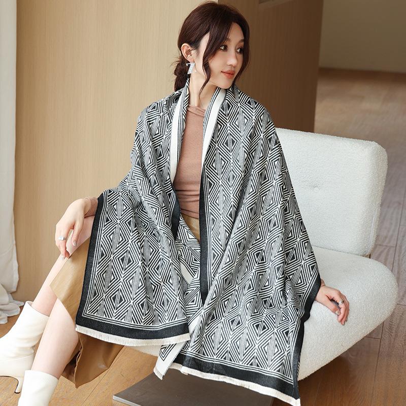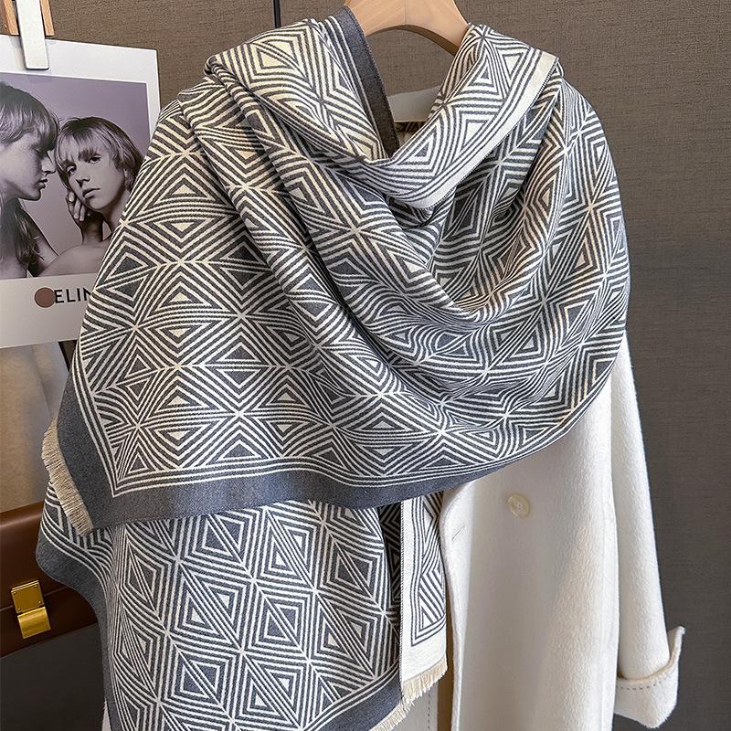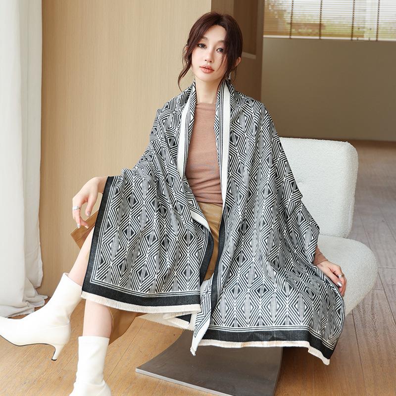 Bufanda de cachemira a cuadros estilo coreano para mujer, chal cálido de cuello para estudiantes, para invierno, 2023