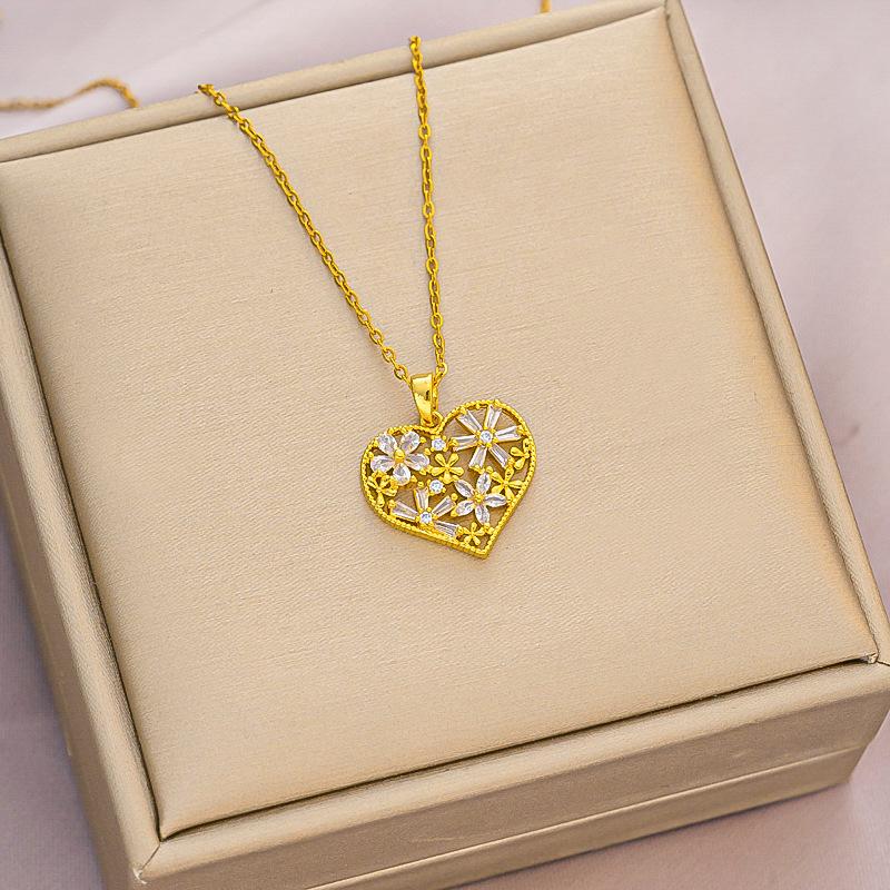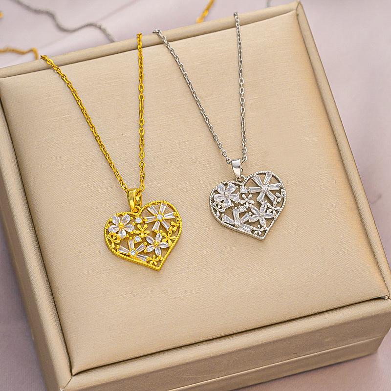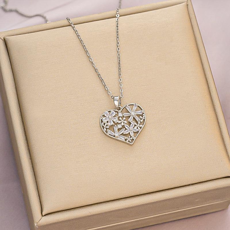 Collar popular de TikTok de amor transfronterizo europeo y americano de acero de titanio con circonita, moda simple para combinar con todo, cadena para clavícula, venta al por mayor de fábrica
