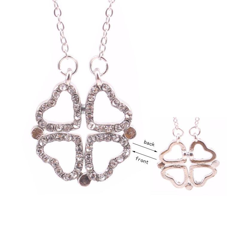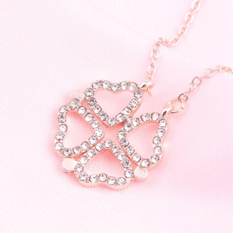 Collar de trébol de cuatro hojas con microincrustaciones en forma de corazón de moda coreana, cuatro en uno, collar de clavícula de dos usos, al por mayor