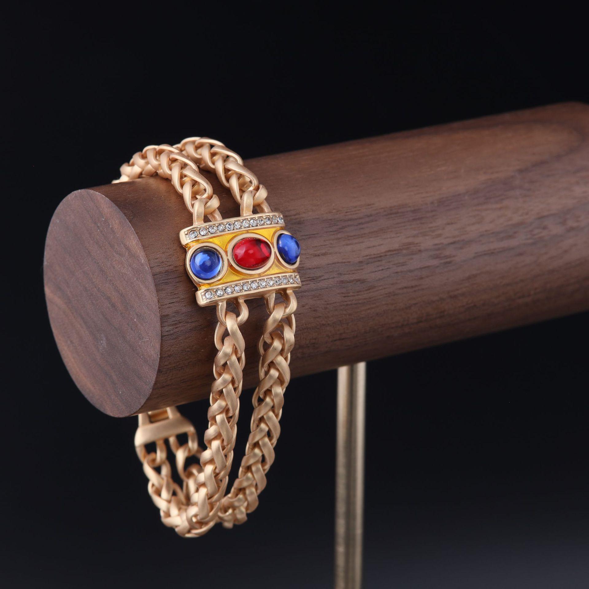 Pulsera Medieval Vintage de Doble Capa Elegante de Alta Gama Cadena Simple Retro Cabujón de Vidrio Fábrica de Qingdao