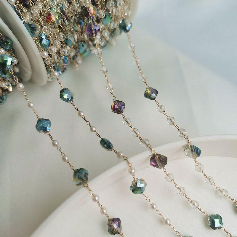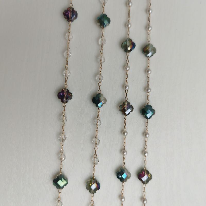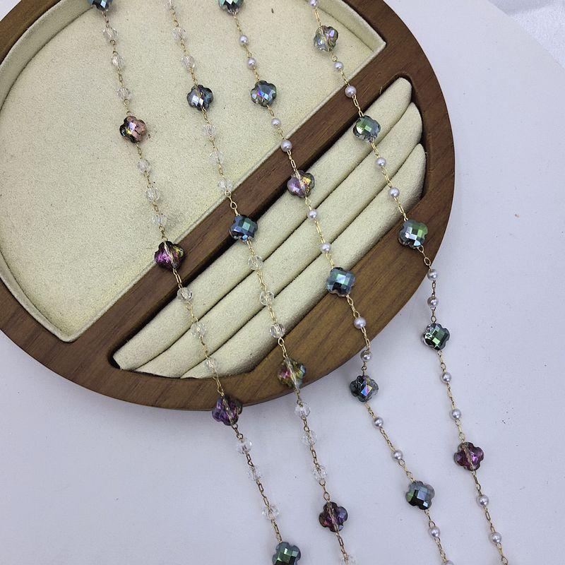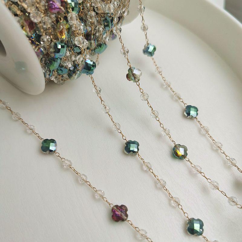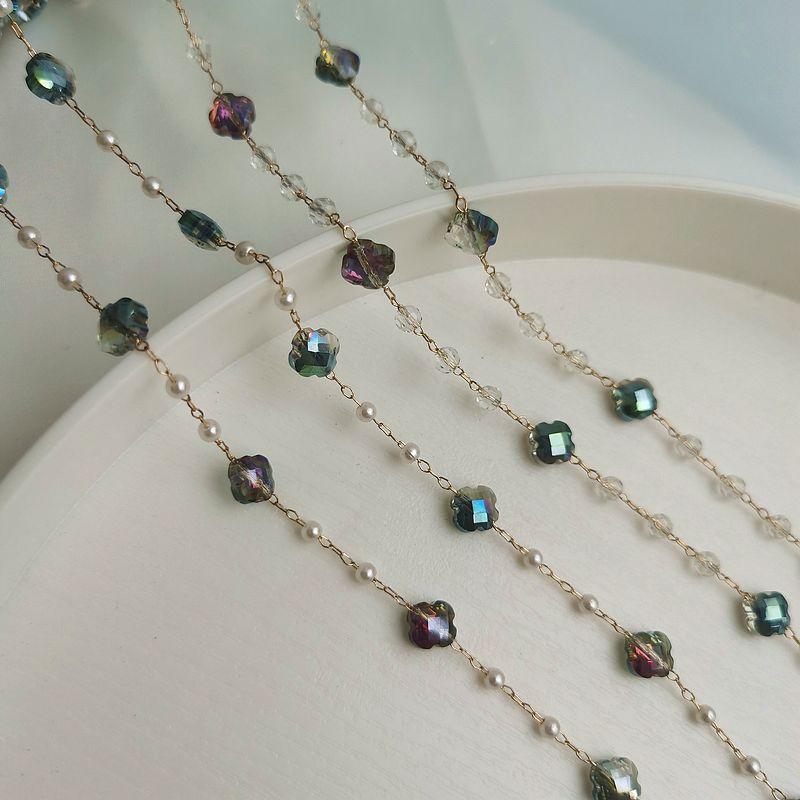 Cadena de retención de color DIY, trébol de cuatro hojas, combinación de perlas de cristal, collar de cadena hecho a mano, horquilla para el cabello, accesorios de diseño de escenario para disfraz