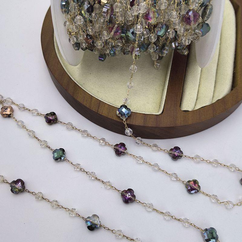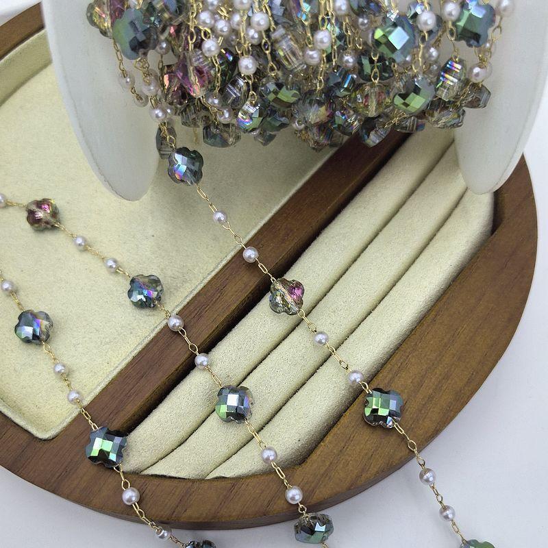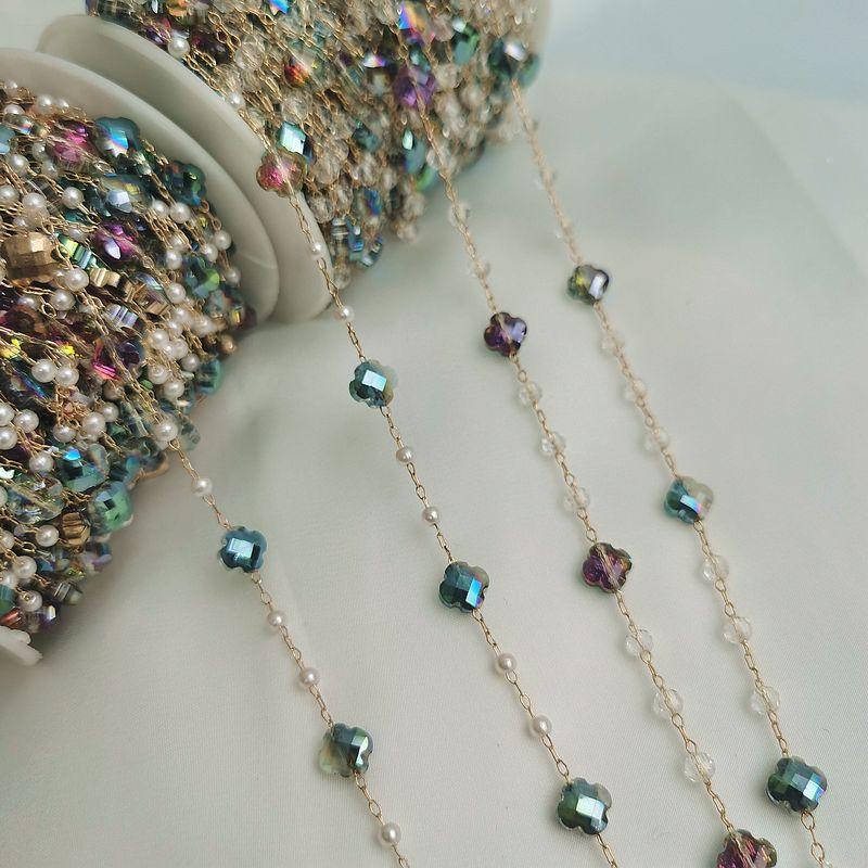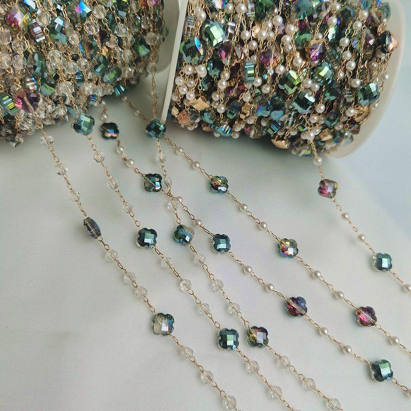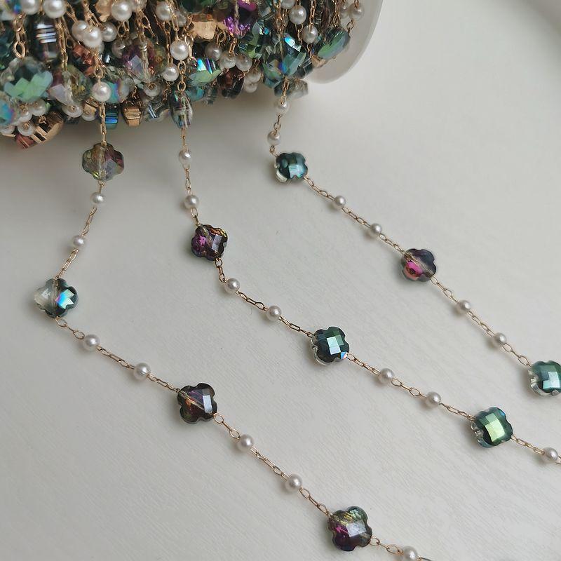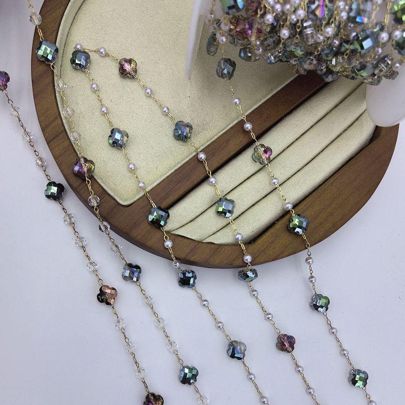 Cadena de retención de color DIY, trébol de cuatro hojas, combinación de perlas de cristal, collar de cadena hecho a mano, horquilla para el cabello, accesorios de diseño de escenario para disfraz