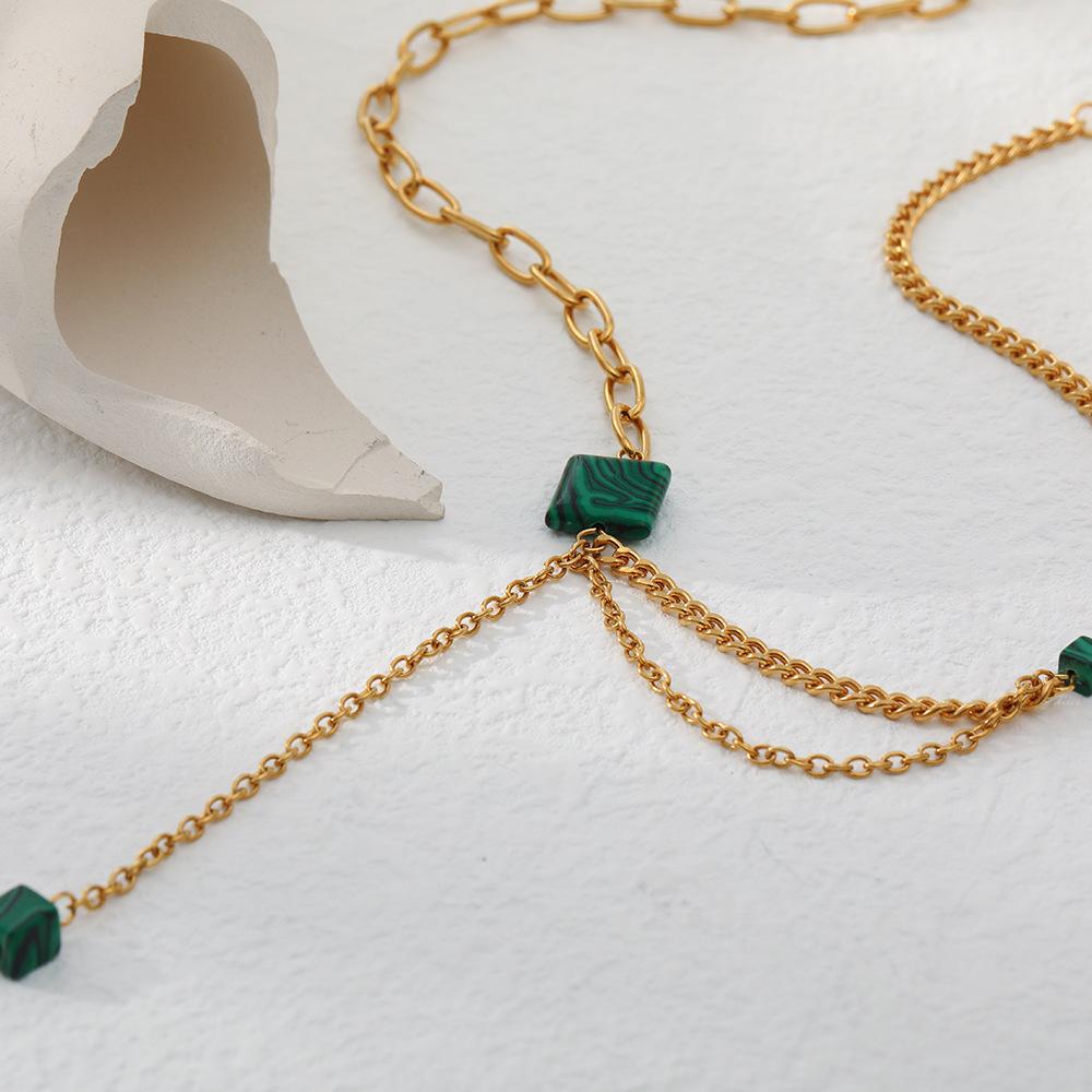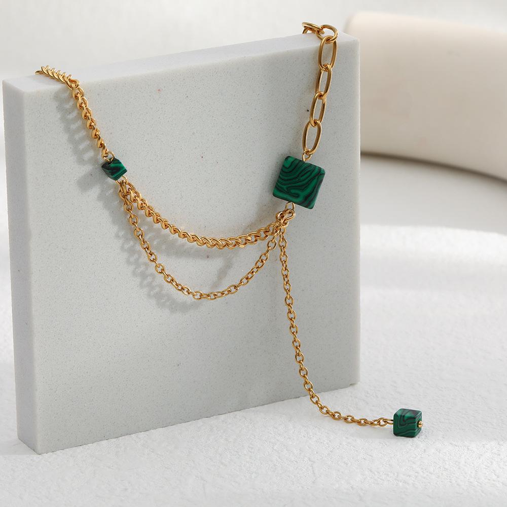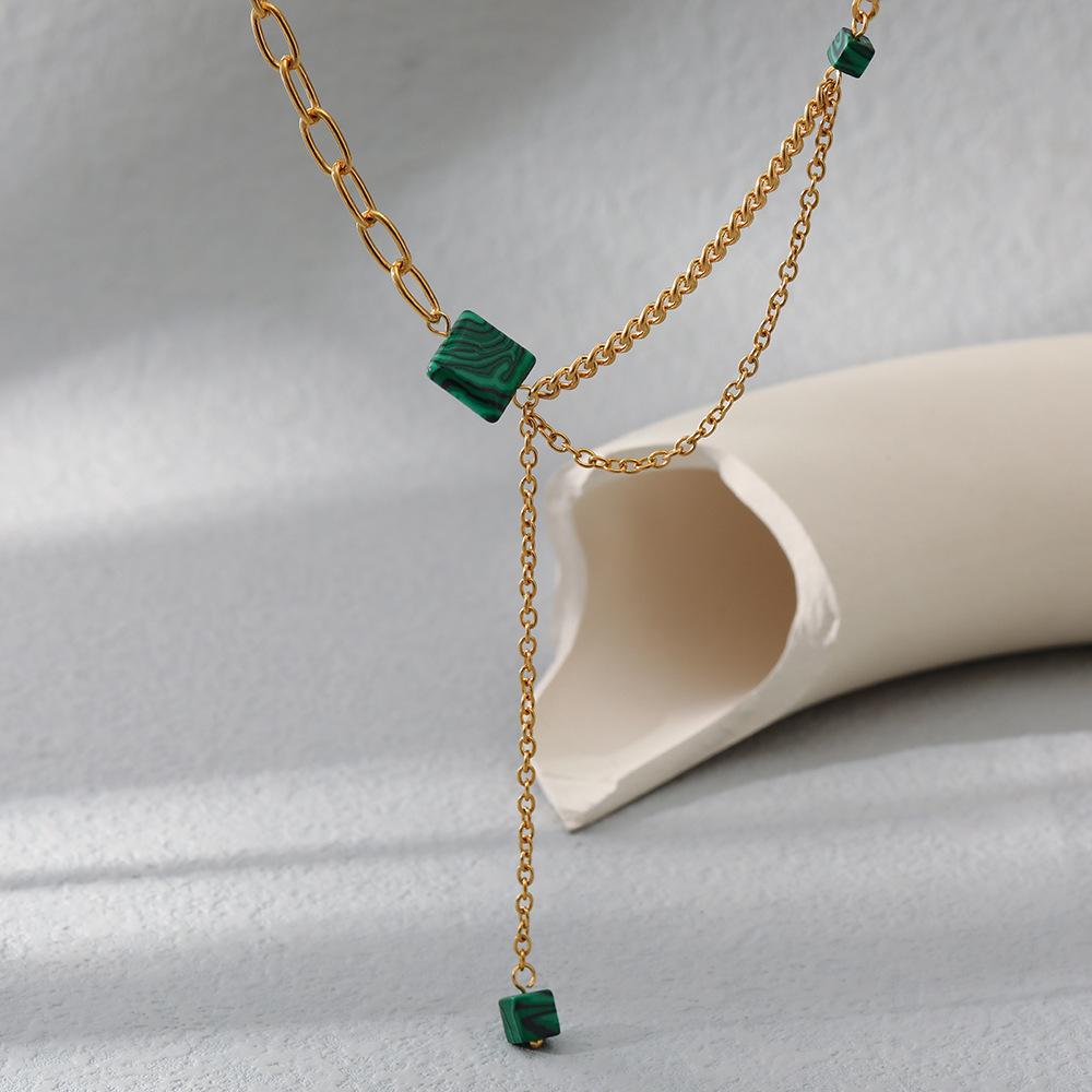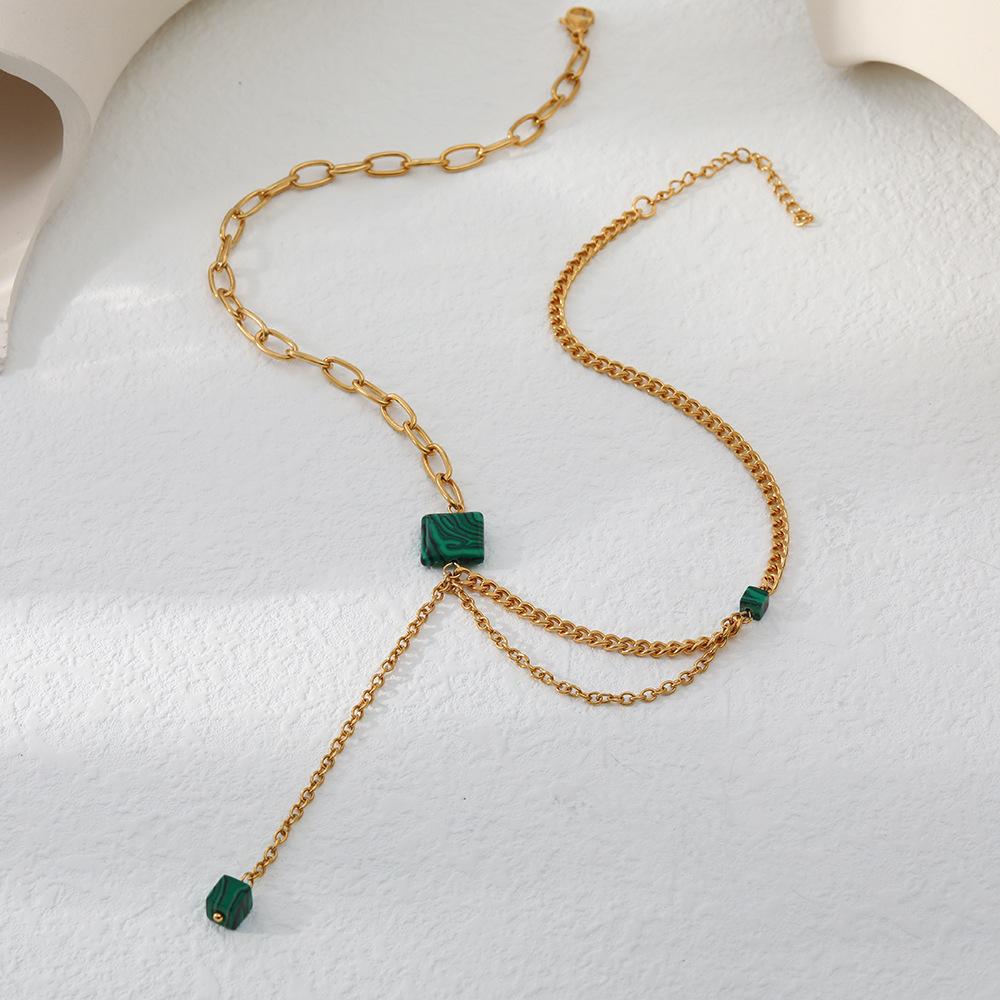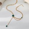 Cadena de acero inoxidable personalizada con borlas de oro auténtico, estilo 2023, sencilla, con piedra natural verde, para fotógrafo callejero, joyería para mujer