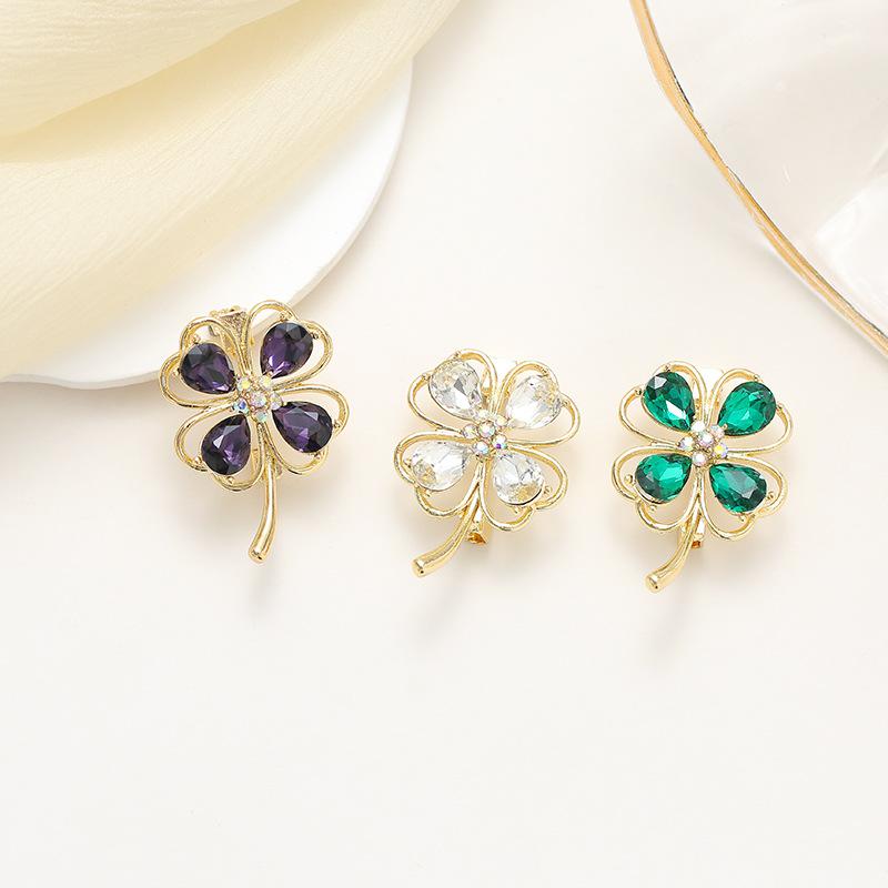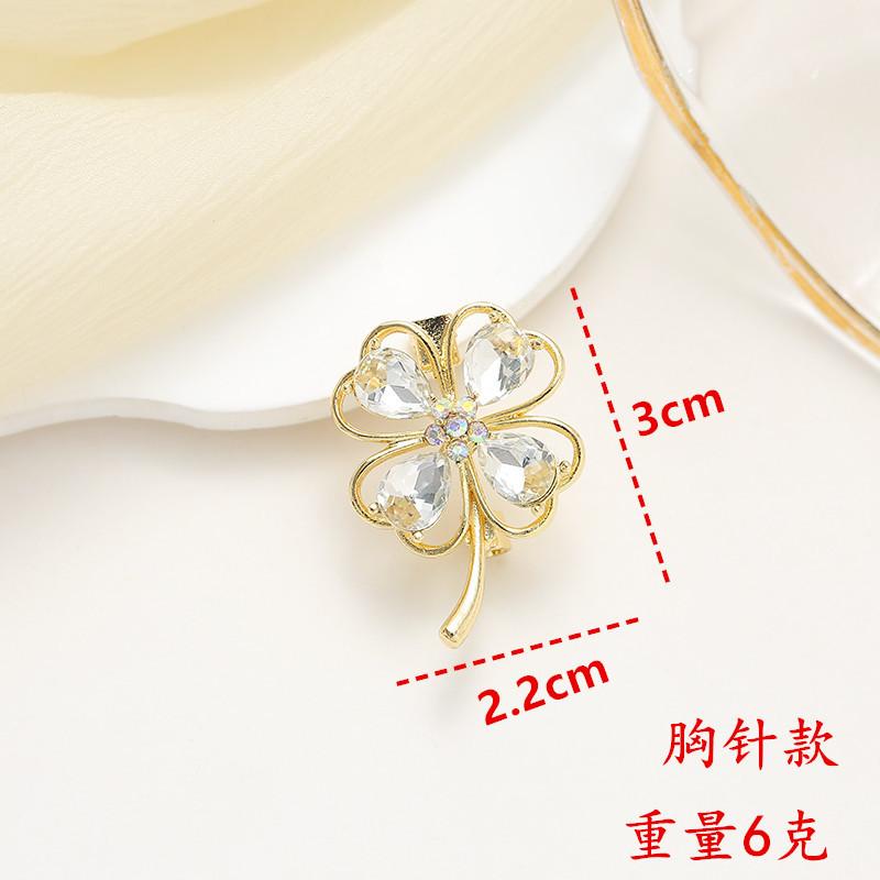 Broche de Zircón de Moda Estilo Coreano con un Diseño Único, Pin Pequeño de Trébol de Cuatro Hojas Incrustado con Diamantes de Lujo Ligero, Accesorio de Hebilla Anti-Exposición para Mujeres