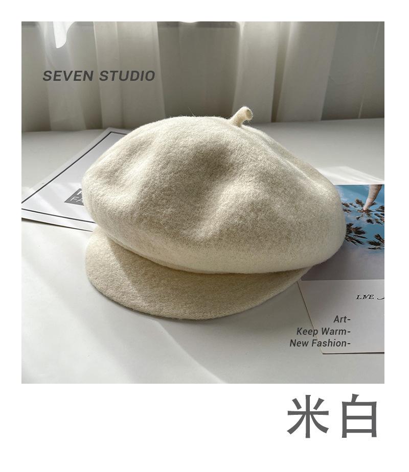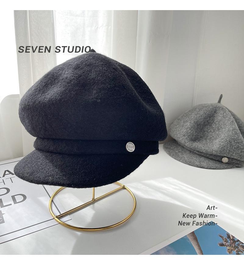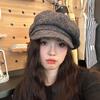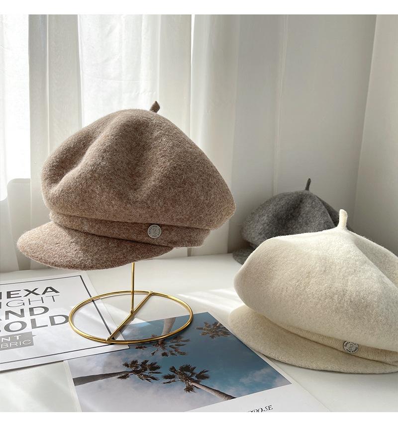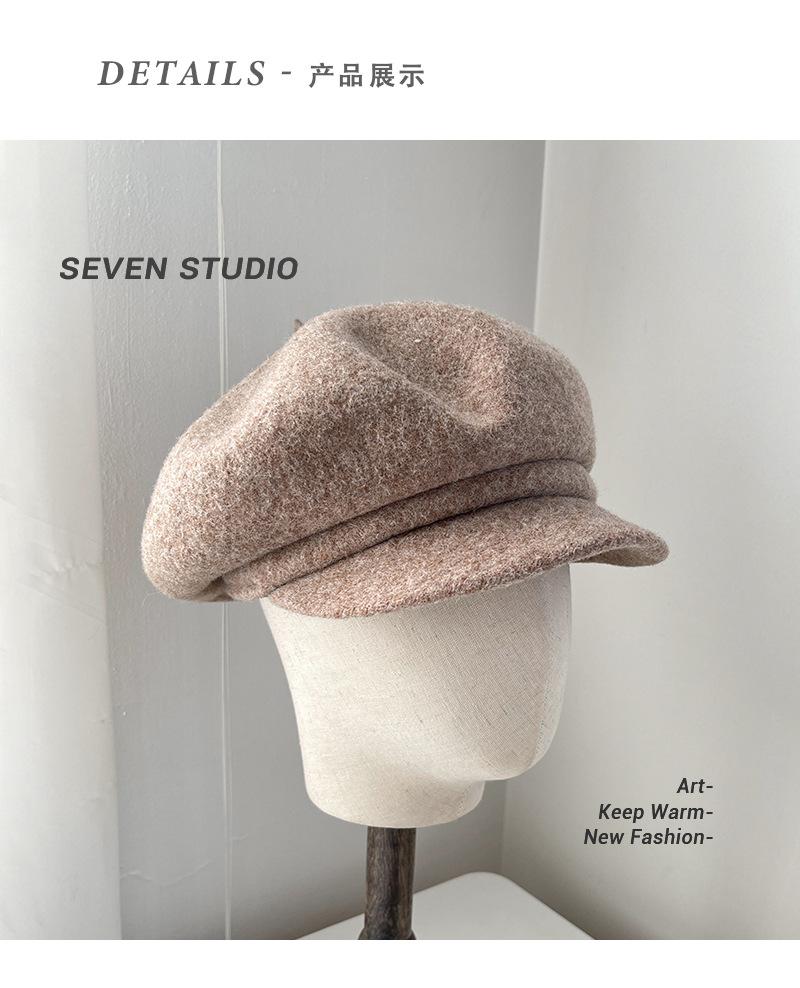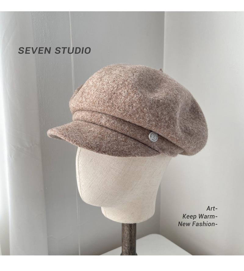 Sombrero octogonal de lana cálido de otoño e invierno para mujer, boina retro japonesa con visera que hace que la cara parezca pequeña, color sólido, sombrero de repartidor que combina con todo