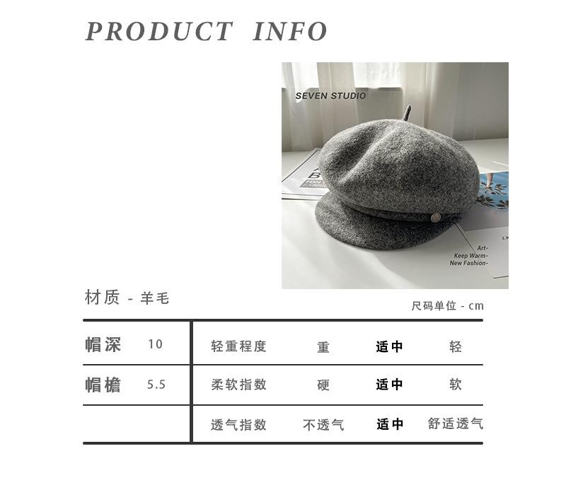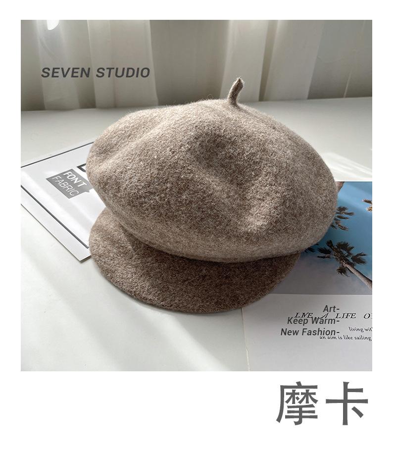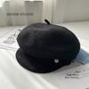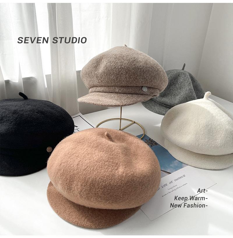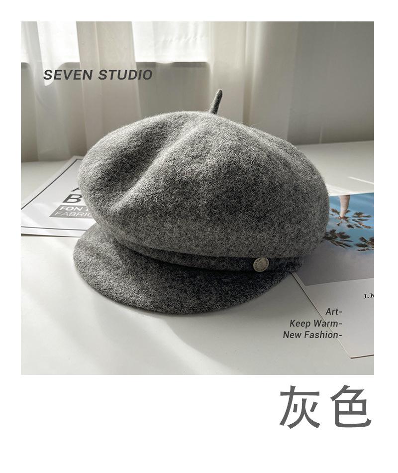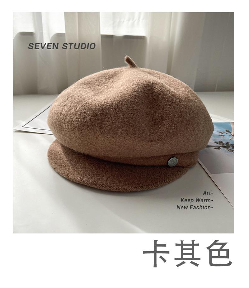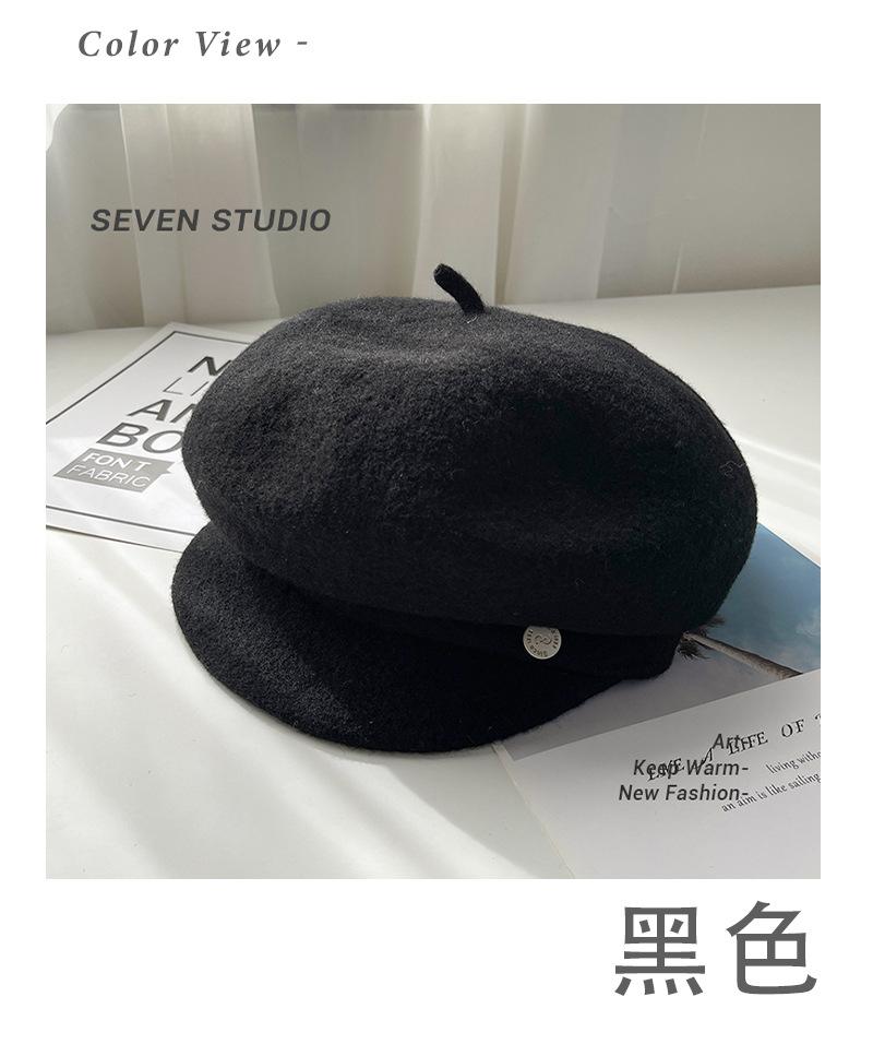 Sombrero octogonal de lana cálido de otoño e invierno para mujer, boina retro japonesa con visera que hace que la cara parezca pequeña, color sólido, sombrero de repartidor que combina con todo