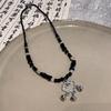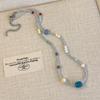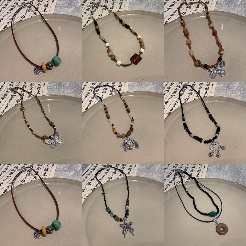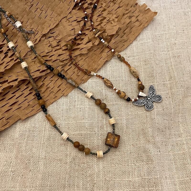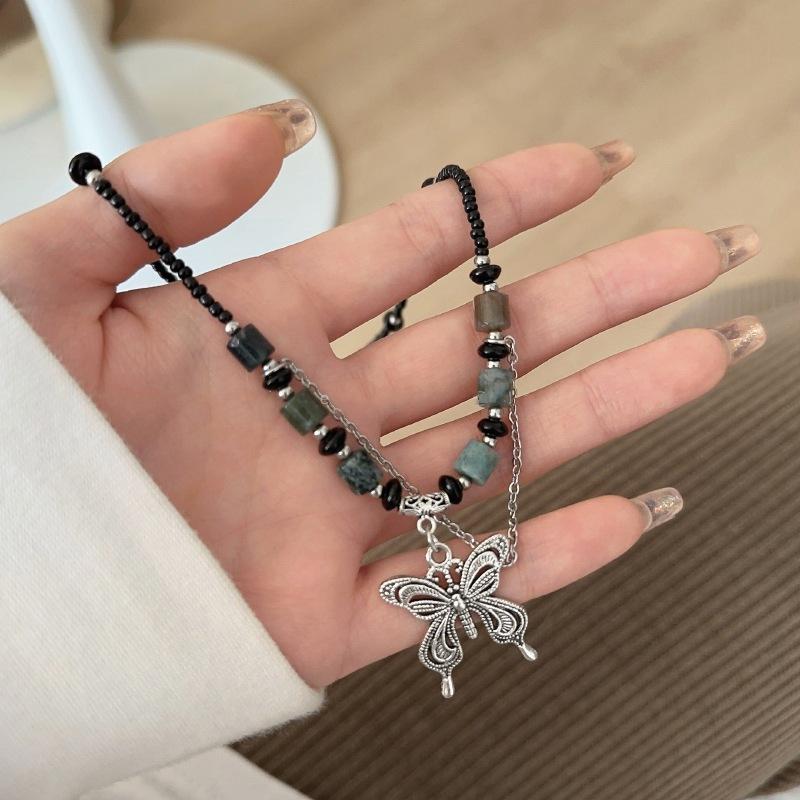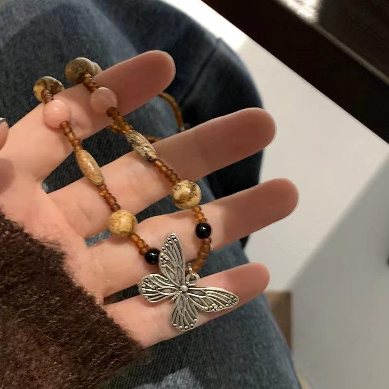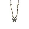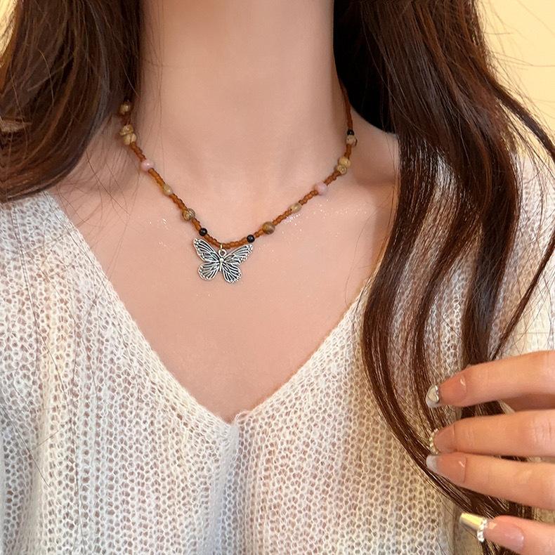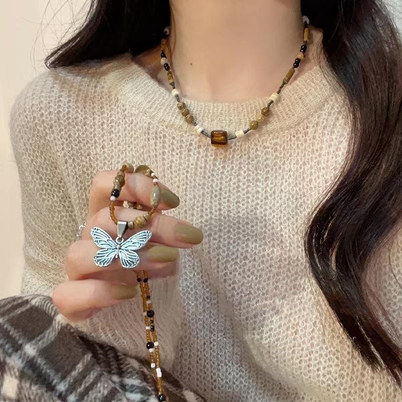 Collar largo de moda retro con colgante de mariposa de cuentas de arroz de agua natural, pequeña cadena para clavícula de internet red, collar de alta gama para mujer