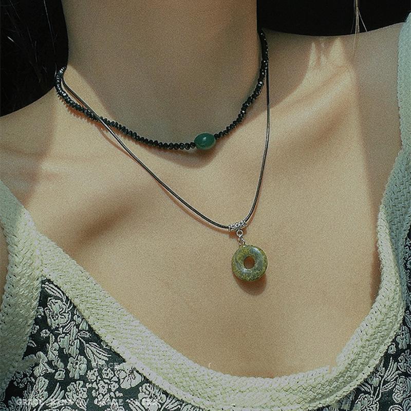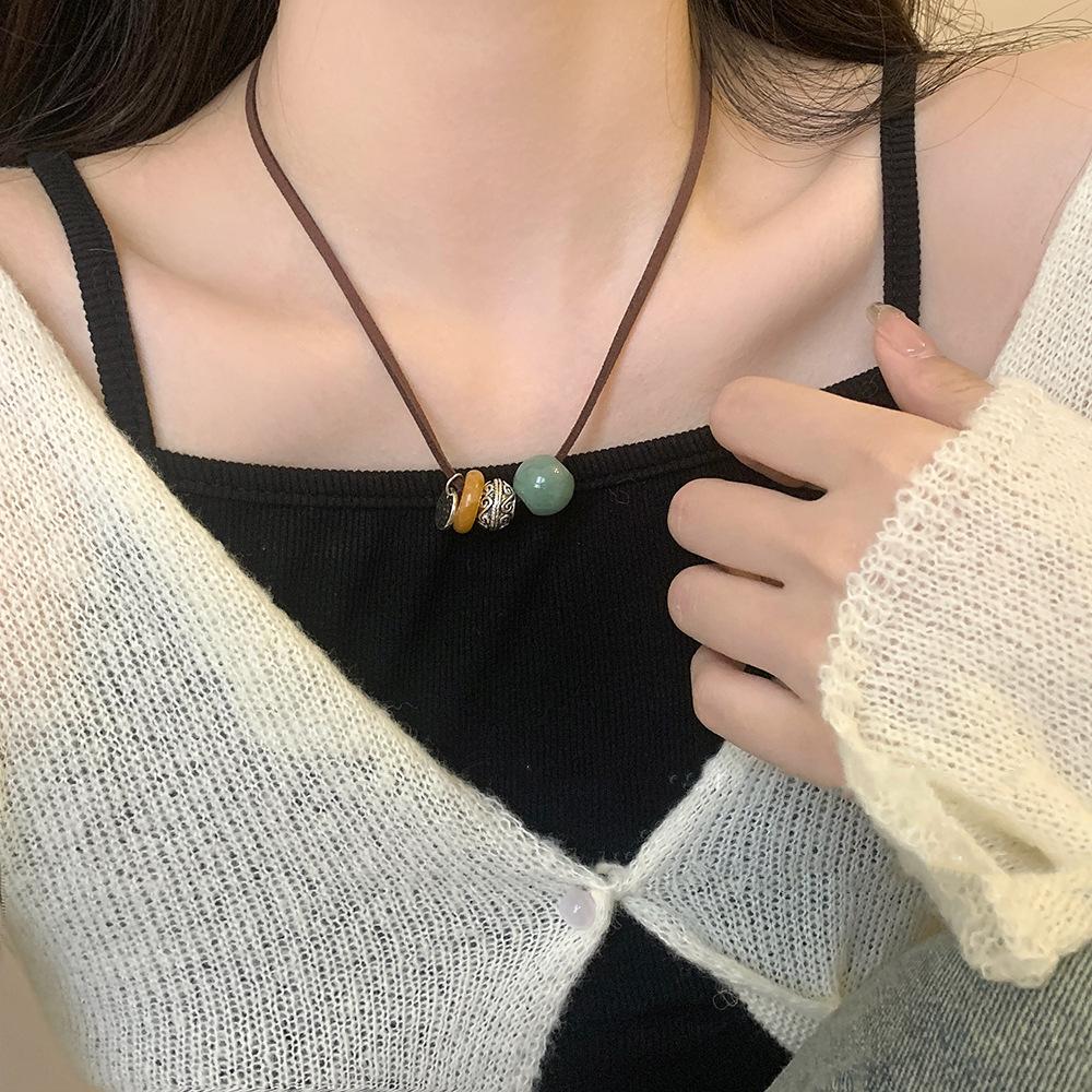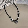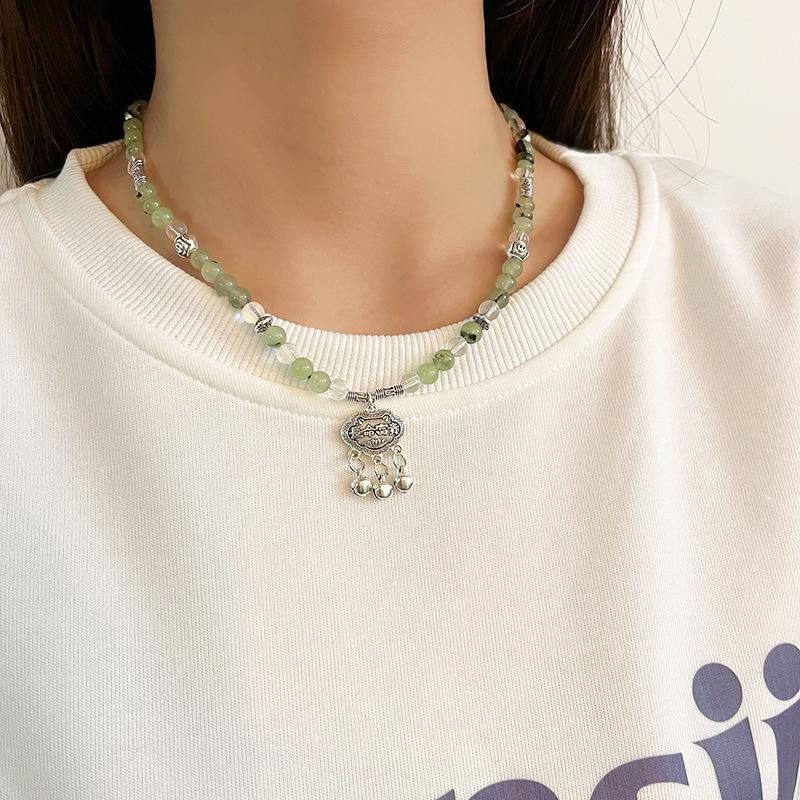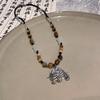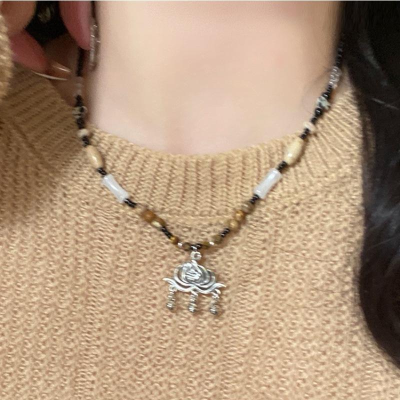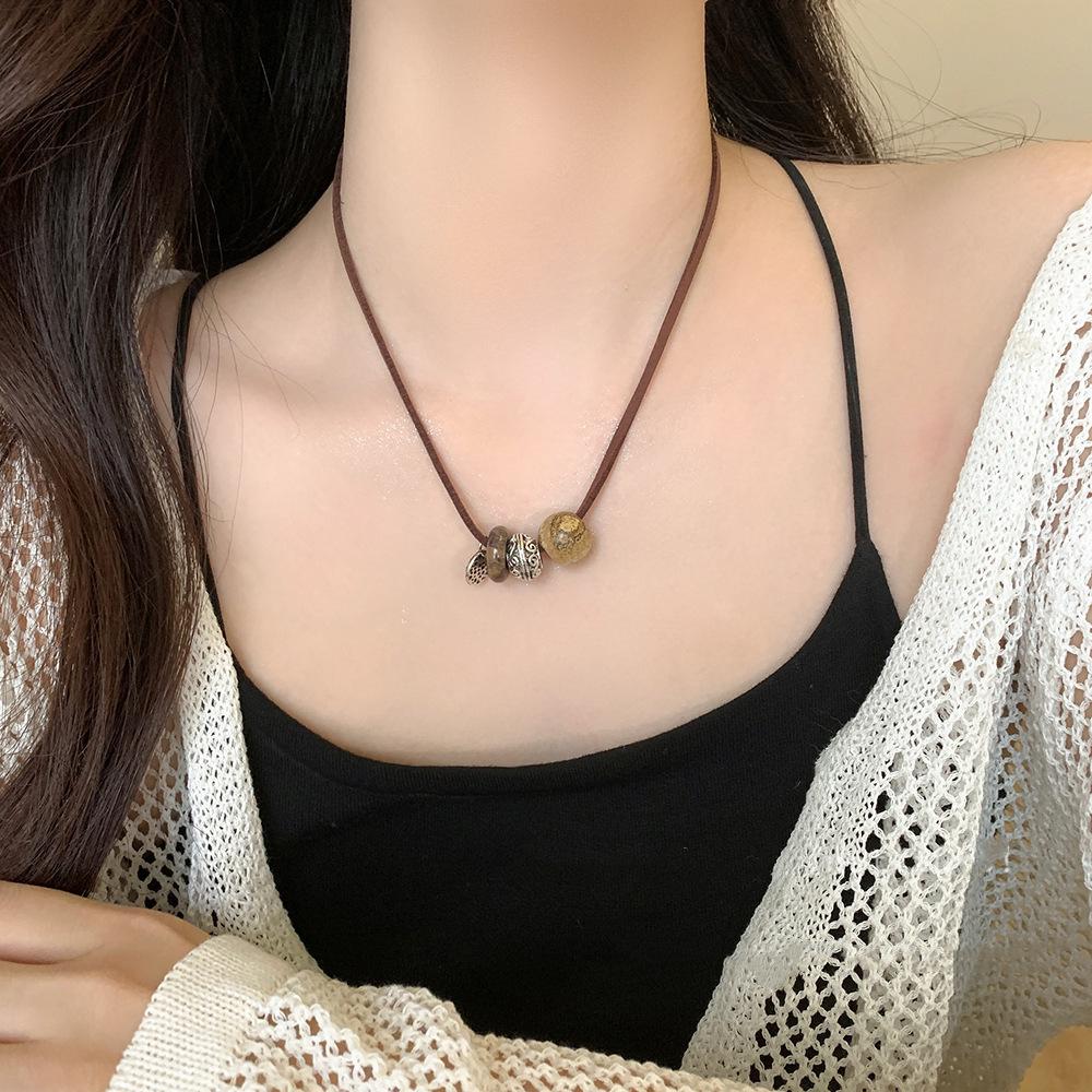 Collar largo de moda retro con colgante de mariposa de cuentas de arroz de agua natural, pequeña cadena para clavícula de internet red, collar de alta gama para mujer