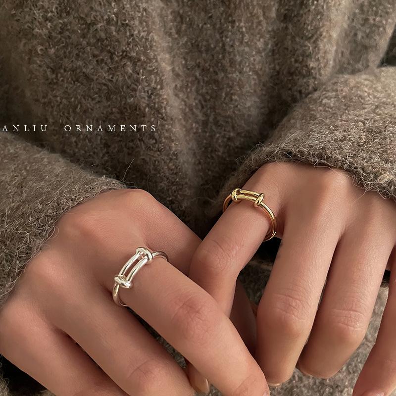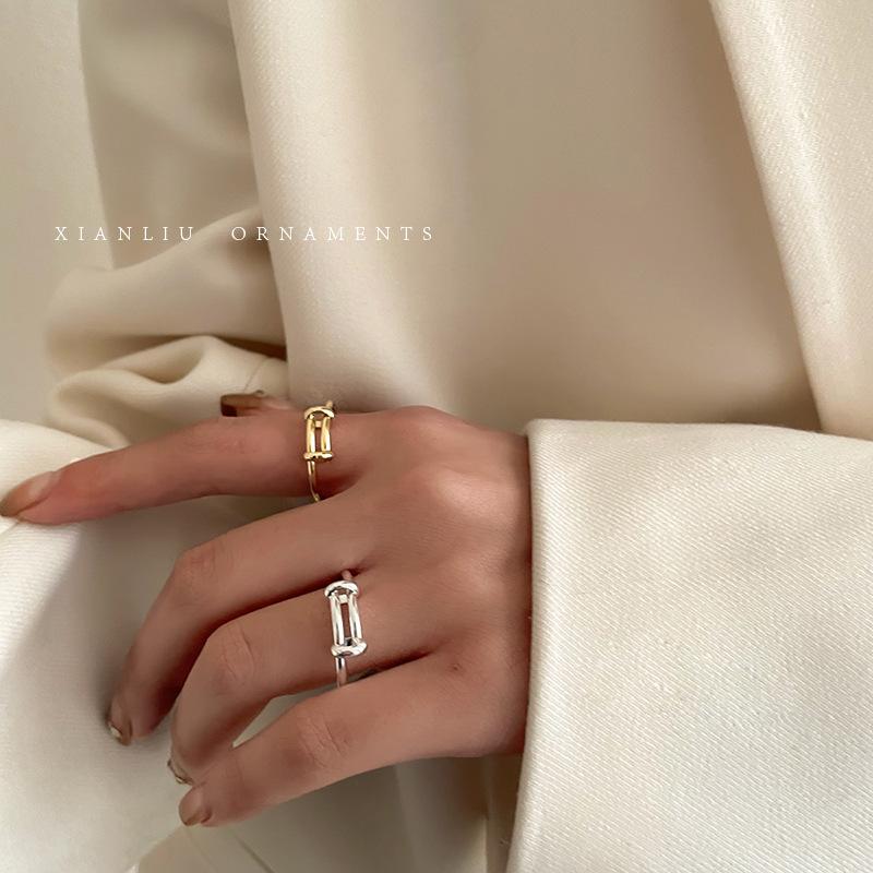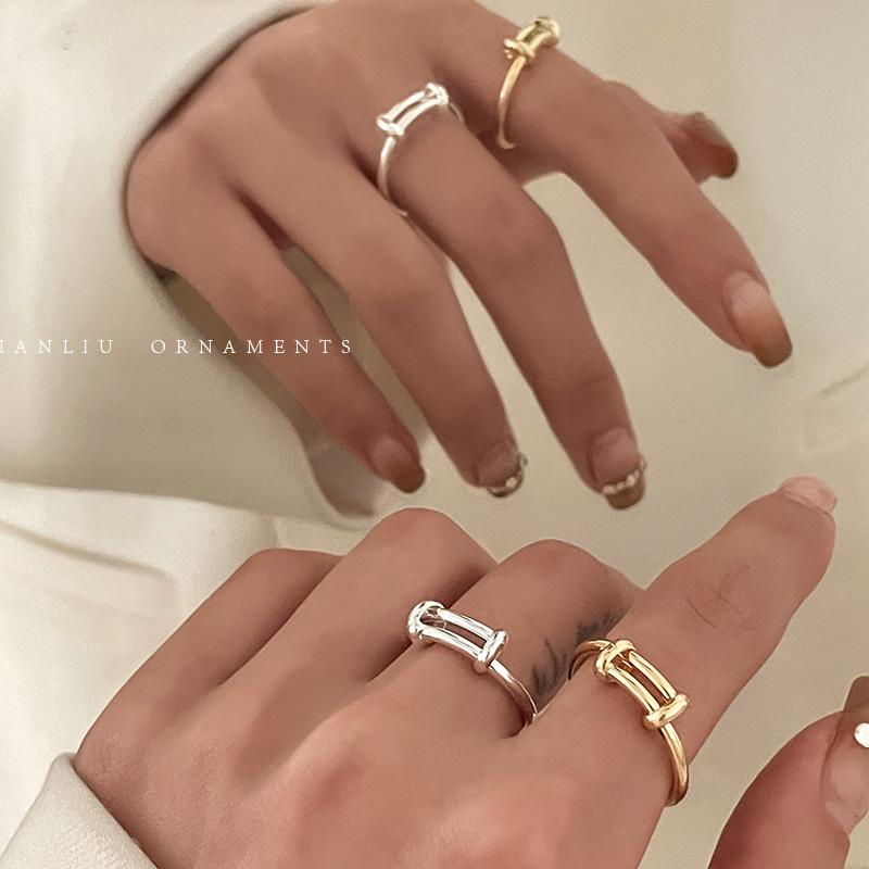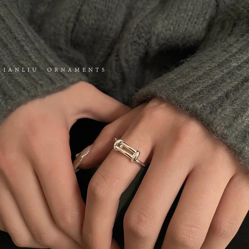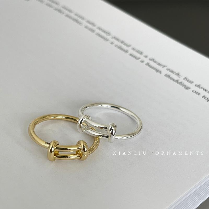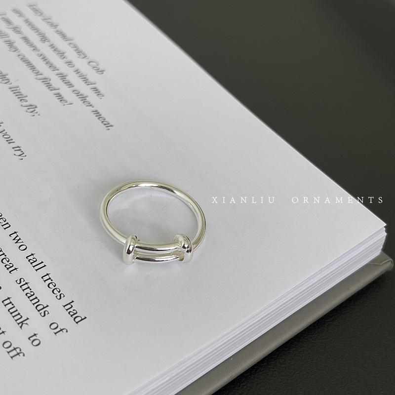 Anillo Sencillo Push-Pull de Plata S925 Japonesa y Coreana para Mujer, Anillo de Pin de Moda Retro Distintivo Hip-Hop Creativo, Anillo de Dedo a la Moda