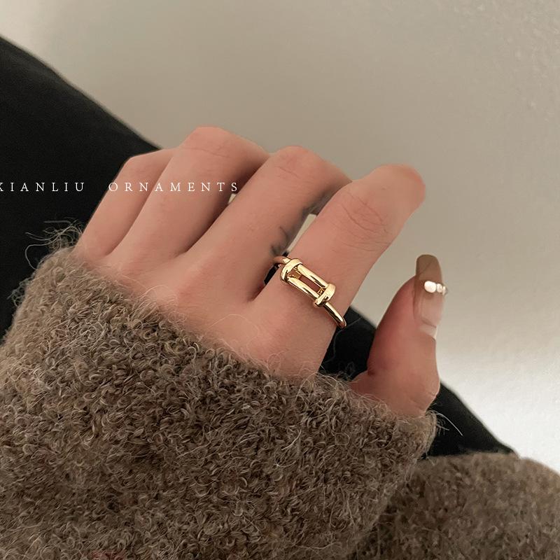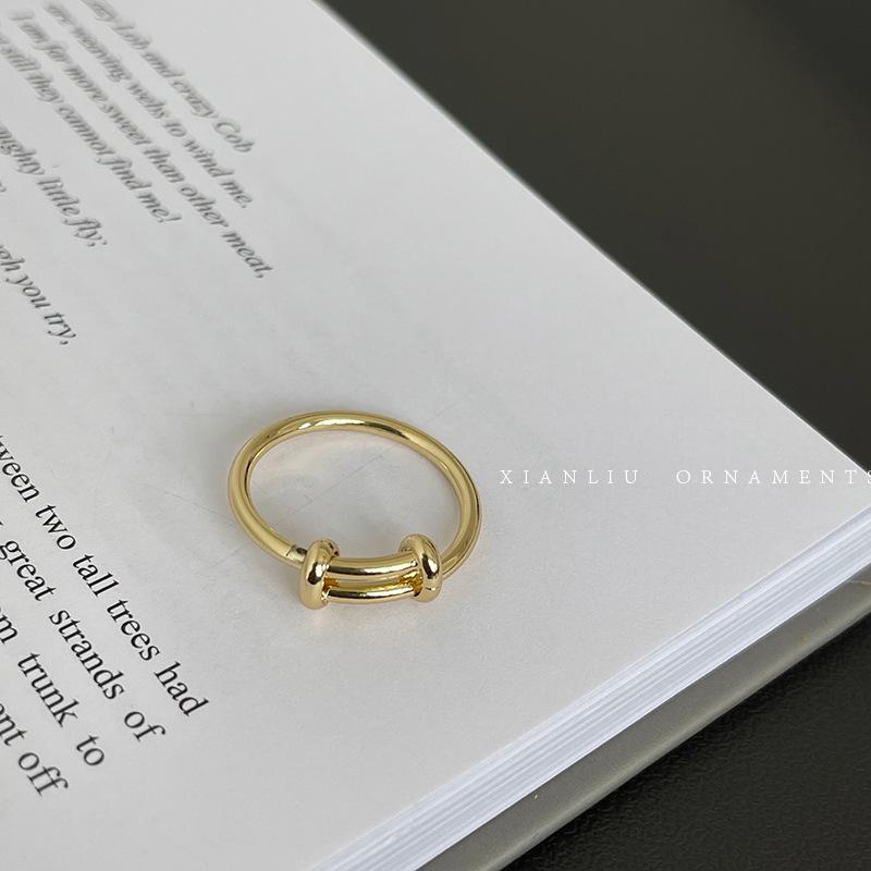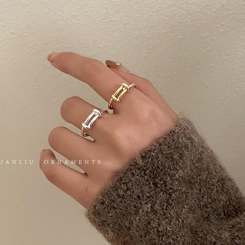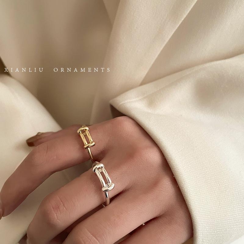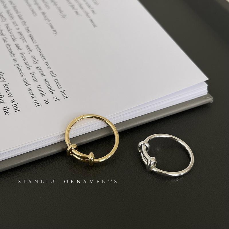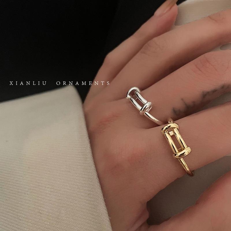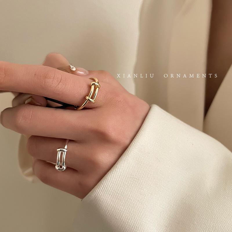 Anillo Sencillo Push-Pull de Plata S925 Japonesa y Coreana para Mujer, Anillo de Pin de Moda Retro Distintivo Hip-Hop Creativo, Anillo de Dedo a la Moda