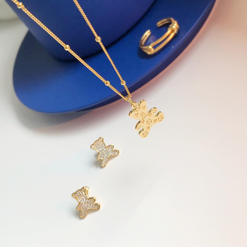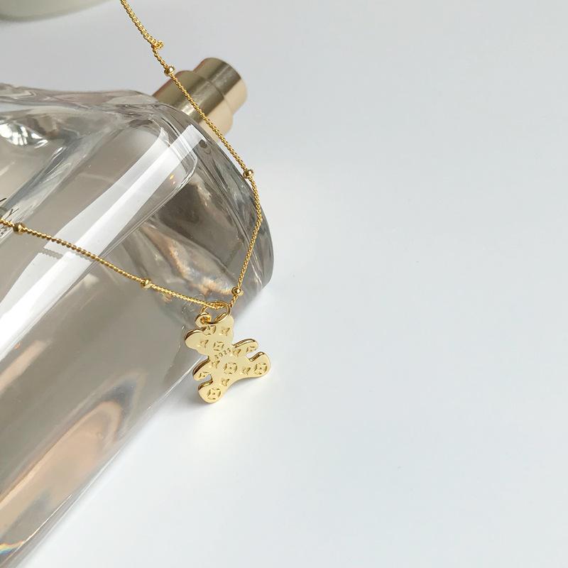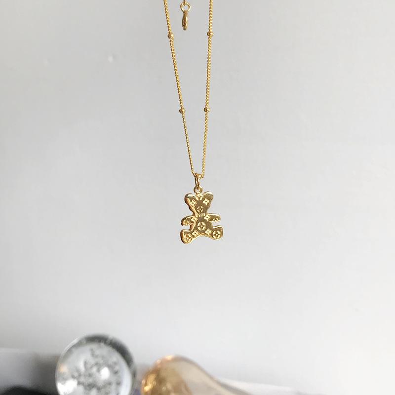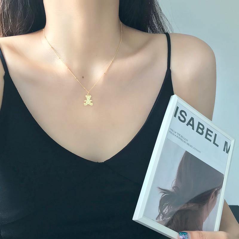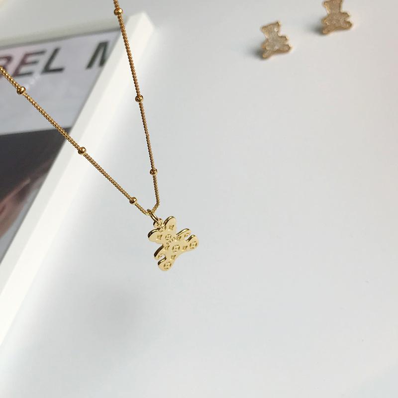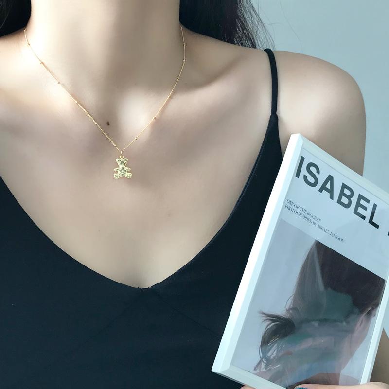 Kaset Plata S925 Estilo Coreano Estilo ins Elegante Moda Oso Impreso Oso Collar Distintivo Collar