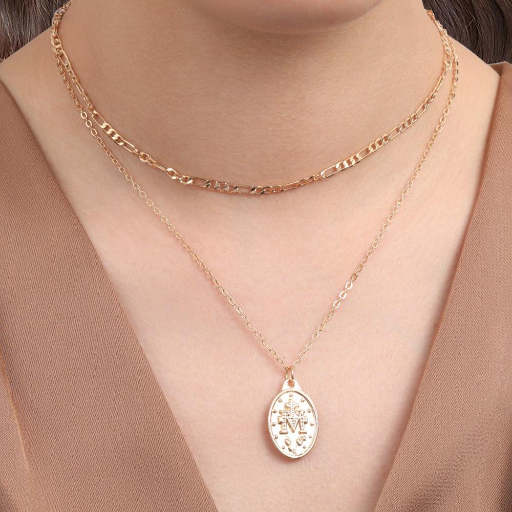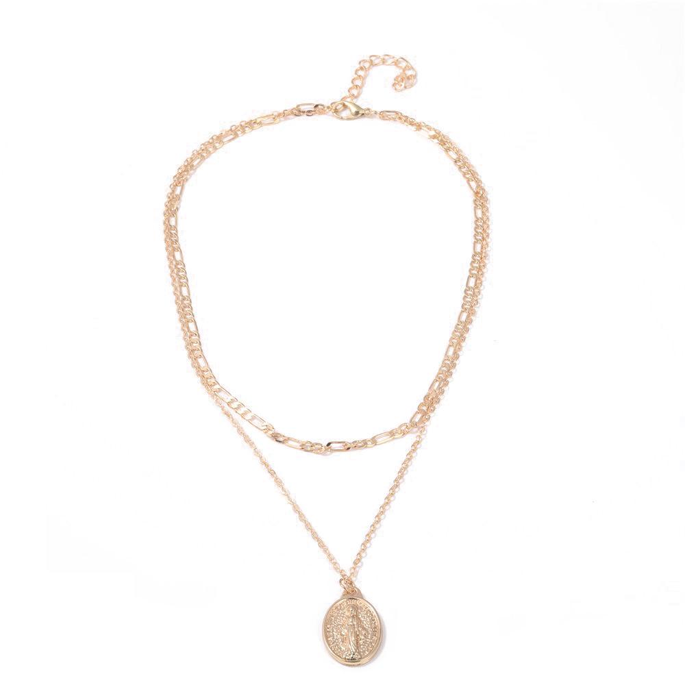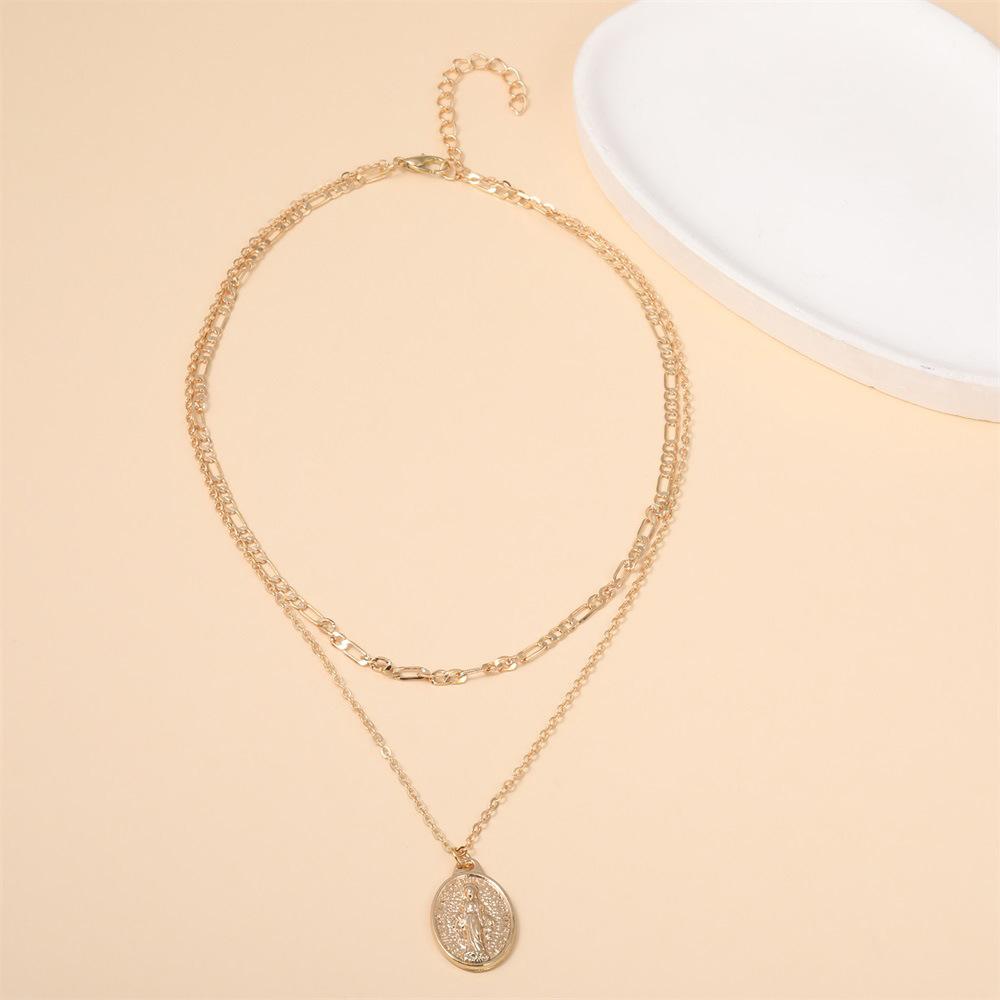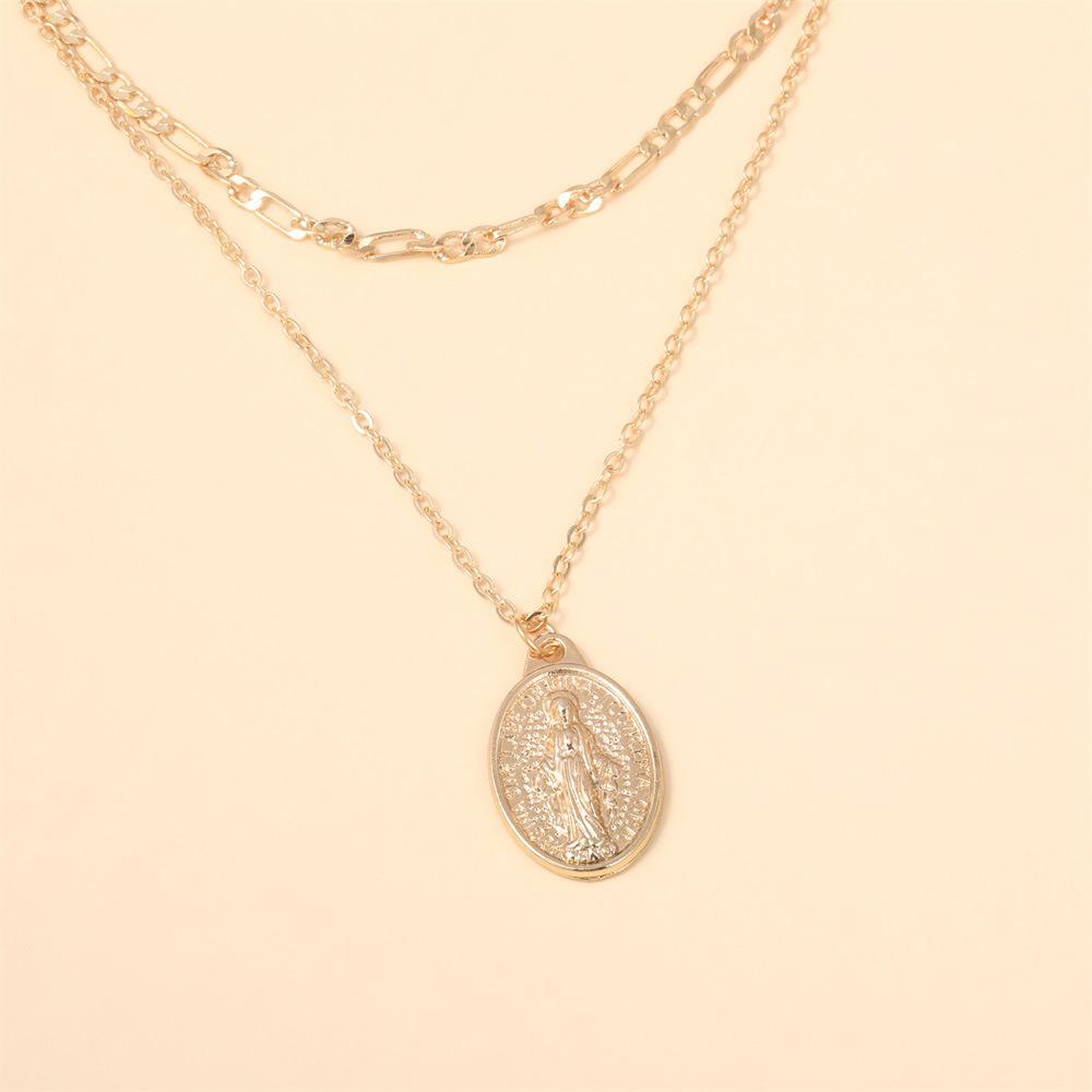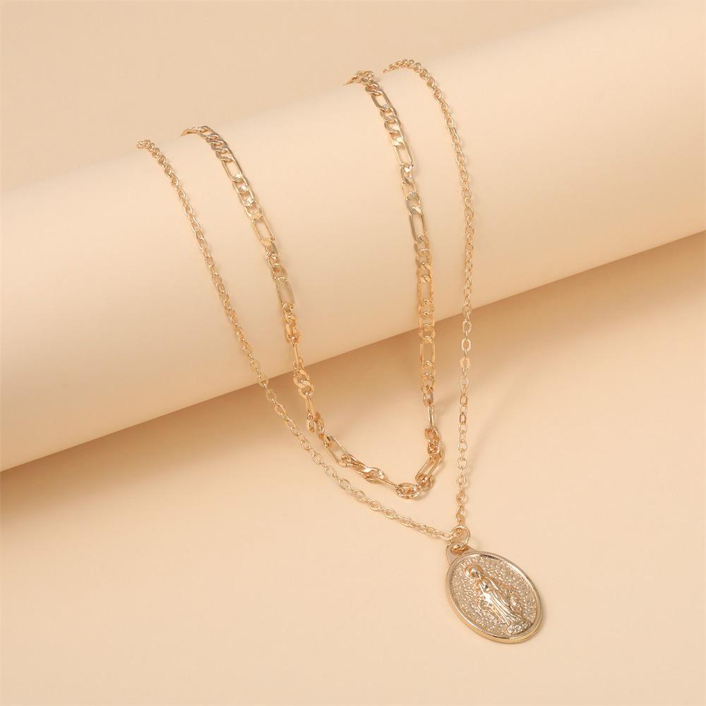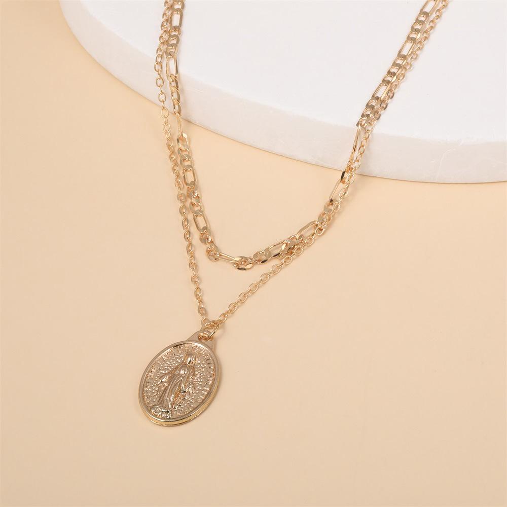 Collar de personalidad caliente de comercio exterior transfronterizo, collar de moda con colgante de Jesús, collar de doble capa ajustable de aleación al por mayor