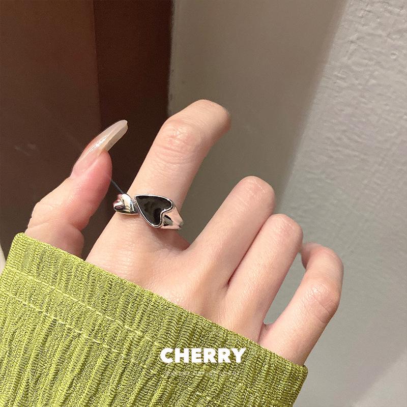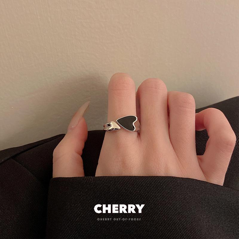 Anillo de amor a juego de colores para mujer, moda retro, personalidad, plata S925, forma de corazón, anillo abierto, hip hop, creativo, anillo para dedo, tendencia