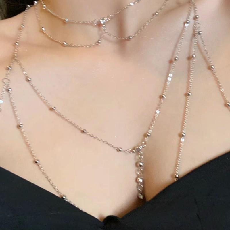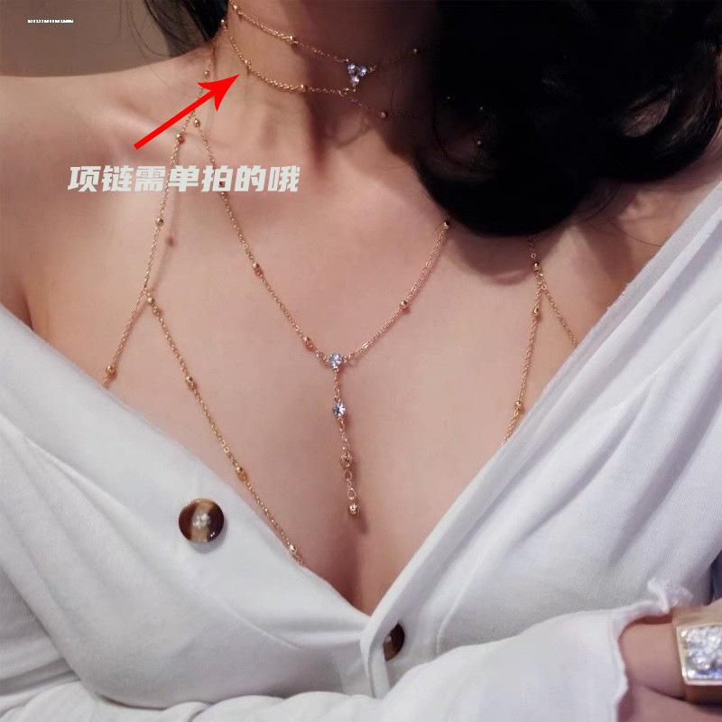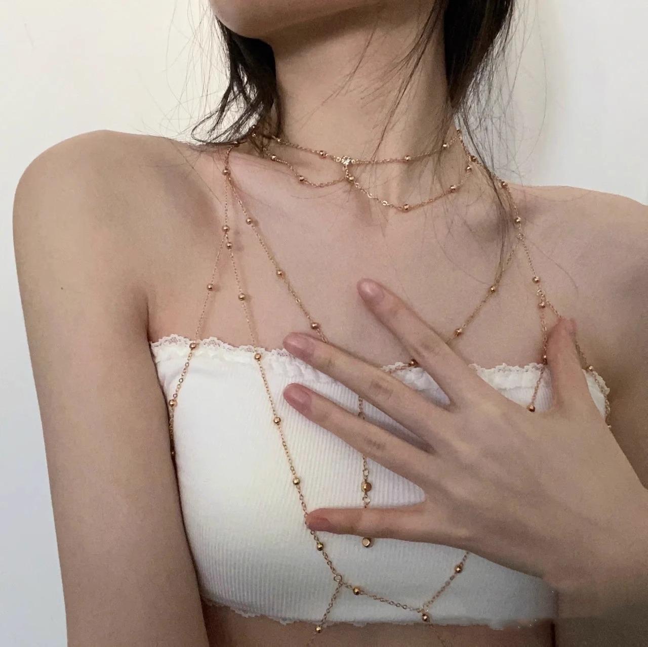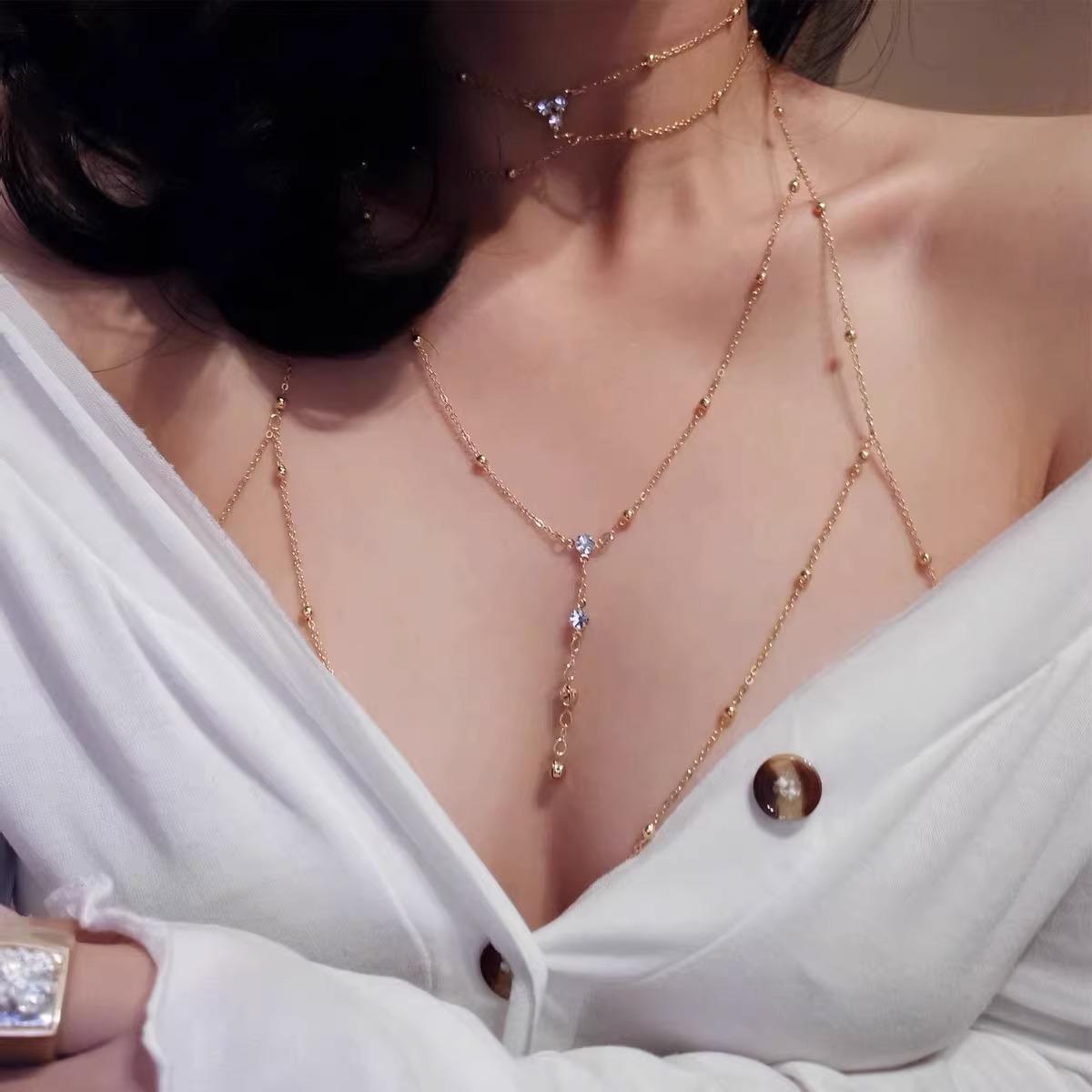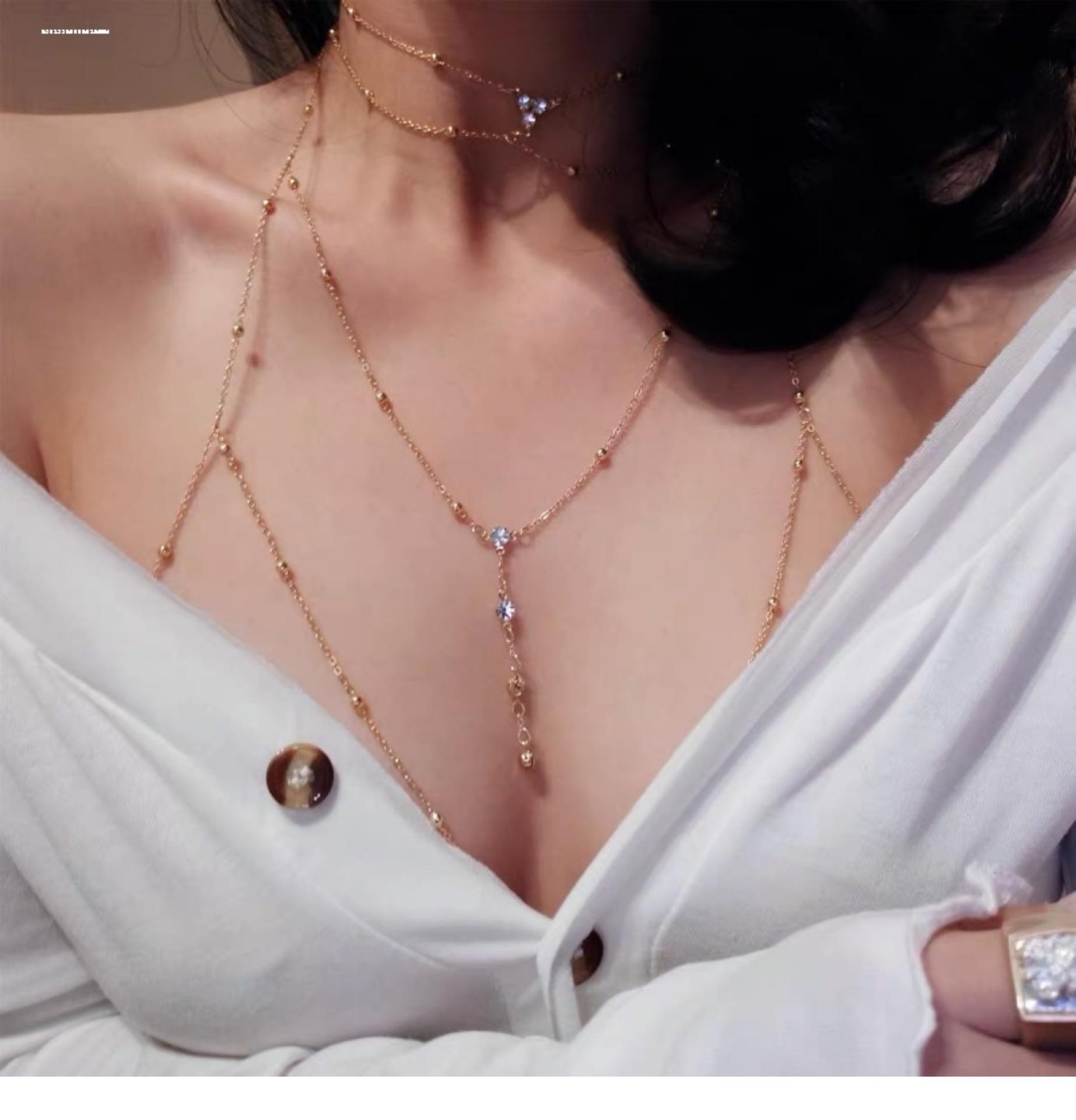 Cadena para el pecho con alta conservación del color, cadena para el cuerpo, bikini sexy europeo y americano, cadena para la espalda tridimensional sin espalda