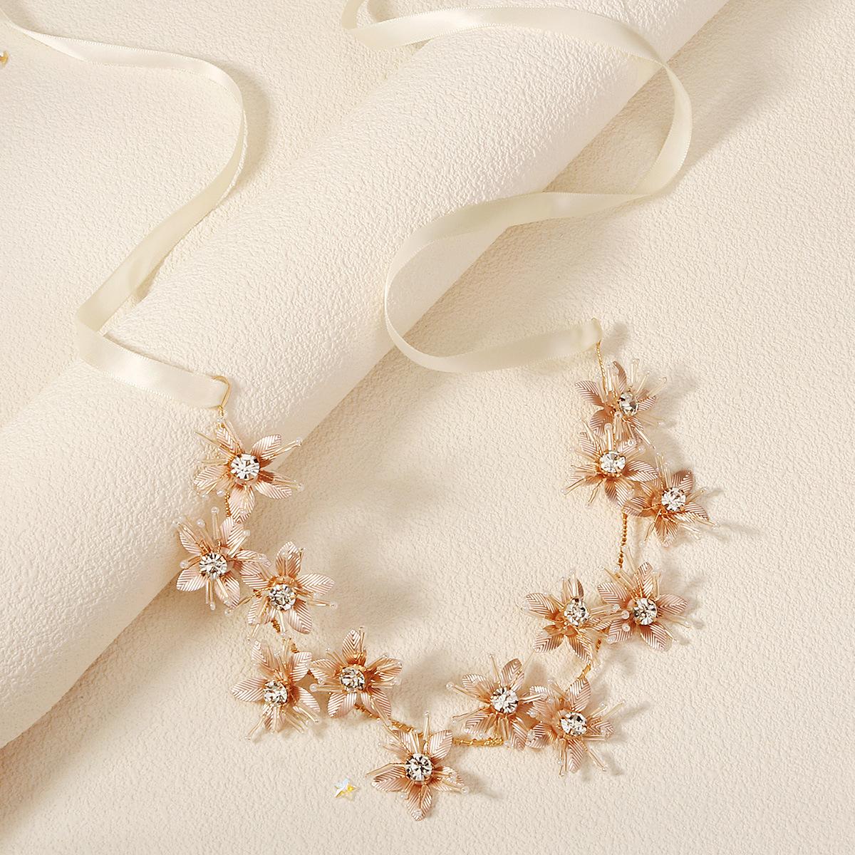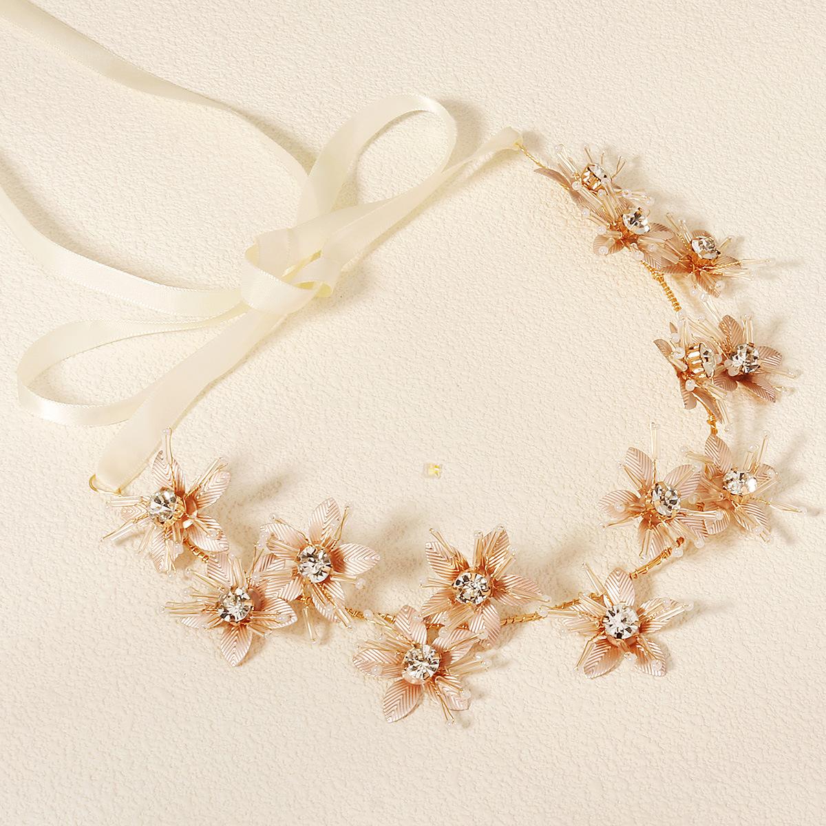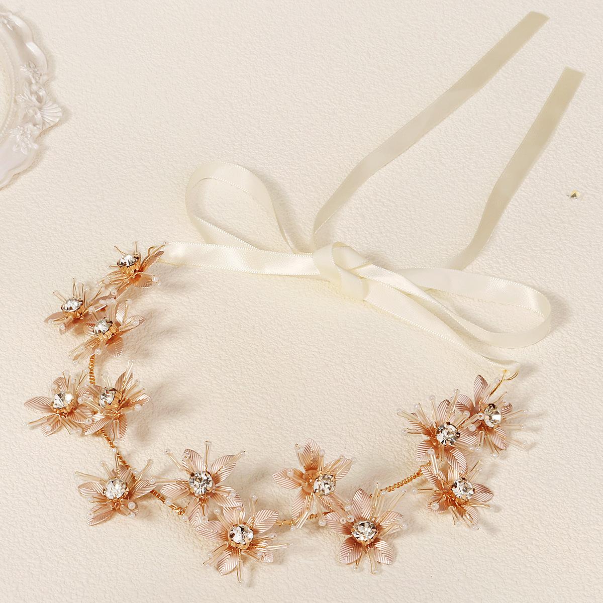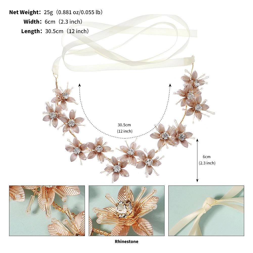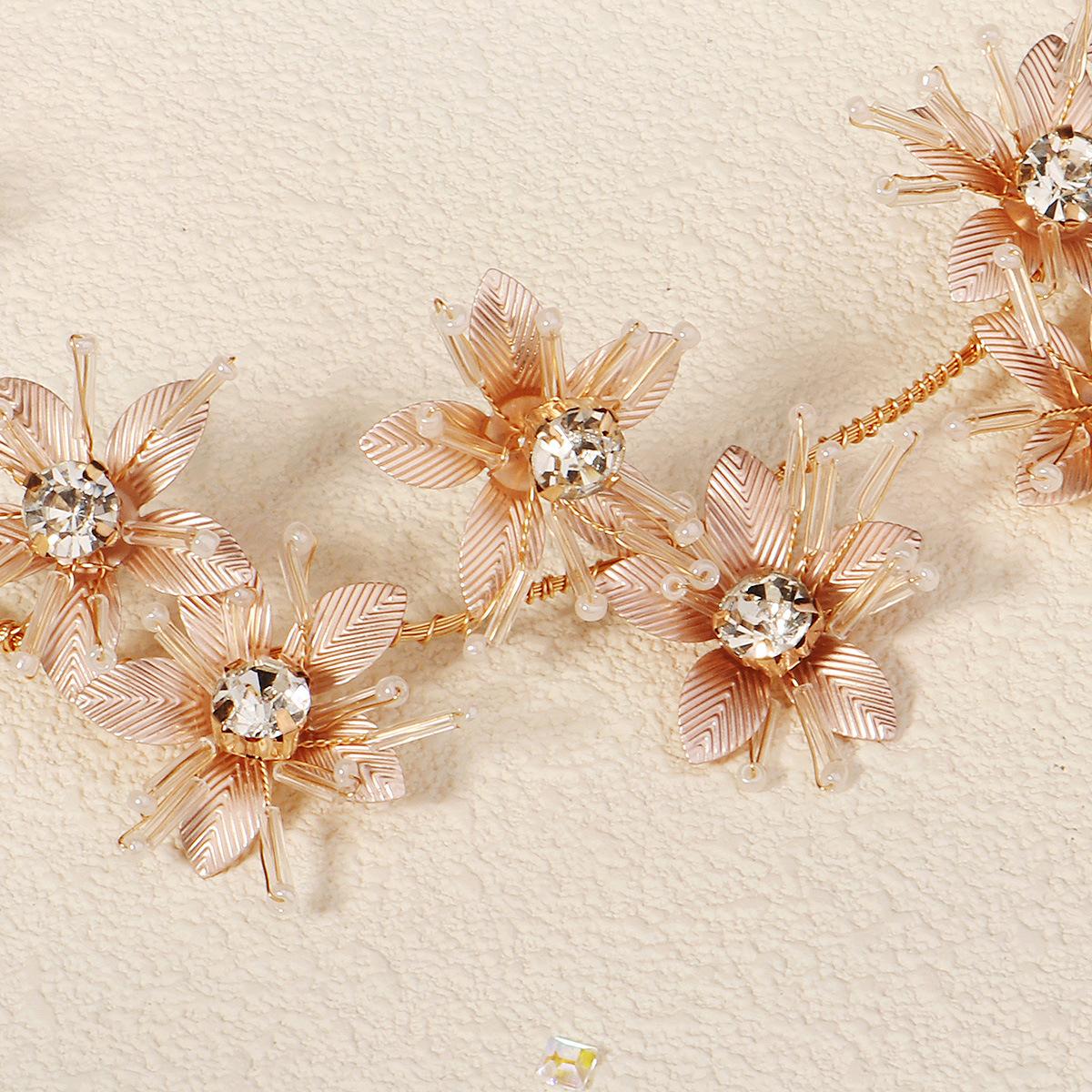Diadema nupcial hecha a mano transfronteriza, nueva, para vacaciones, con foto, tocado exótico, joyería tejida pesada, banda para el cabello con flores de metal.